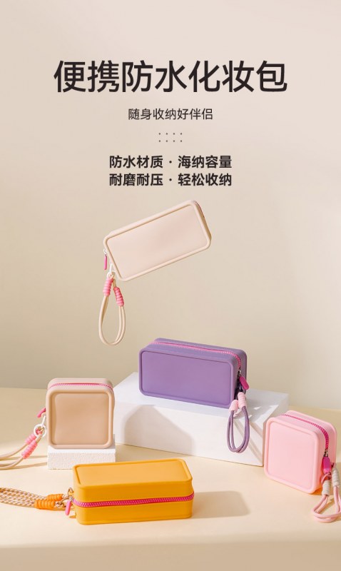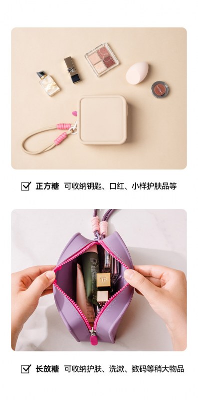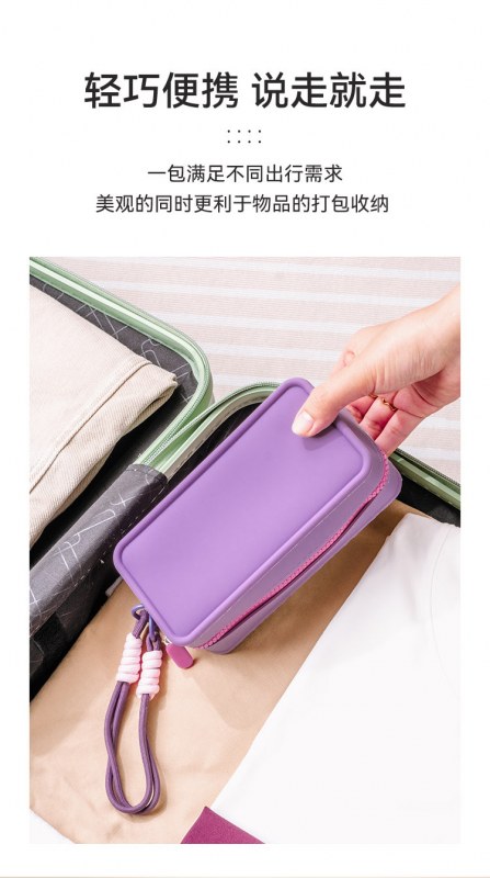 • 新しいドーパミン対照的な色のシリコーンポータブル化粧品バッグ女子学生ポータブル大容量携帯電話バッグ収納袋