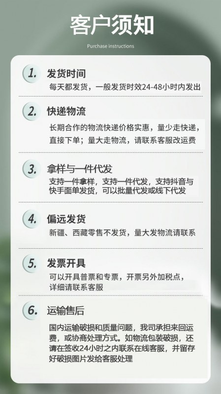 弊社が取り扱っている商品は、自社の海外工場から直送しています。ご入金が確認でき次第に商品を発送いたします。ご注文殺到時や、ご注文数量、種類が多い場合は、発送が遅れる可能性がございます、ご了承ください。ご注文商品の中に在庫がない商品につき、その商品のみキャンセルさせていただき、在庫のある商品のみをまとめて発送させていただきます。また、ご注文後の商品追加や、内容変更、同梱などはお受付しておりません。