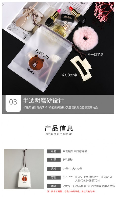 • クマのフェイスタオルバッグ包装袋巾着ポケットソフトタオル包装袋化粧品袋下着袋ストリングバッグ