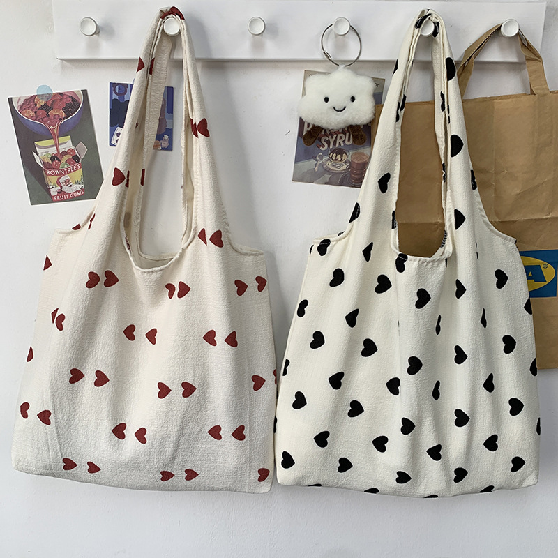 • ラブキャンバスショルダーベストバッグ大容量ハンドバッグ化粧品バッグ学生脇の下バッグ