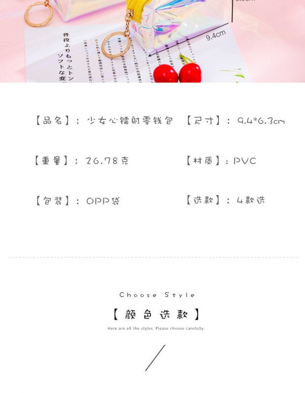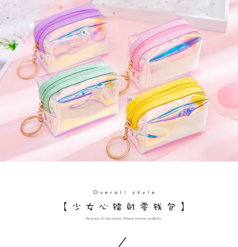 • 新しいインガーリーハート透明レーザー小銭入れ学生ミニコインキーホルダーバッグ