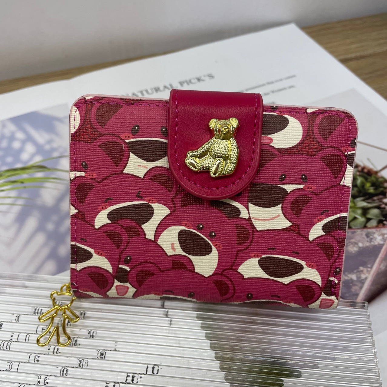 • 売れ筋のライトラグジュアリーローズレッドベアフレッシュでキュートなウォレットカードホルダーがひとつに