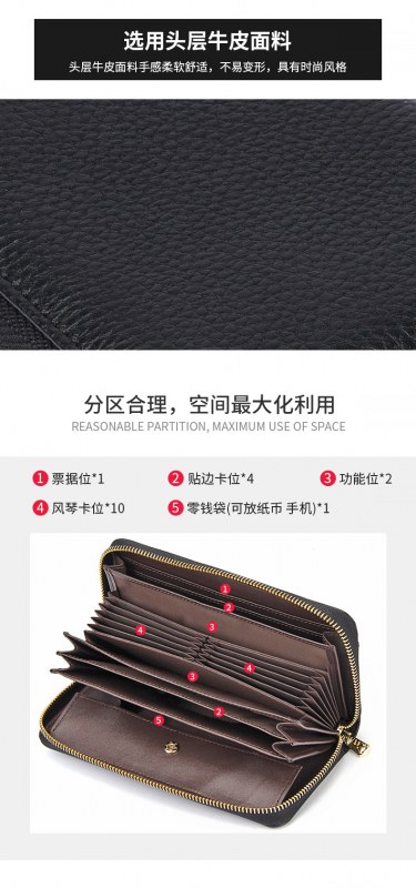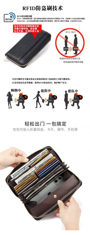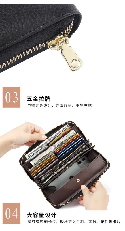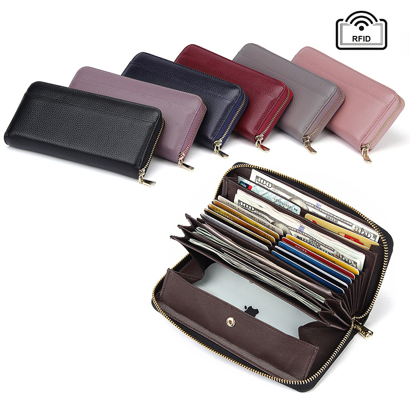 • 女性用RFID盗難防止ブラシ長財布、高級、大容量、マルチカードスロット、本革クラッチバッグ、多機能クラッチバッグ