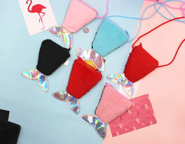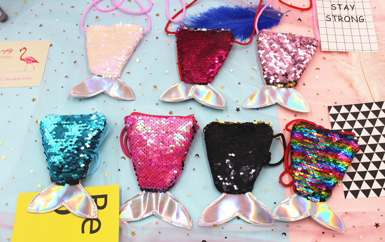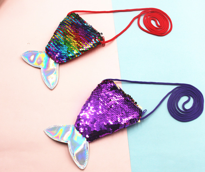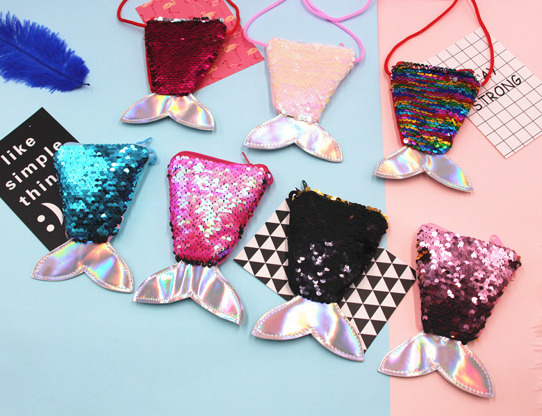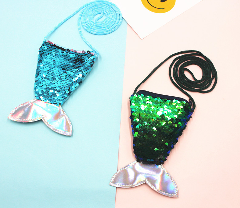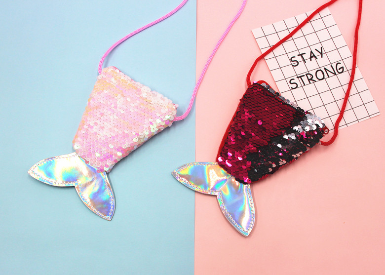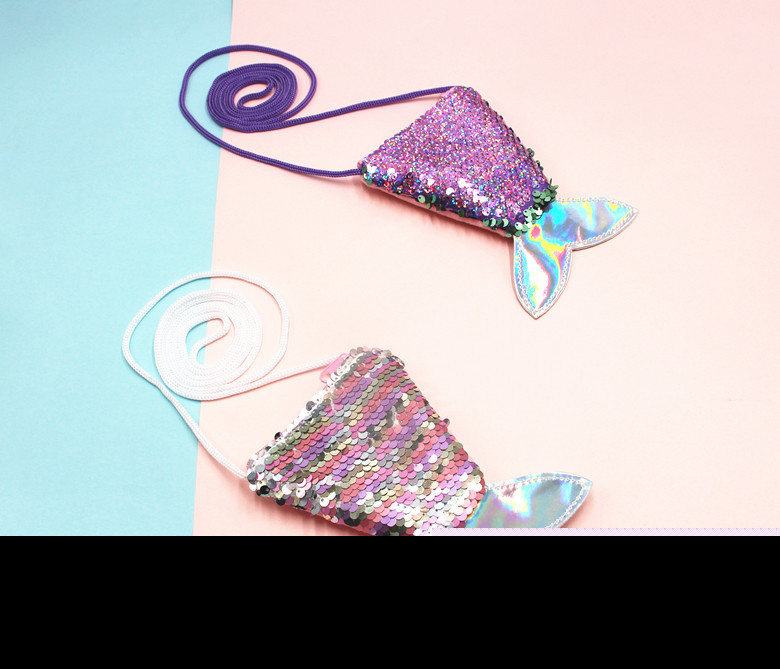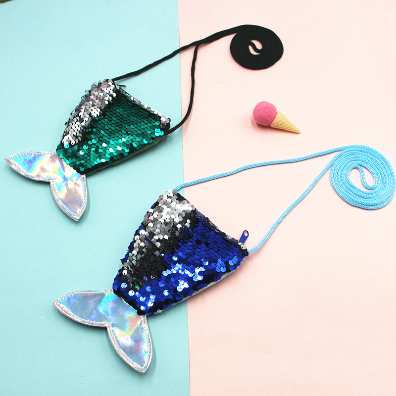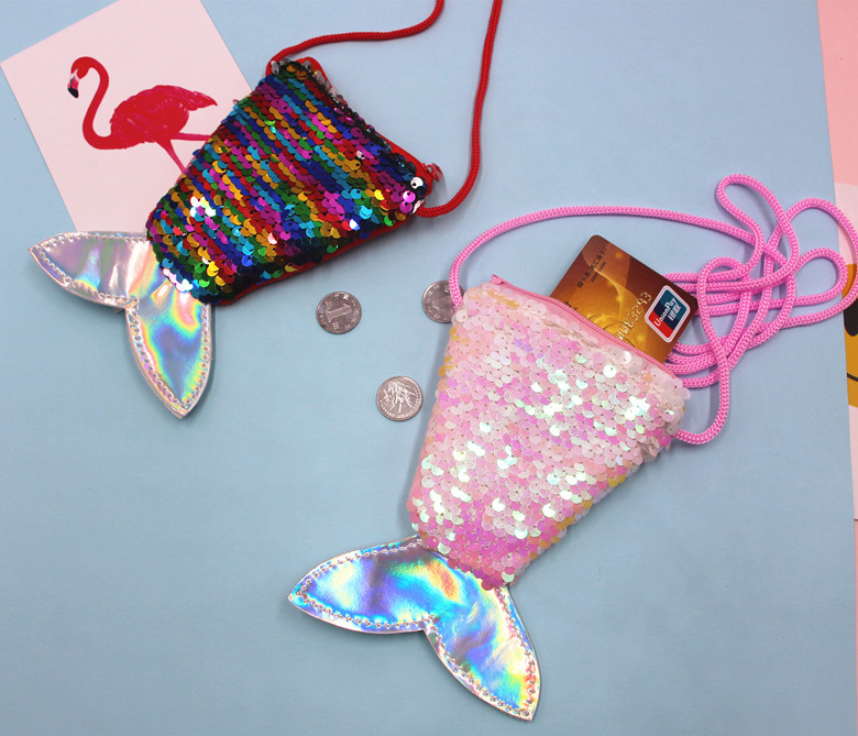 • マーメイドスパンコール小銭入れストラップコインバッグ小さな財布子供用クロスボディバッグフィッシュテール2色スパンコール