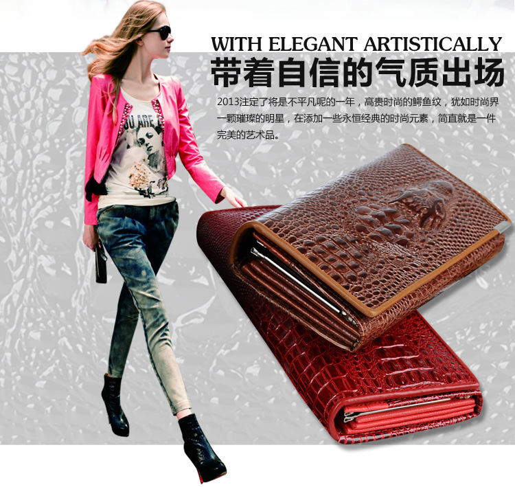 • クロコダイル柄 財布 レディース財布 ロングファスナー柄 本革 ウォレットバッグ 大容量 クラッチバッグ