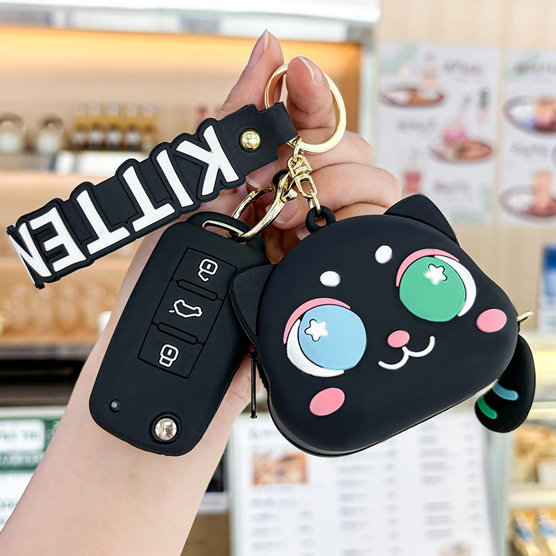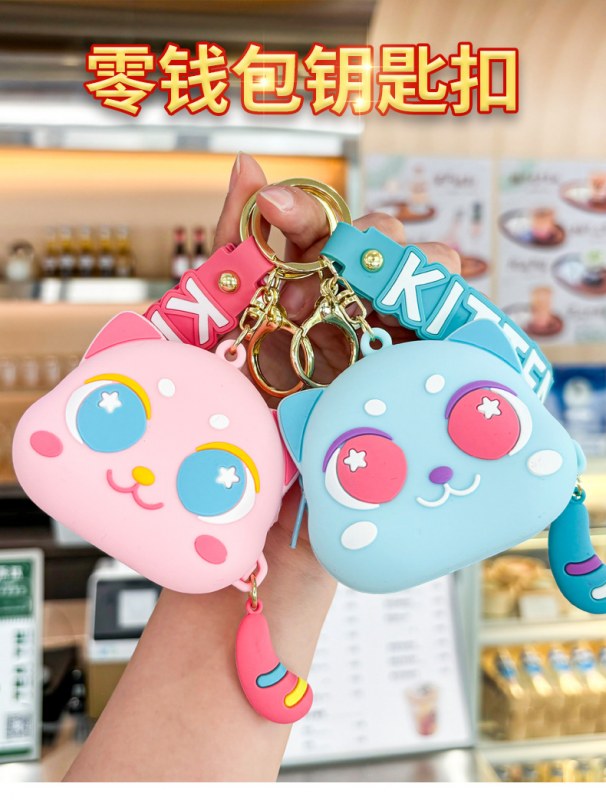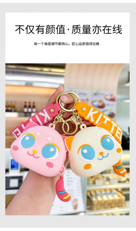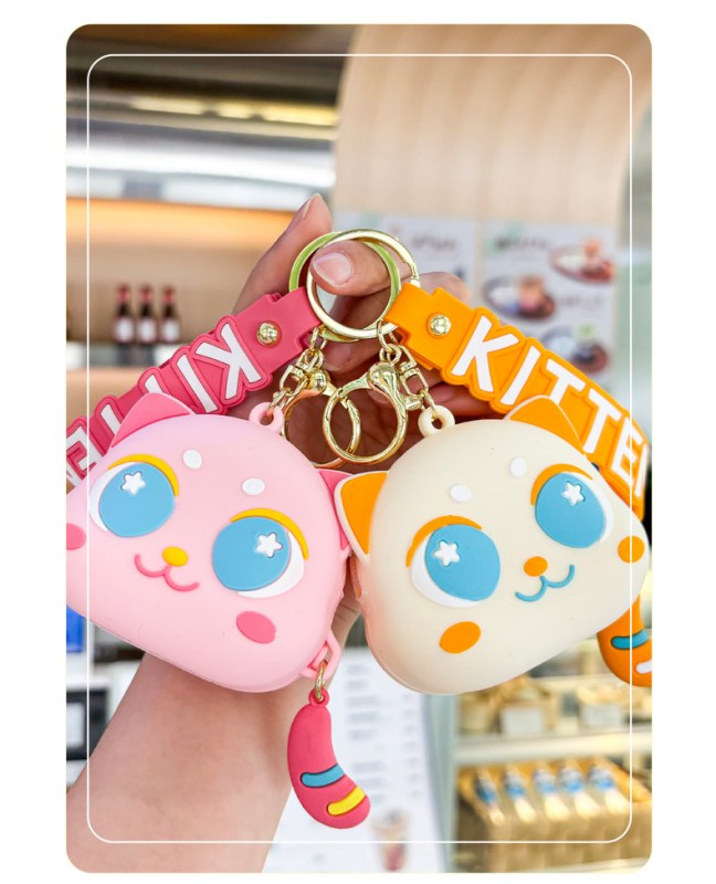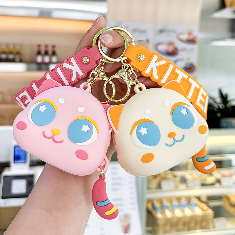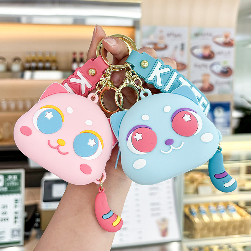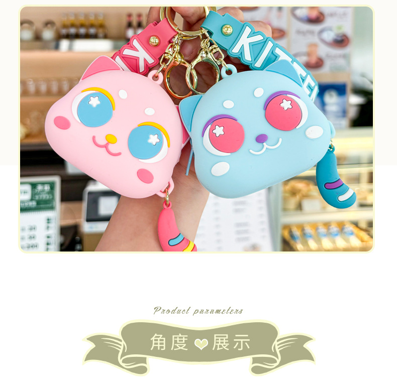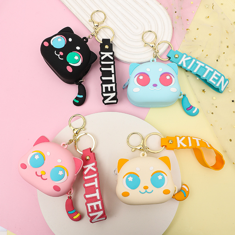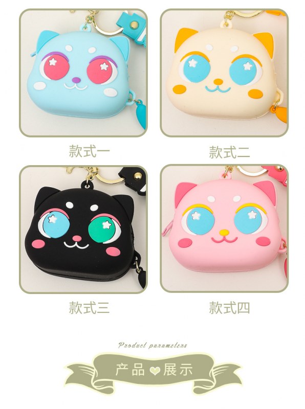 • 漫画猫シリコンミニ小銭入れキュートで絶妙なキーホルダーペンダントカップルスタイルヘッドフォンバッグペンダント
