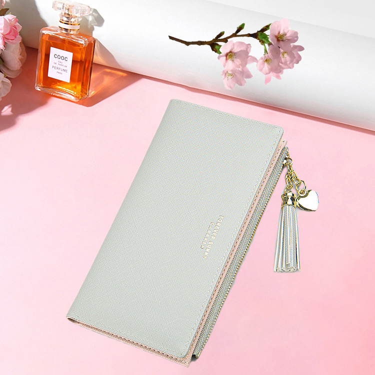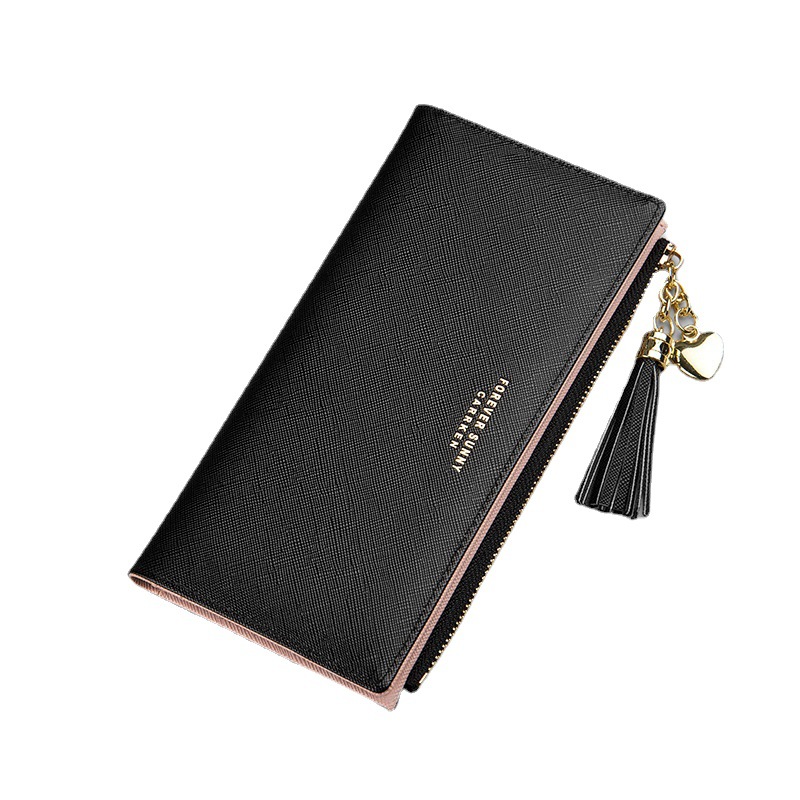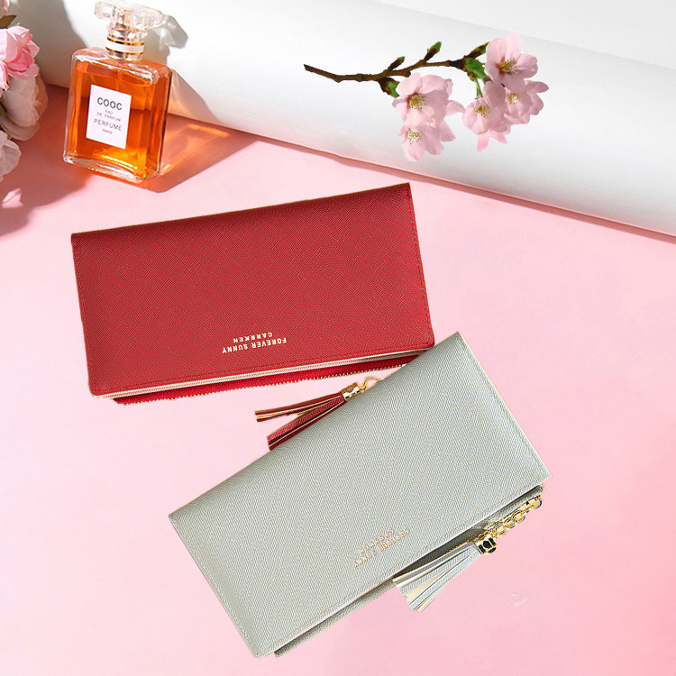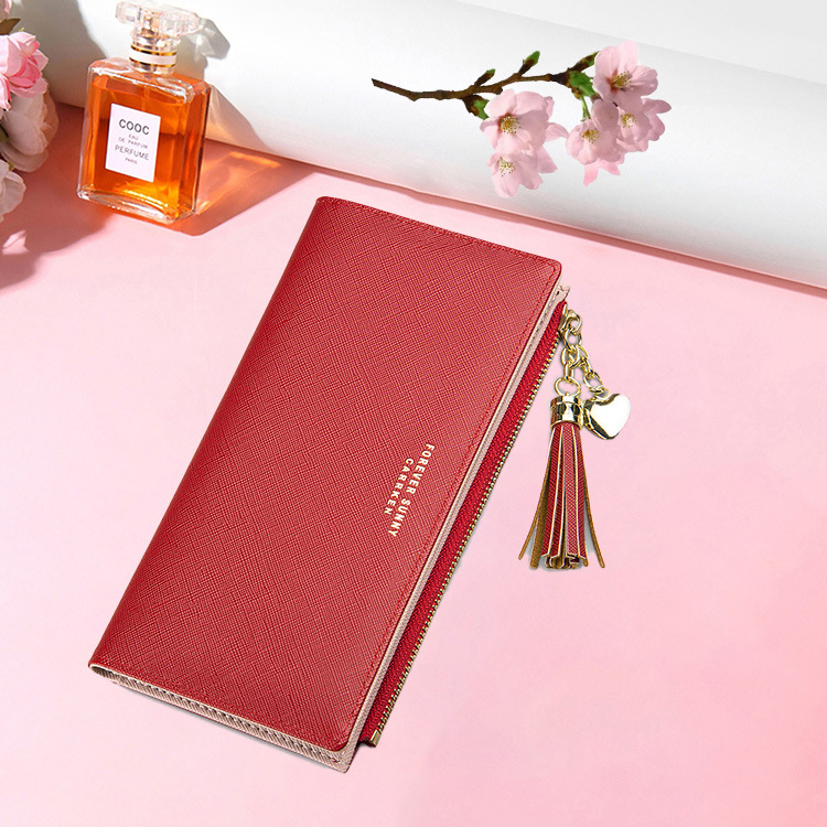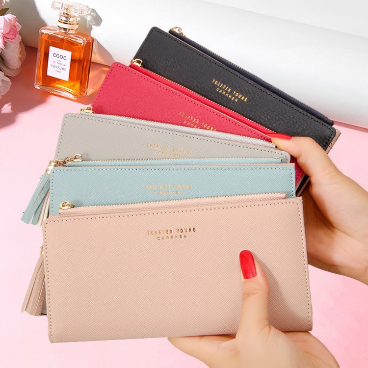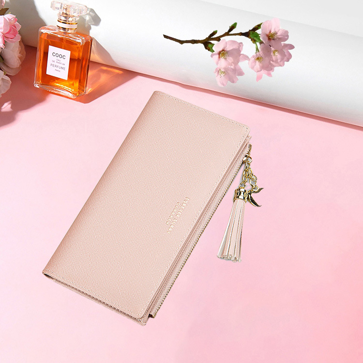 • CarrKen 長財布 レディース タッセル クロス柄 マルチスロット カード入れ ファスナー小銭入れ