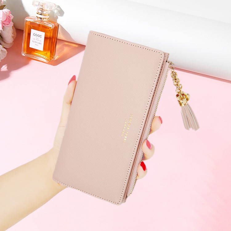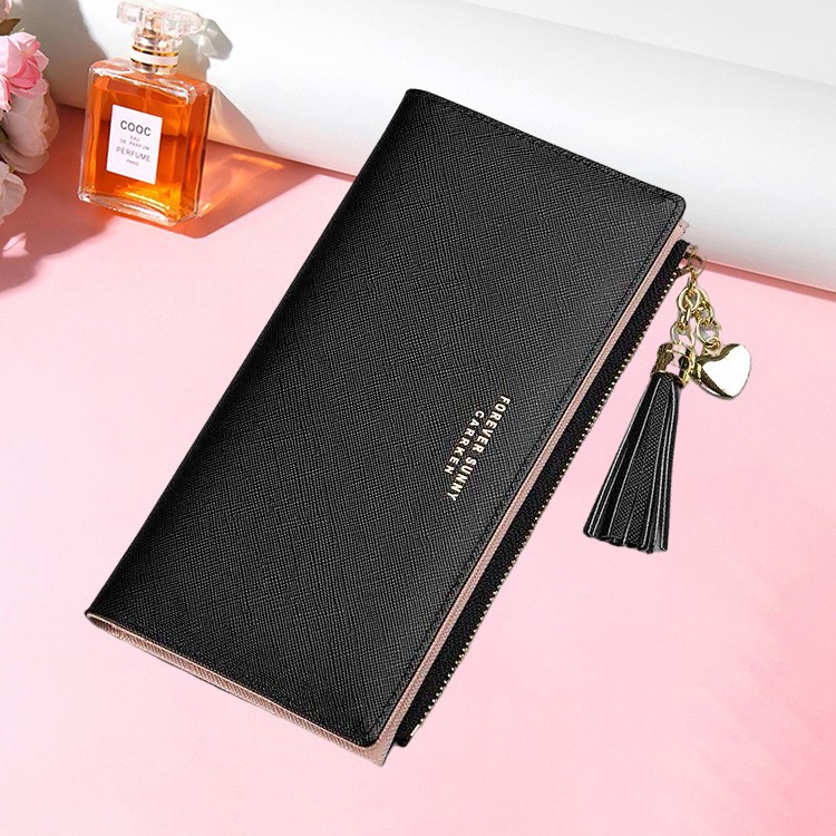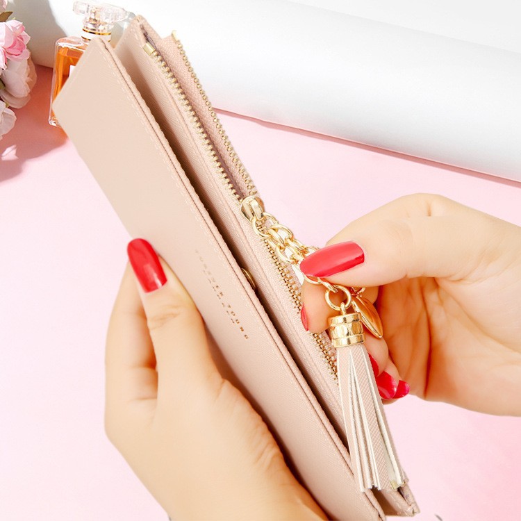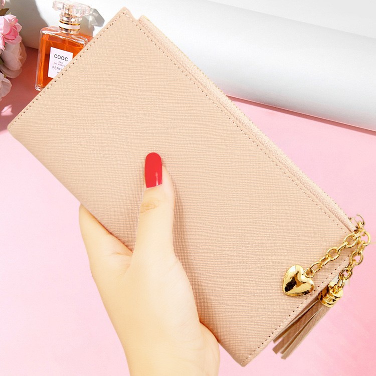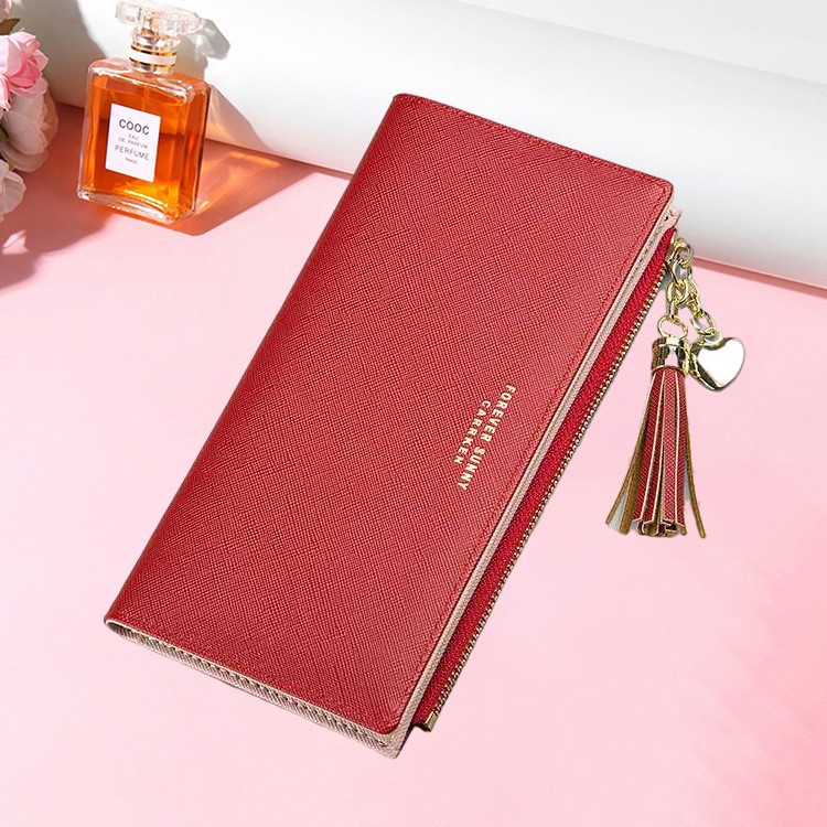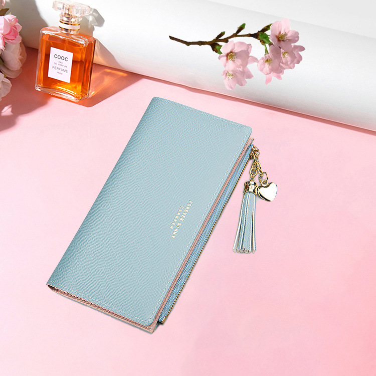 • CarrKen 長財布 レディース タッセル クロス柄 マルチスロット カード入れ ファスナー小銭入れ