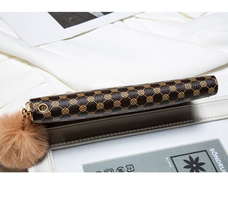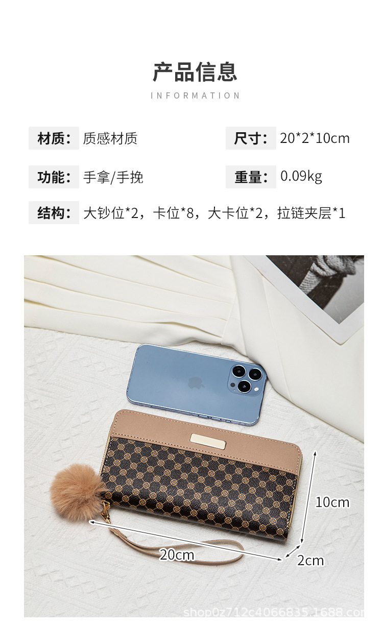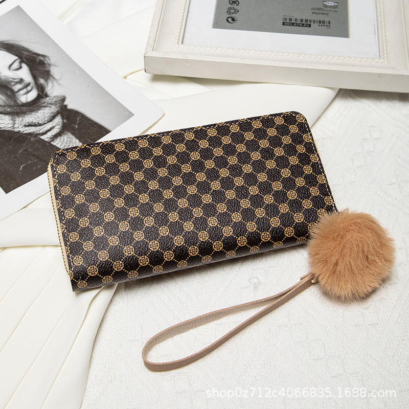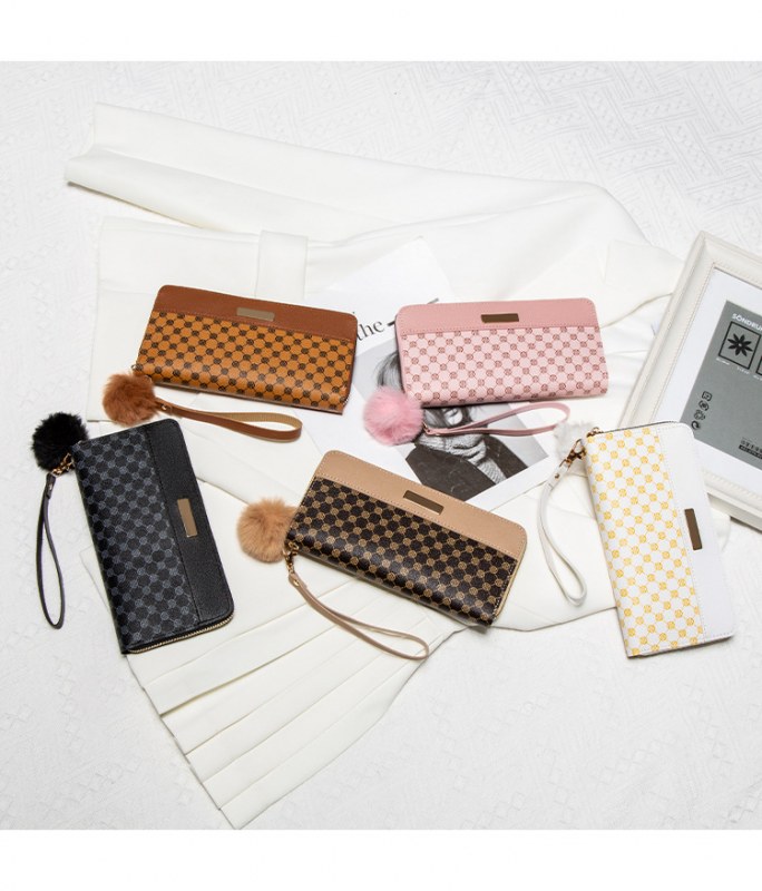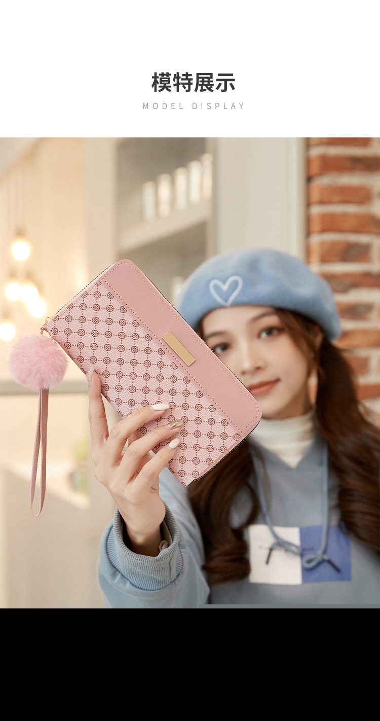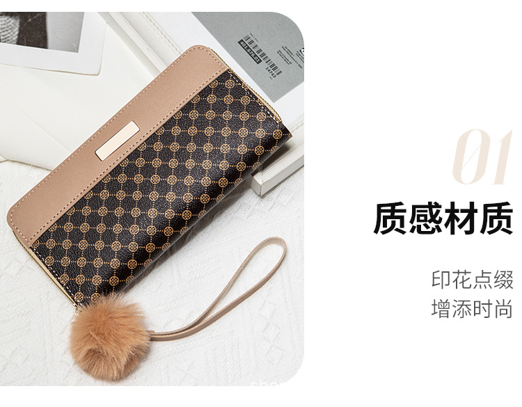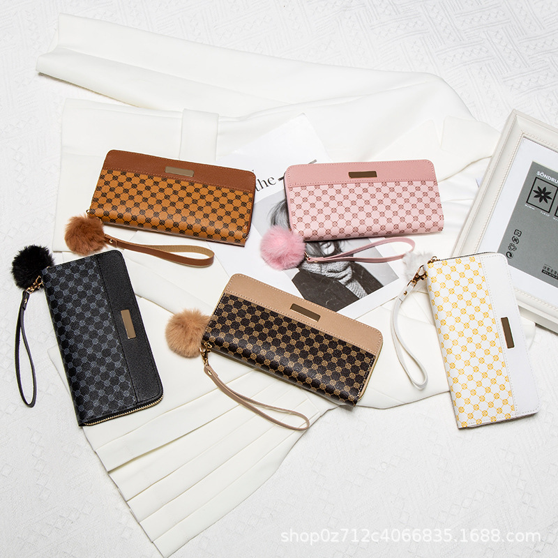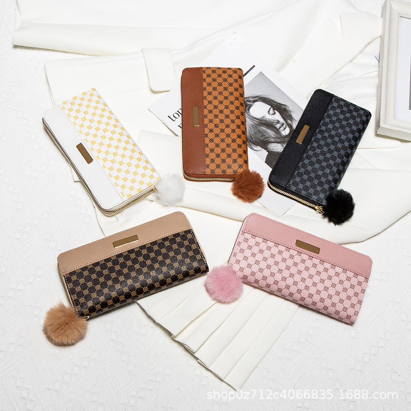 • レディース ロング ダブルレイヤー カラーブロック ウォレット、新しいパーソナライズされたポンポン マルチカード スロット クラッチ