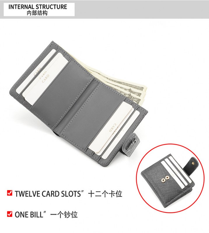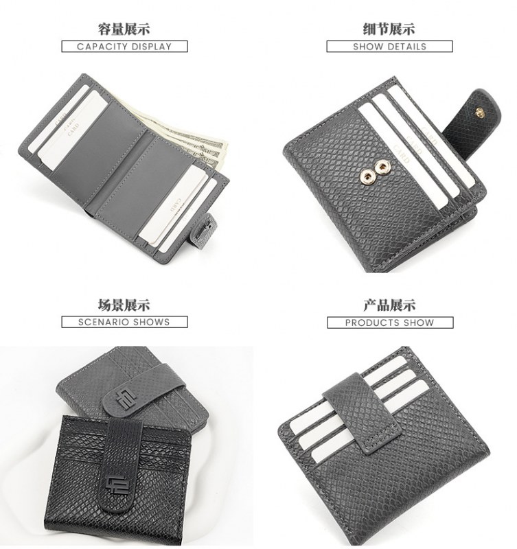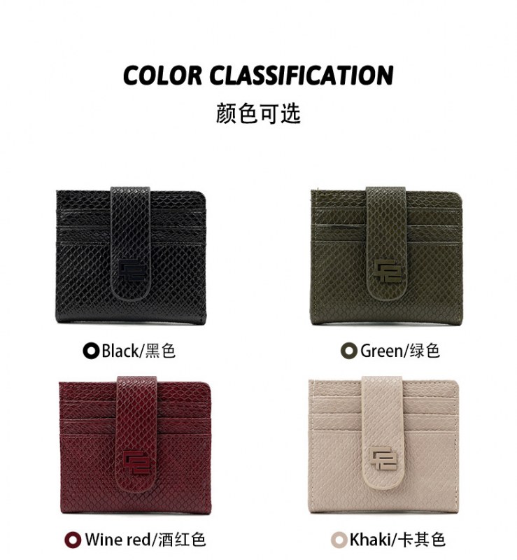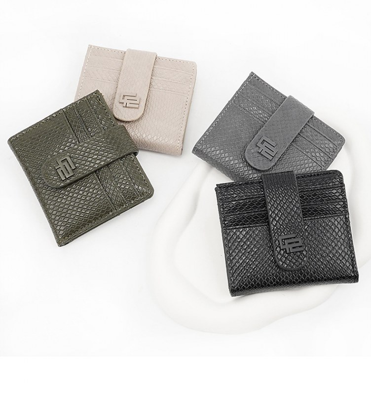 • おしゃれな女性用刺繍糸財布、マルチカードスロット二つ折り小銭入れ、ミニバックルPU蛇革柄ショートウォレット