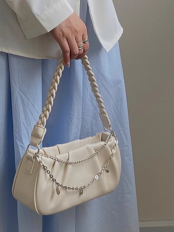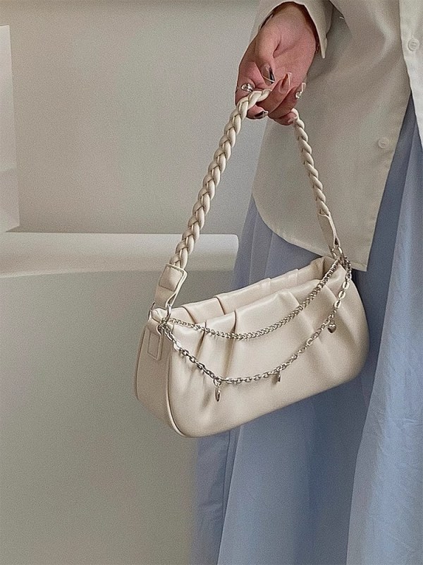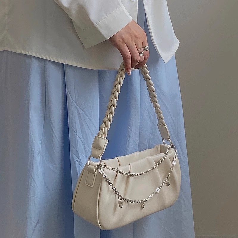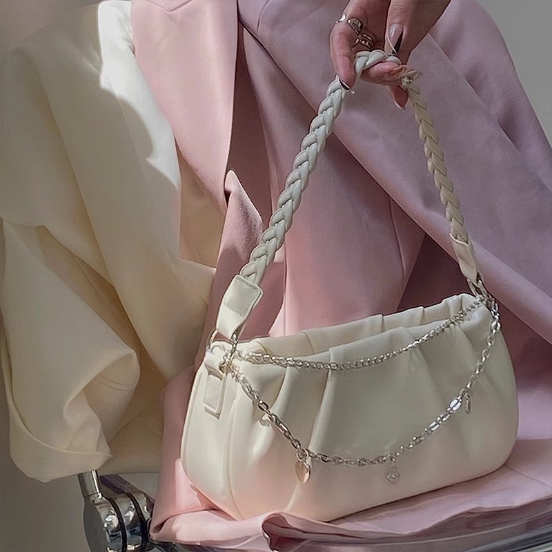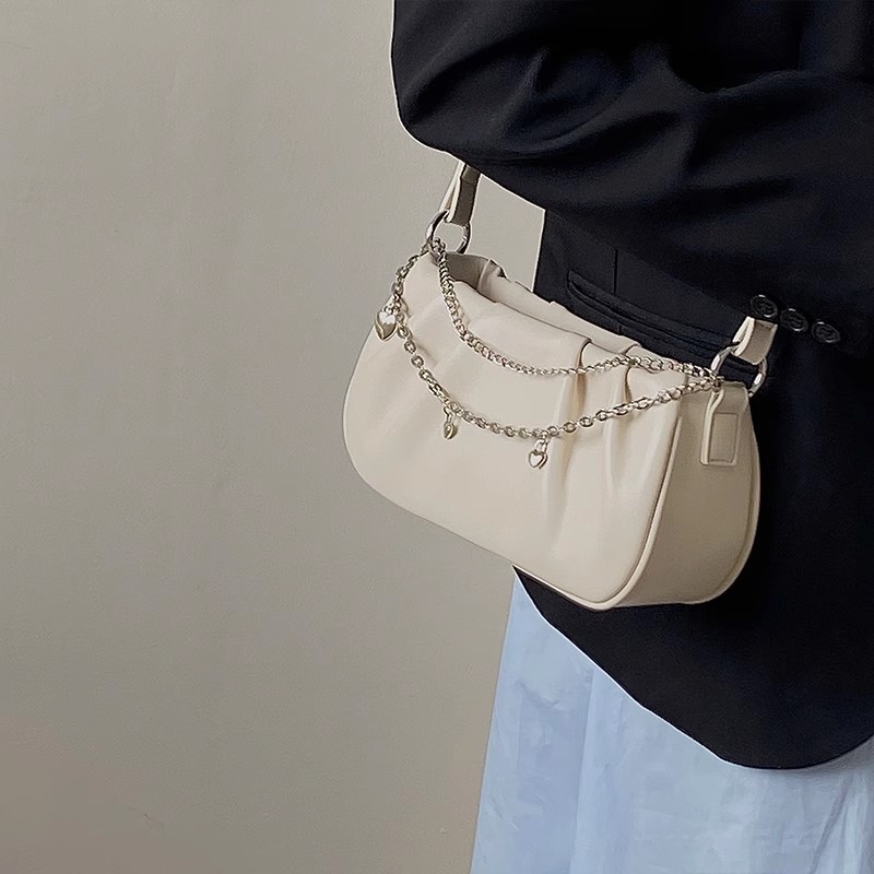 • 女性用ニッチデザインバッグ、プリーツ入りのパーソナライズされたクラウドバッグ、ハンドバッグ、シンプルで多用途、ファッショナブルなジッパーチェーン脇の下バッグ