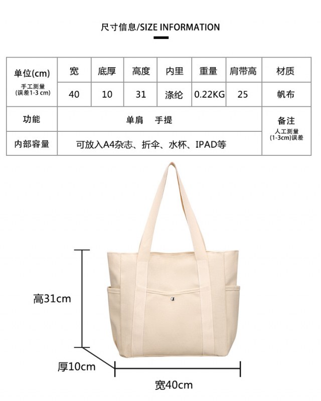 • 仕事や外出用の大容量トートキャンバスバッグ、見栄えの良い通勤、多用途の文学芸術学生バッグ、シングルショルダーバッグバッグ