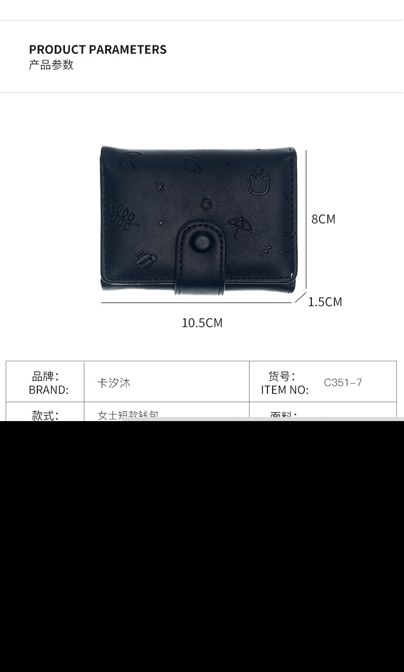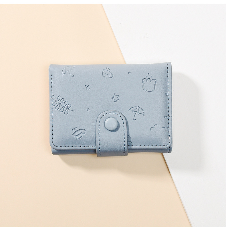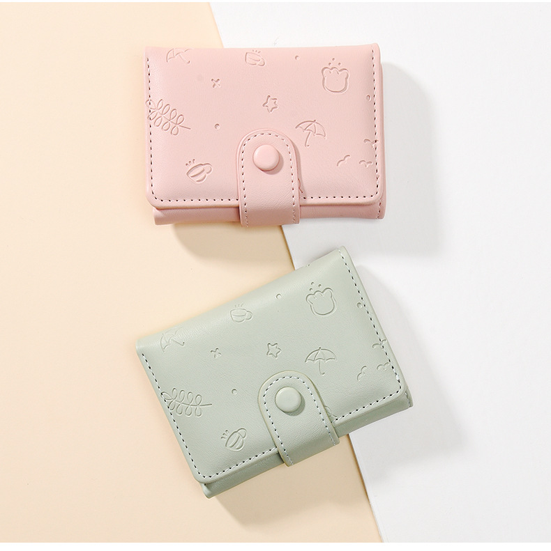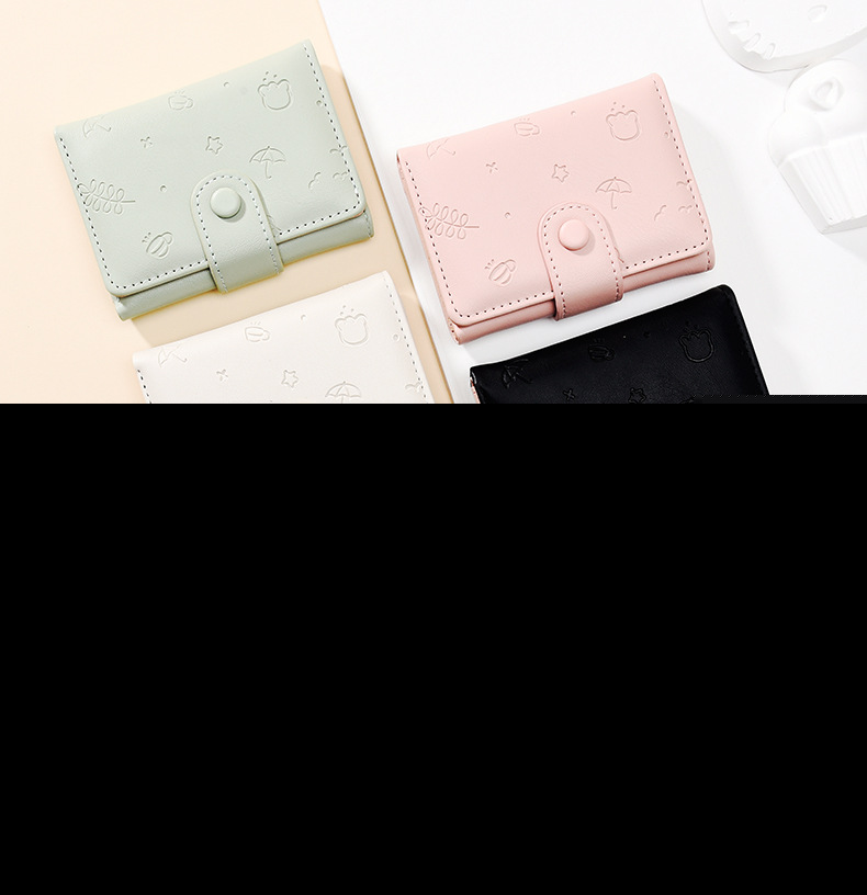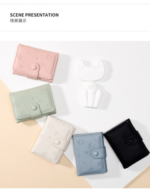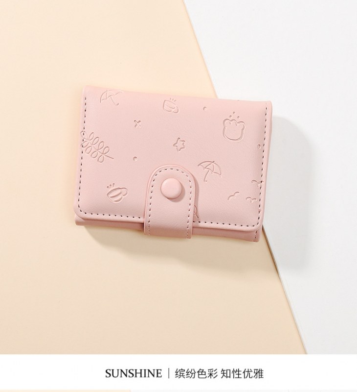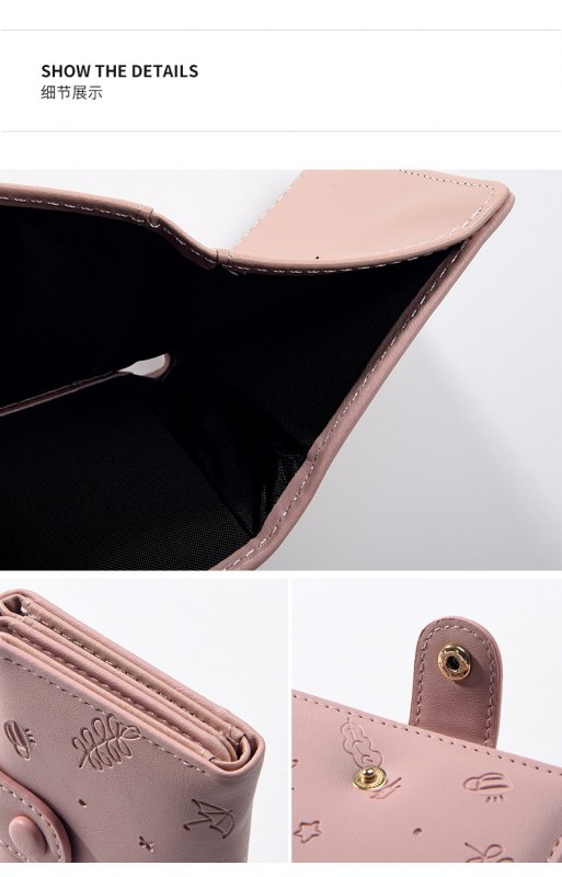 • 新しいかわいい PU 財布女性のためのインショート漫画プリント無地小さな新鮮なカードホルダー多機能三つ折り財布