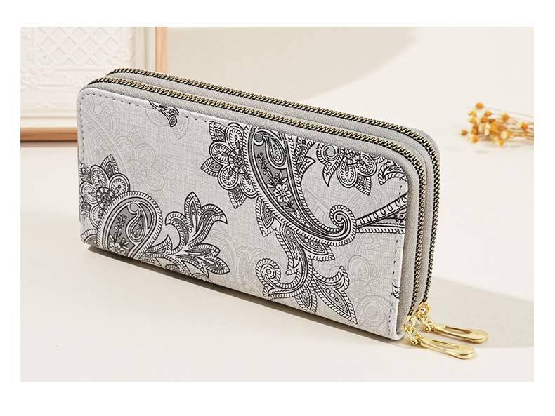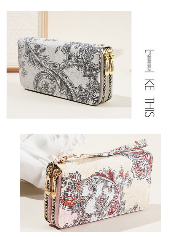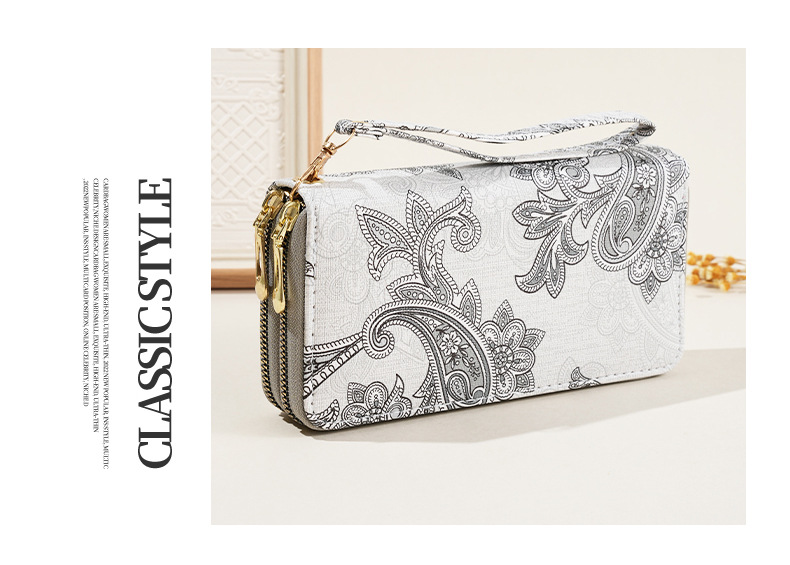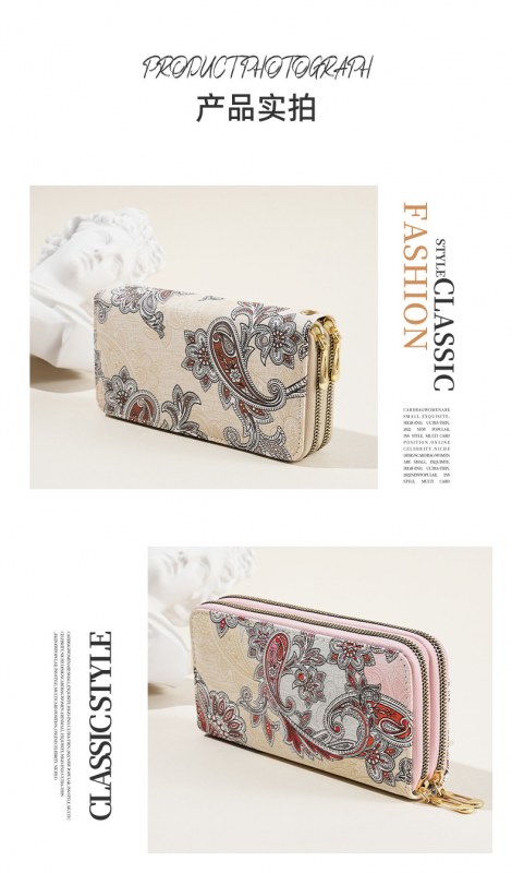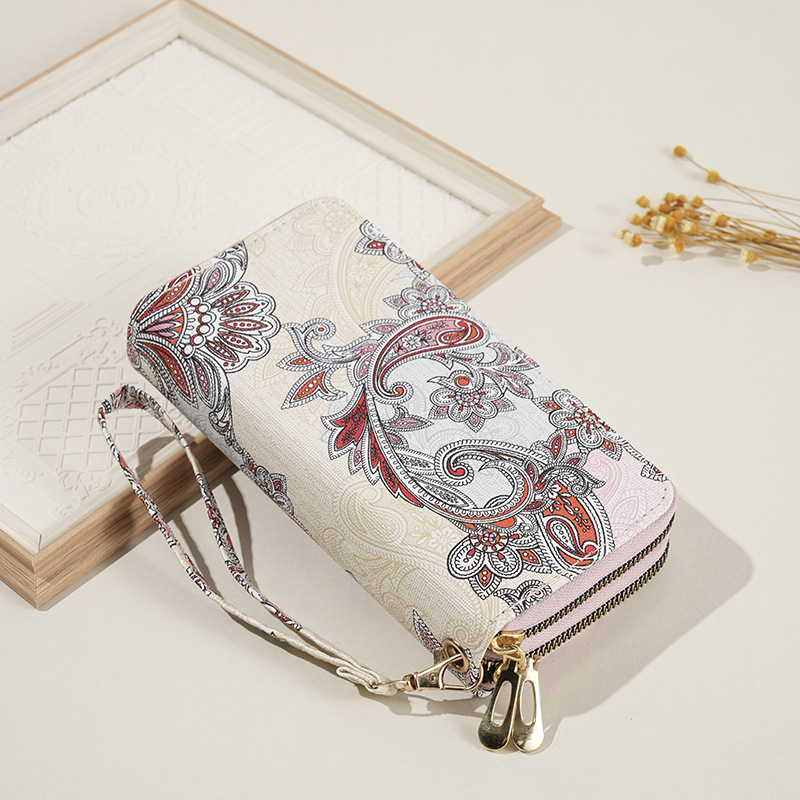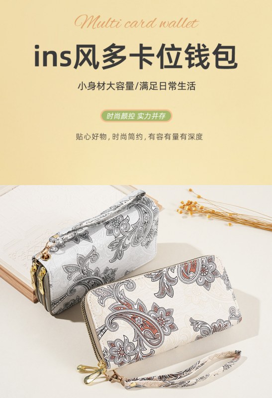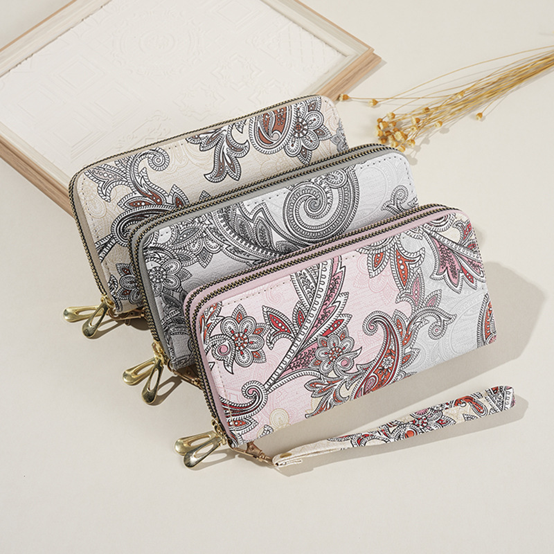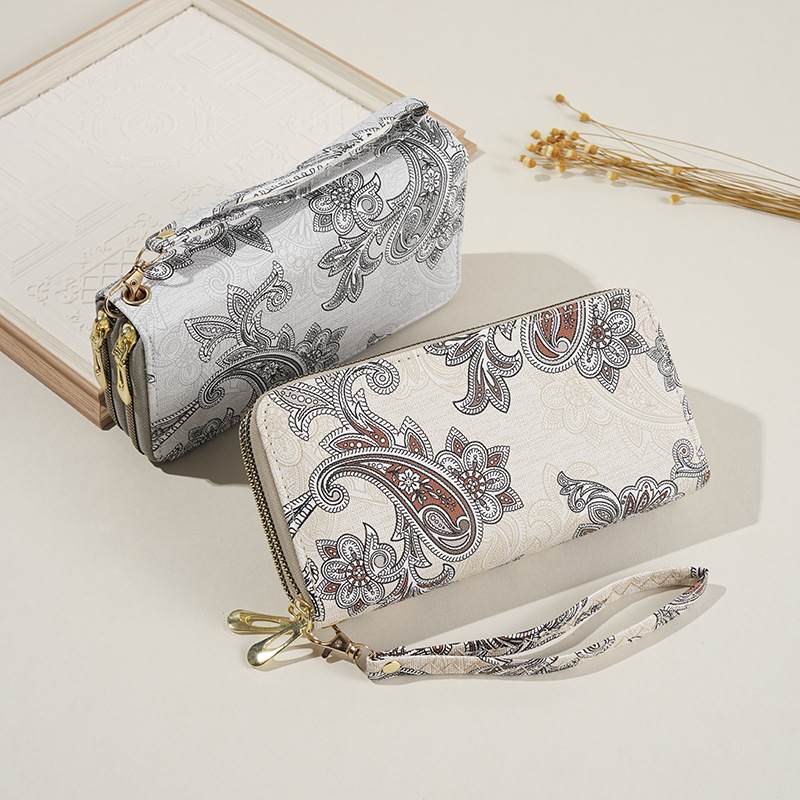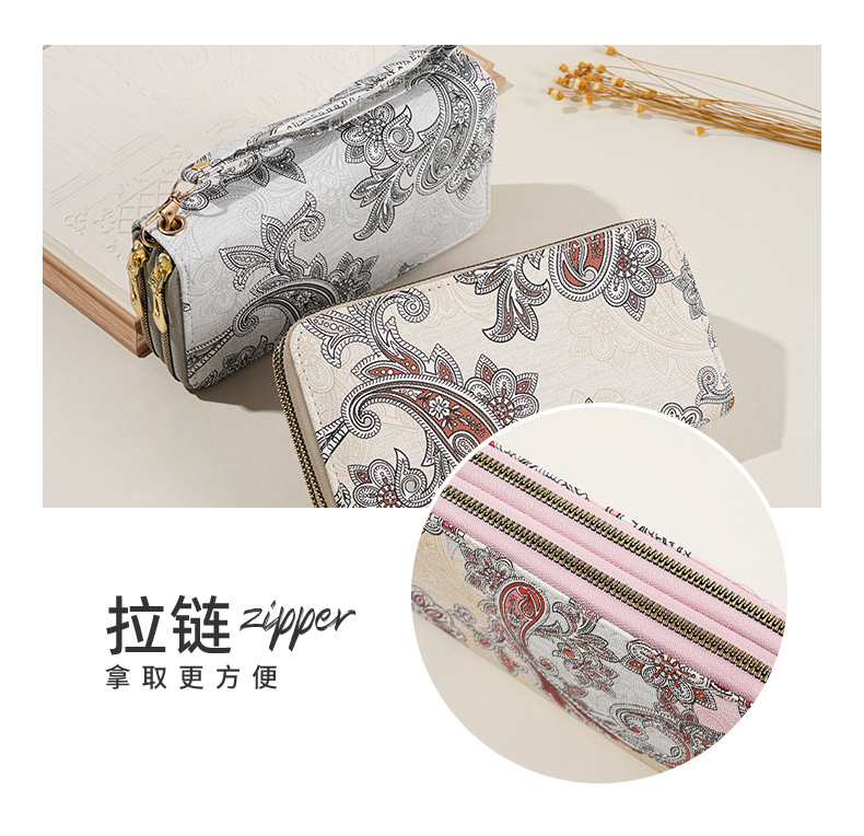 • 2024 財布女性の新しいレトロプリントレースファッション国民風の雰囲気ダブルジッパー大容量携帯電話バッグ財布