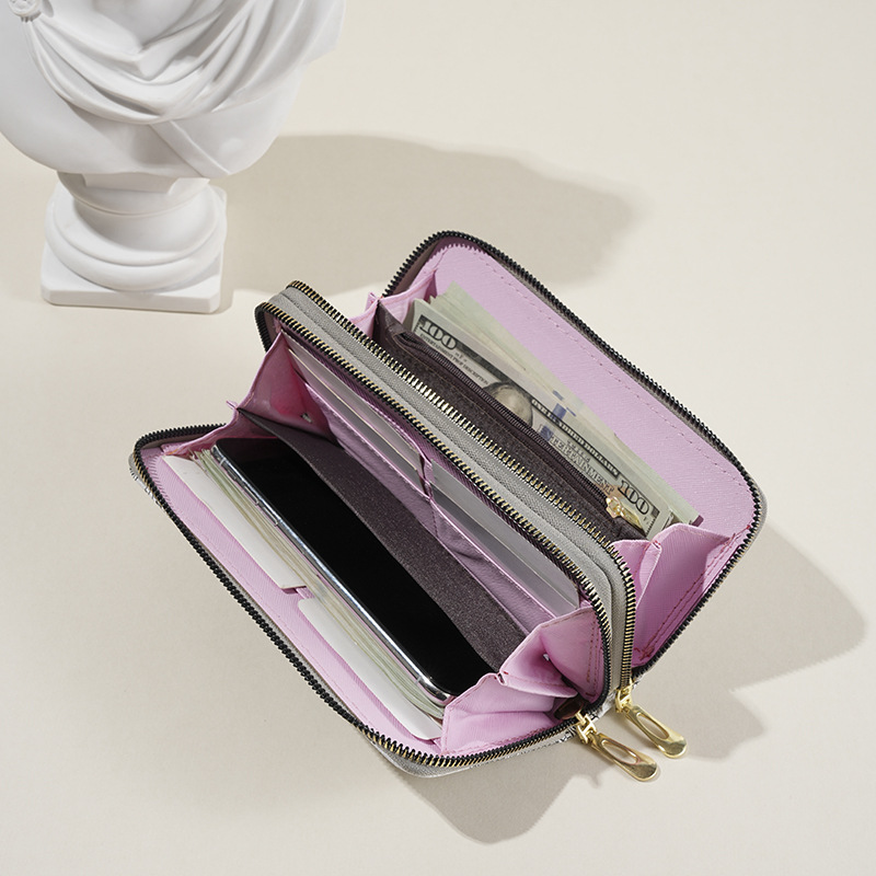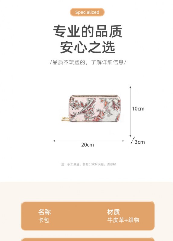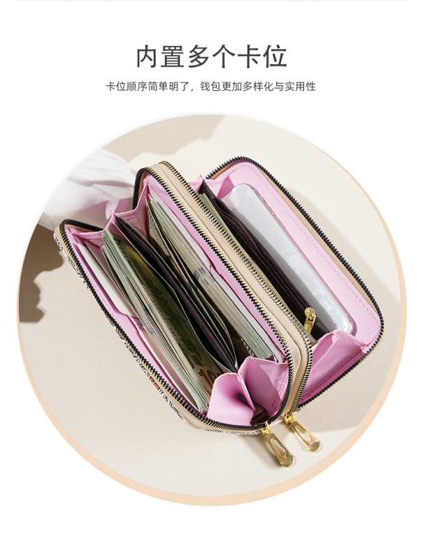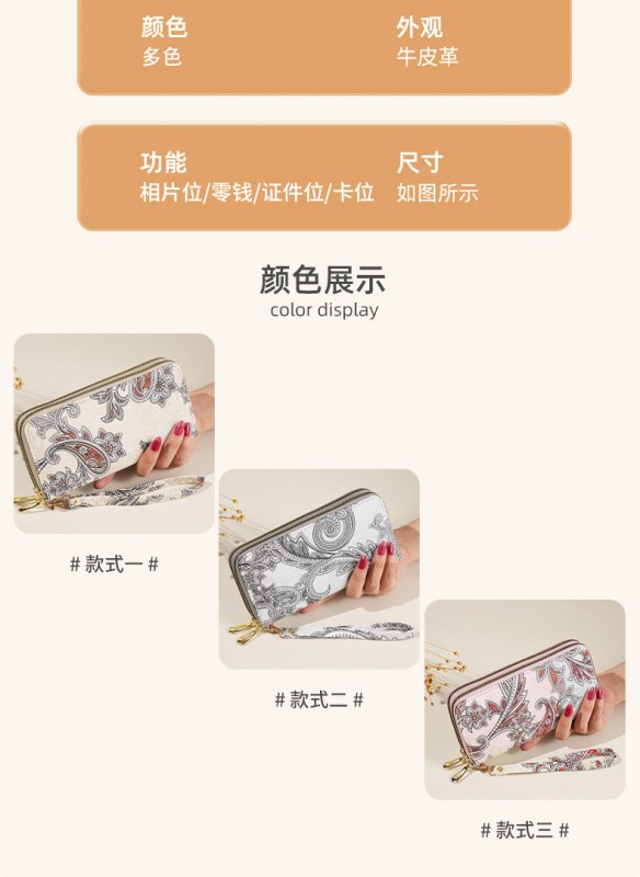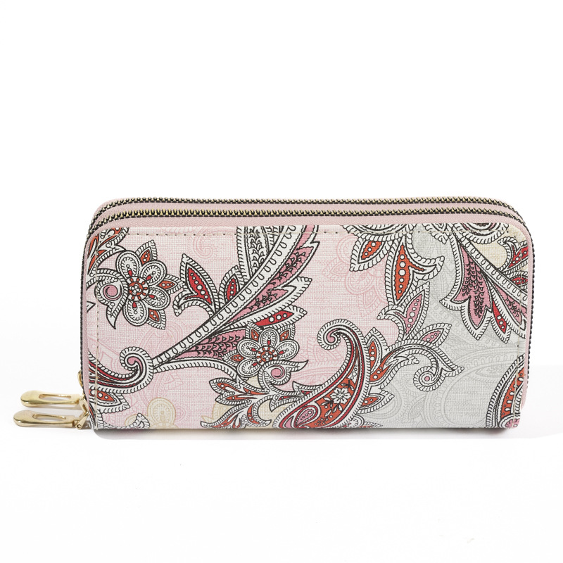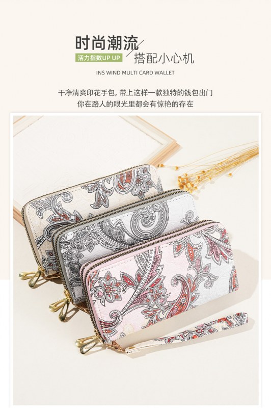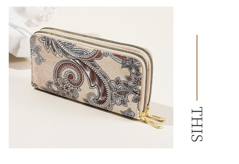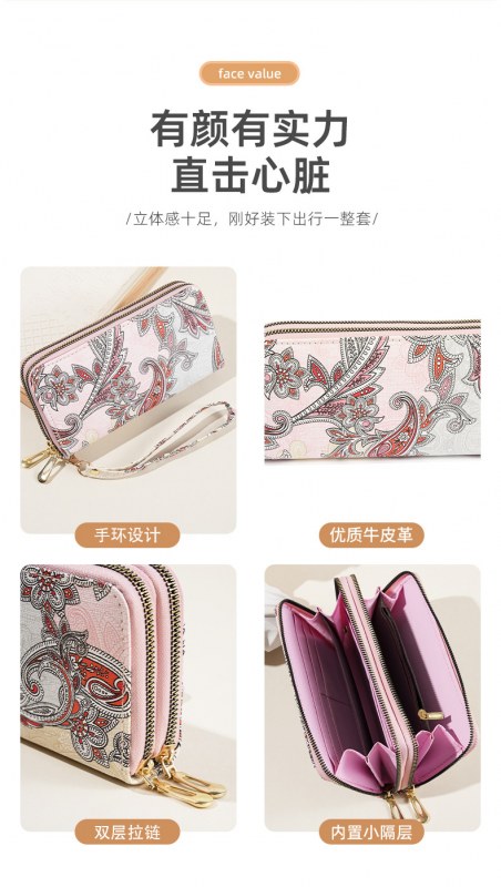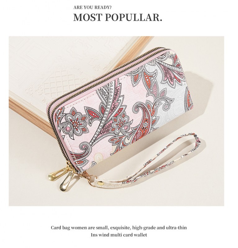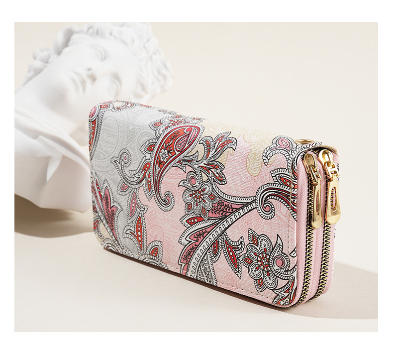 • 2024 財布女性の新しいレトロプリントレースファッション国民風の雰囲気ダブルジッパー大容量携帯電話バッグ財布