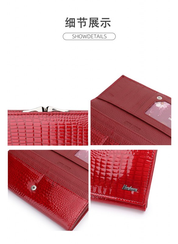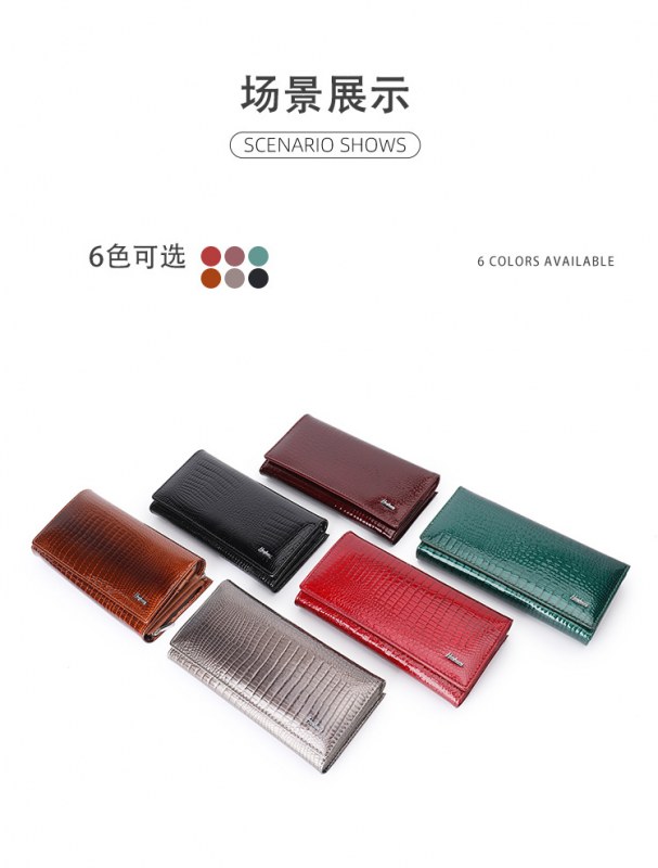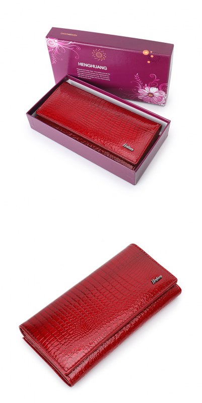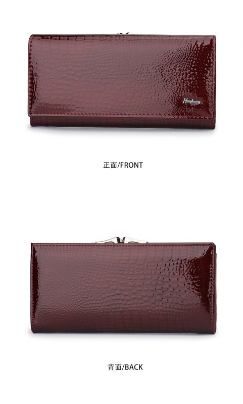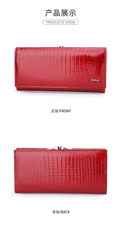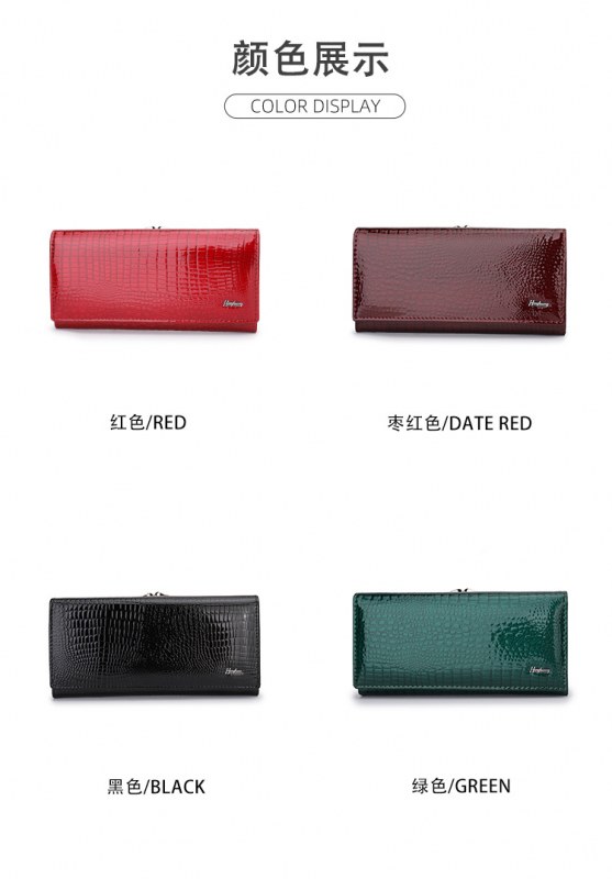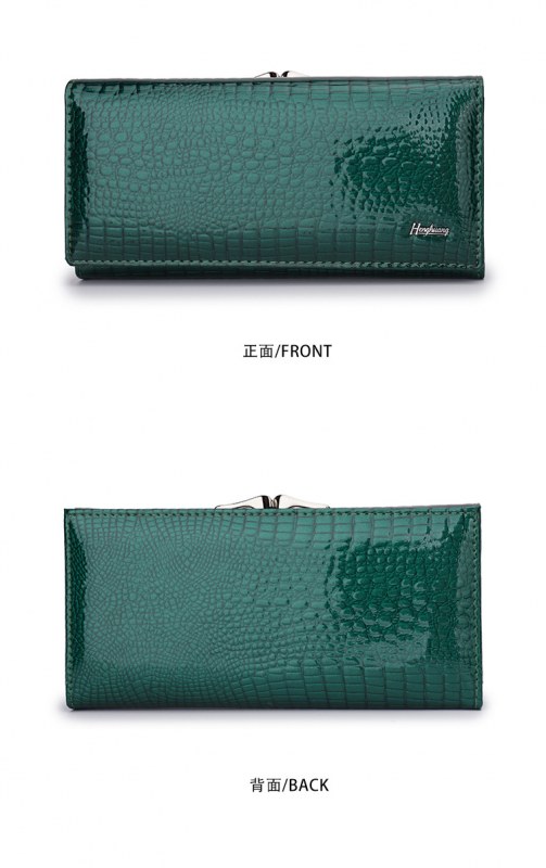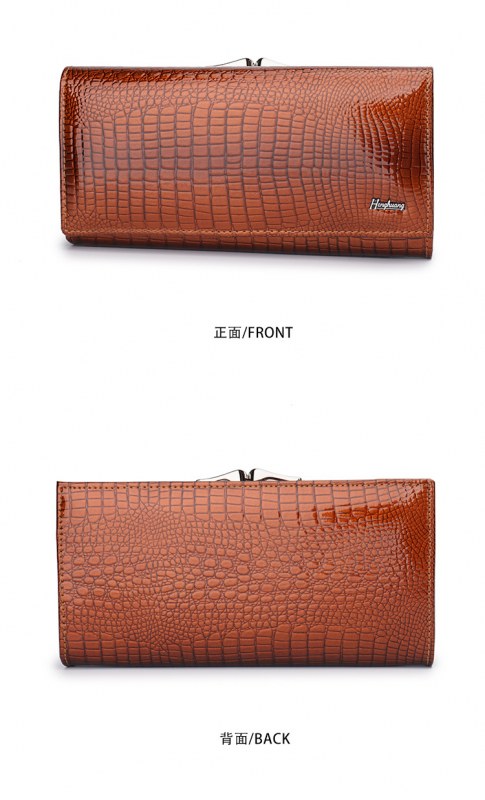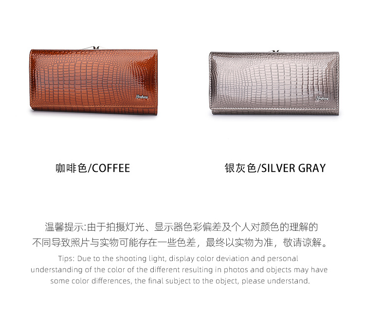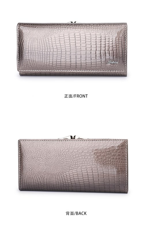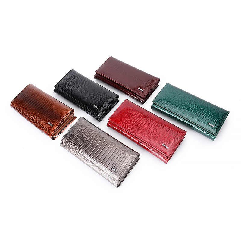• ヨーロッパとアメリカの女性の本革財布、パテントレザークロコダイルパターン、高級クラッチバッグ、大容量と多機能