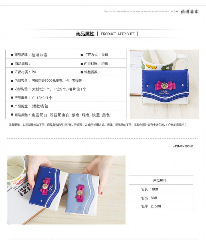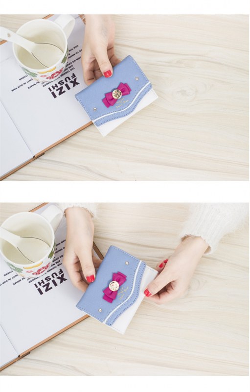 • ショート レディース ウォレット コントラストカラー リボン キュート ガール ウォレット ウォレット ヨーロッパとアメリカの多用途レディースバッグ