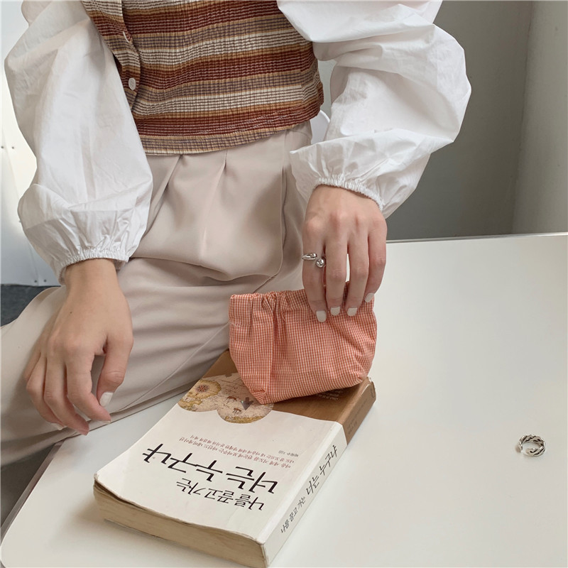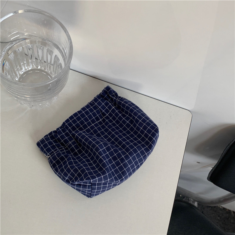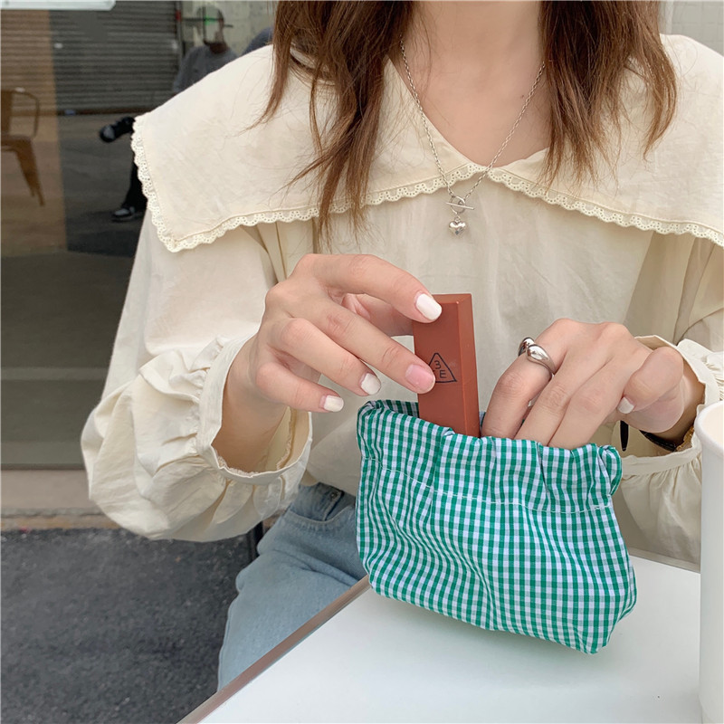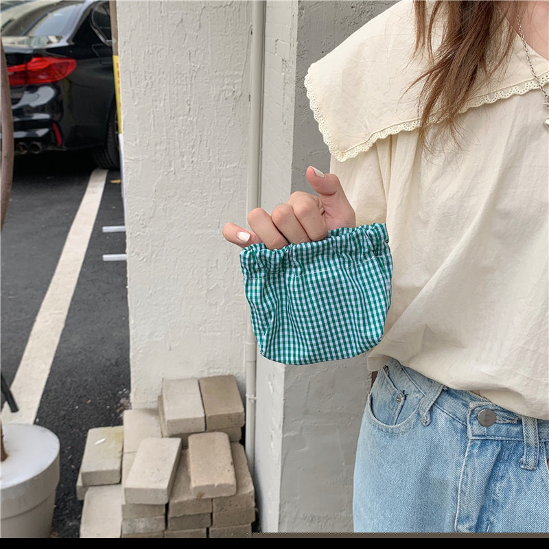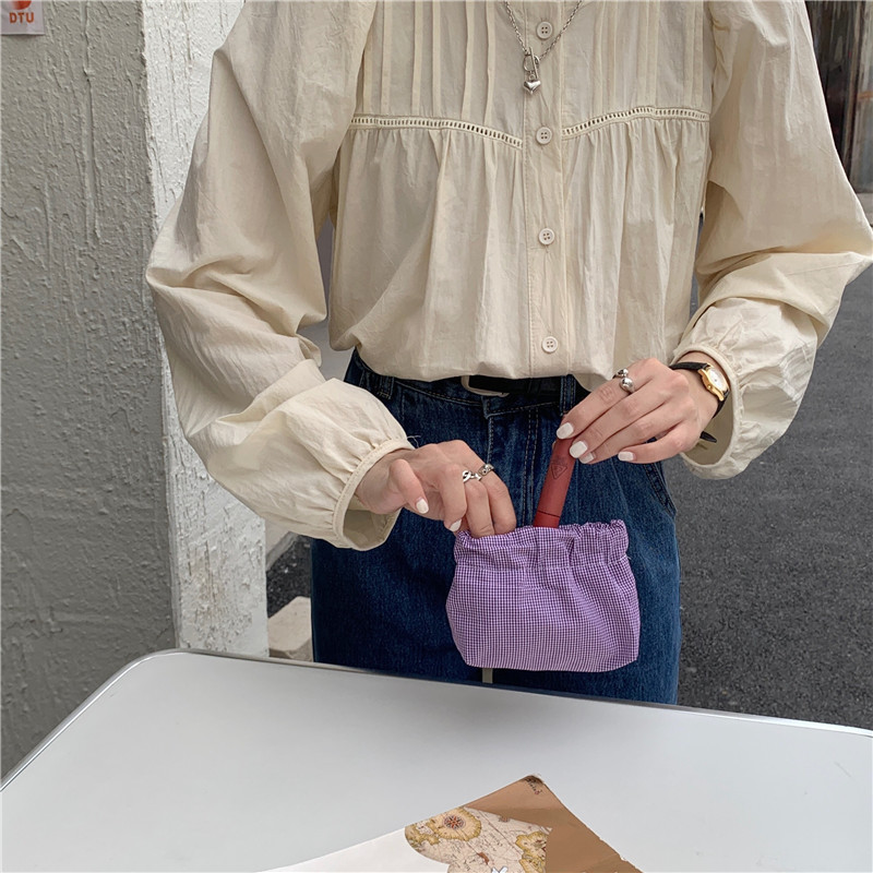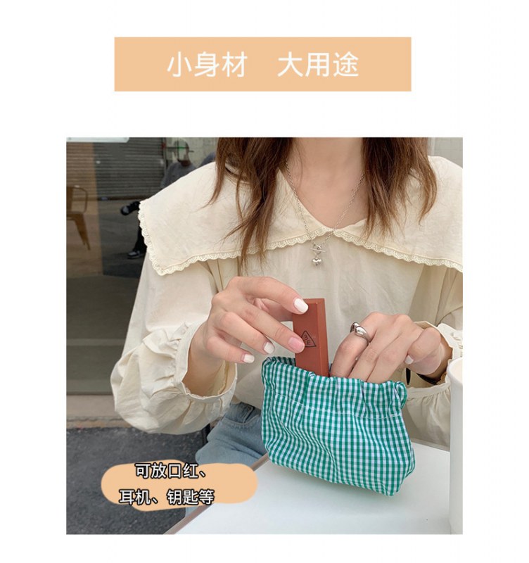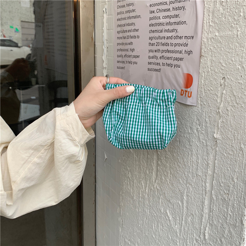 • インインターネット有名人対照的な格子縞のゴールドバッグ小さな新鮮な小銭入れミニ化粧品バッグキー収納袋