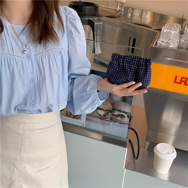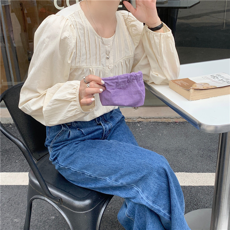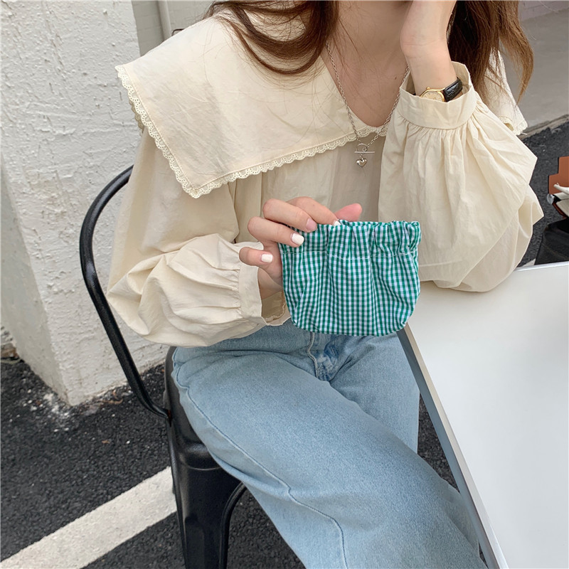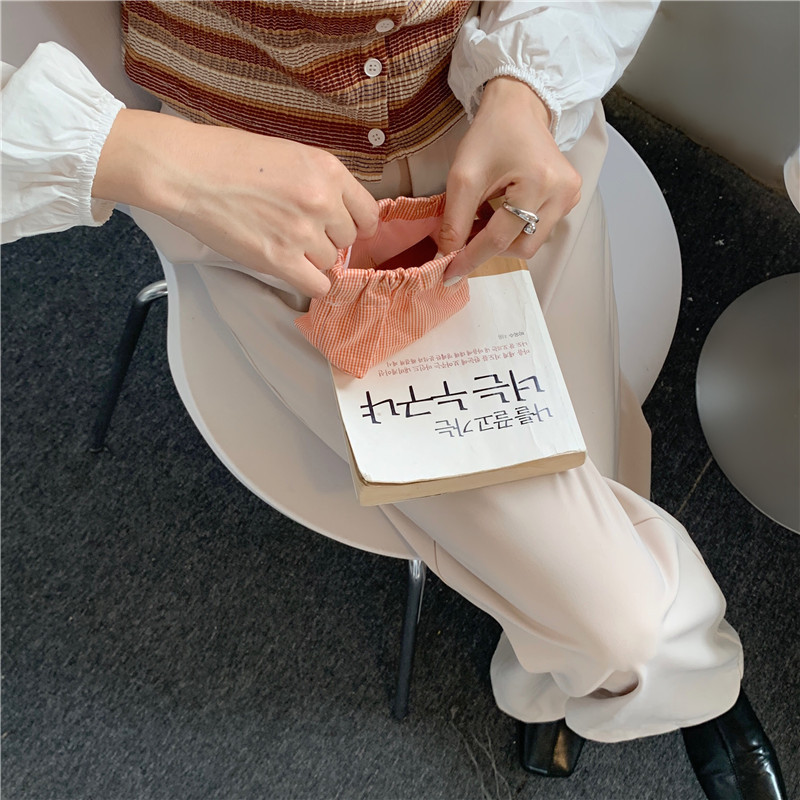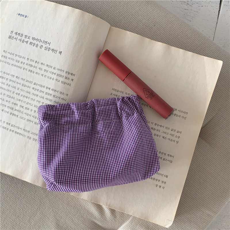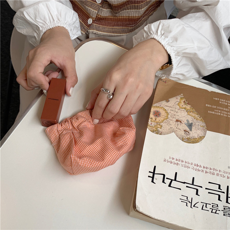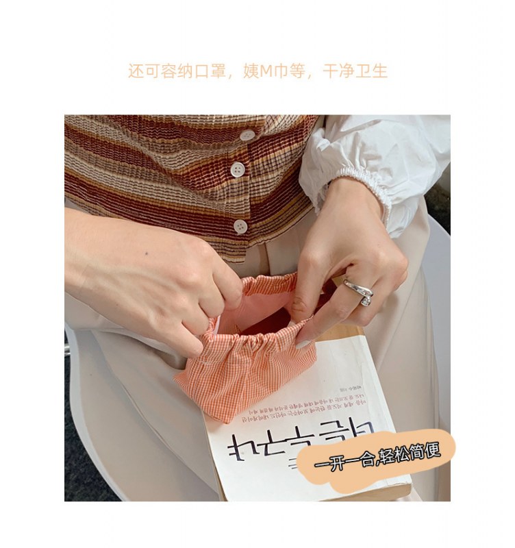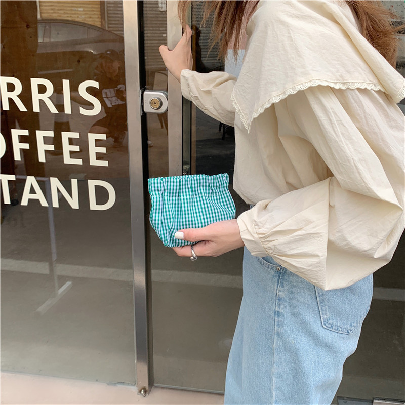 • インインターネット有名人対照的な格子縞のゴールドバッグ小さな新鮮な小銭入れミニ化粧品バッグキー収納袋