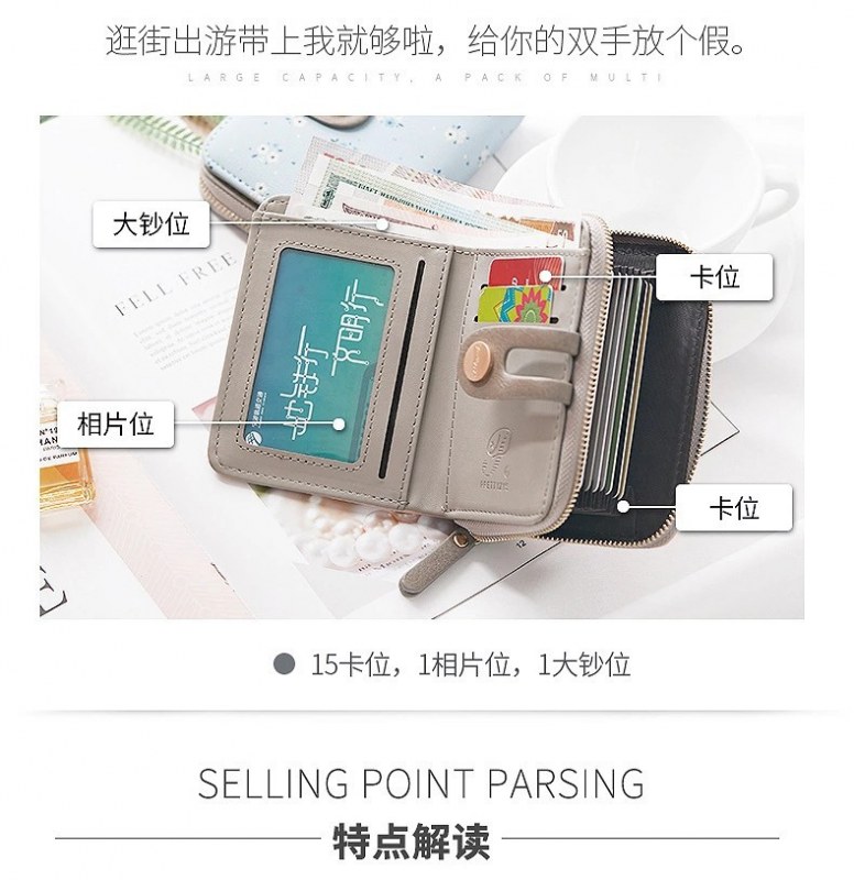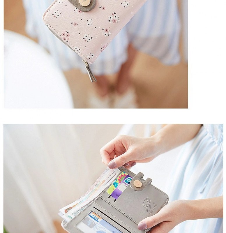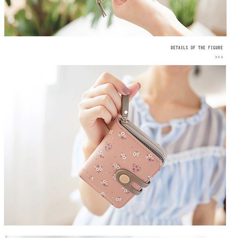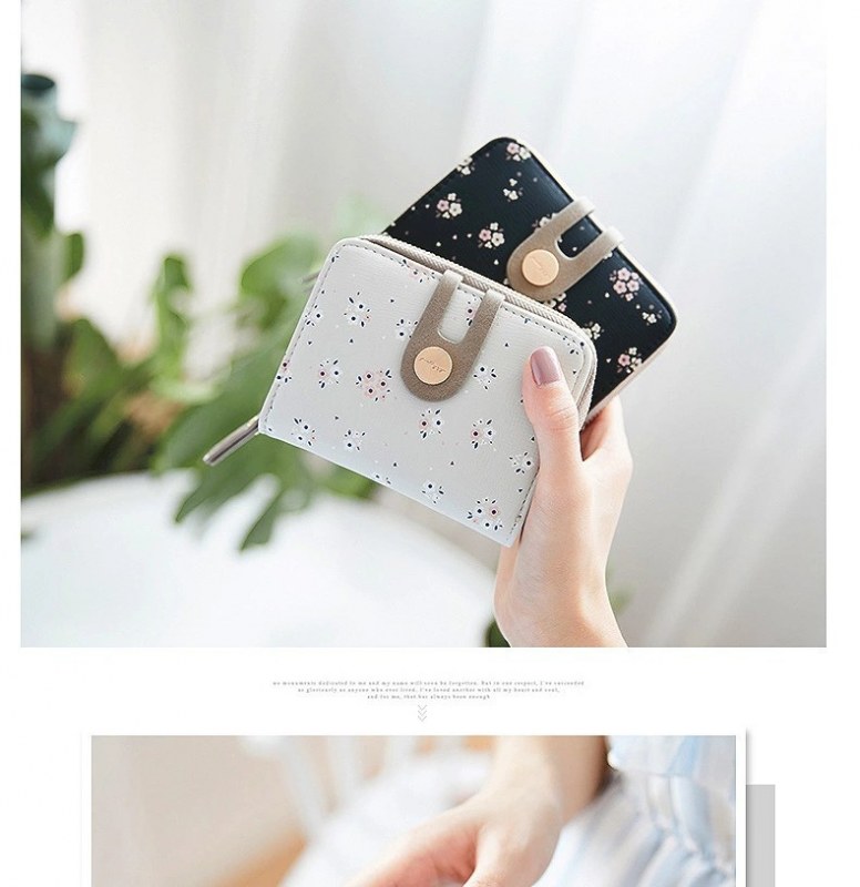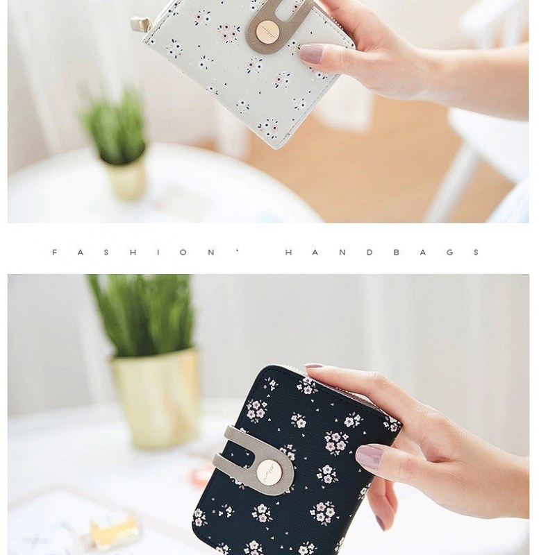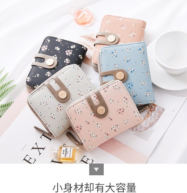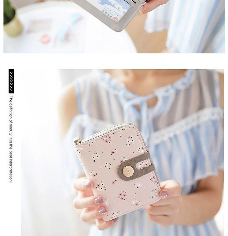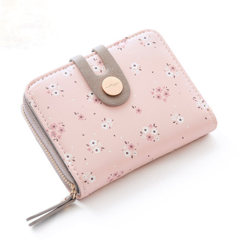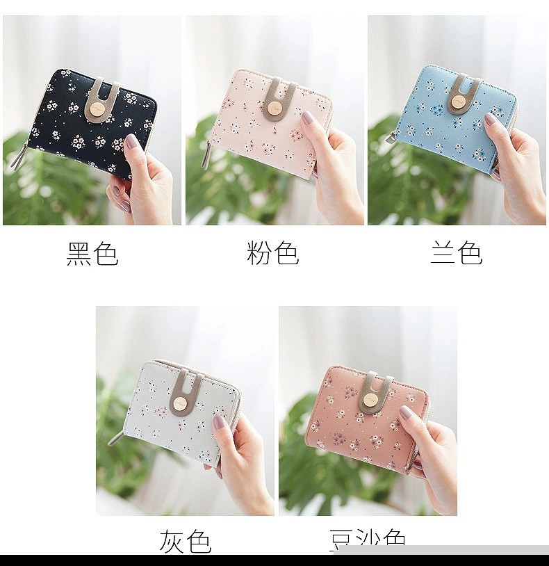• ショート財布女性の夏の新しい PU プリントジッパーショートウォレットアコーディオンカードバッグ折りたたみスイートレディ小銭入れ