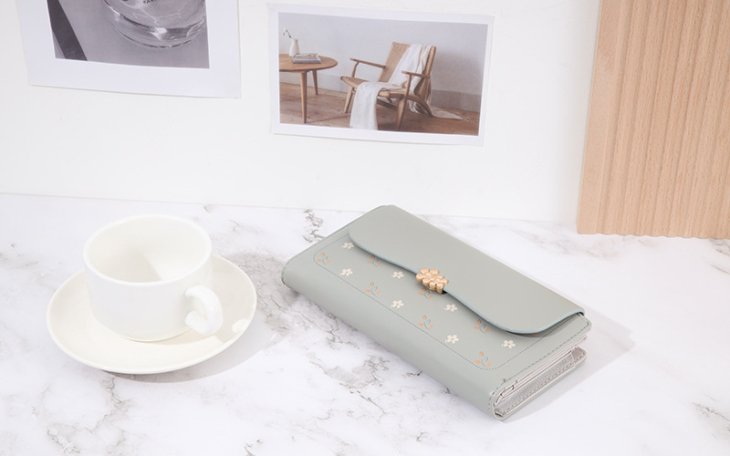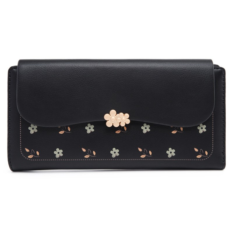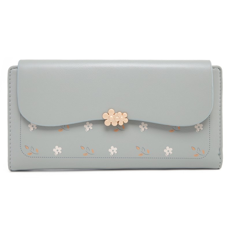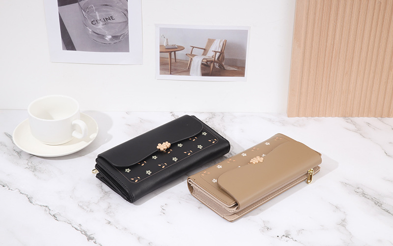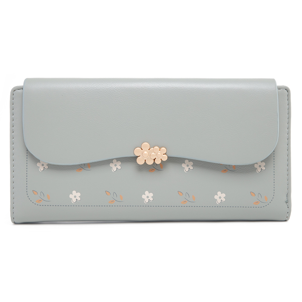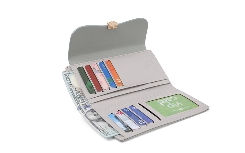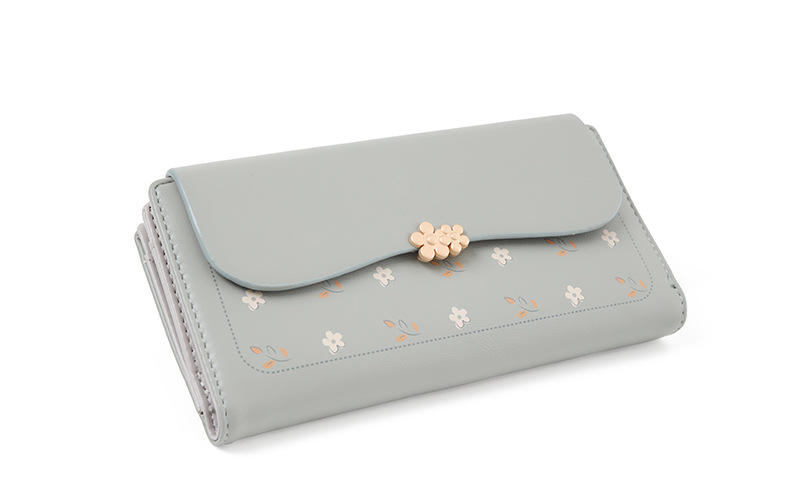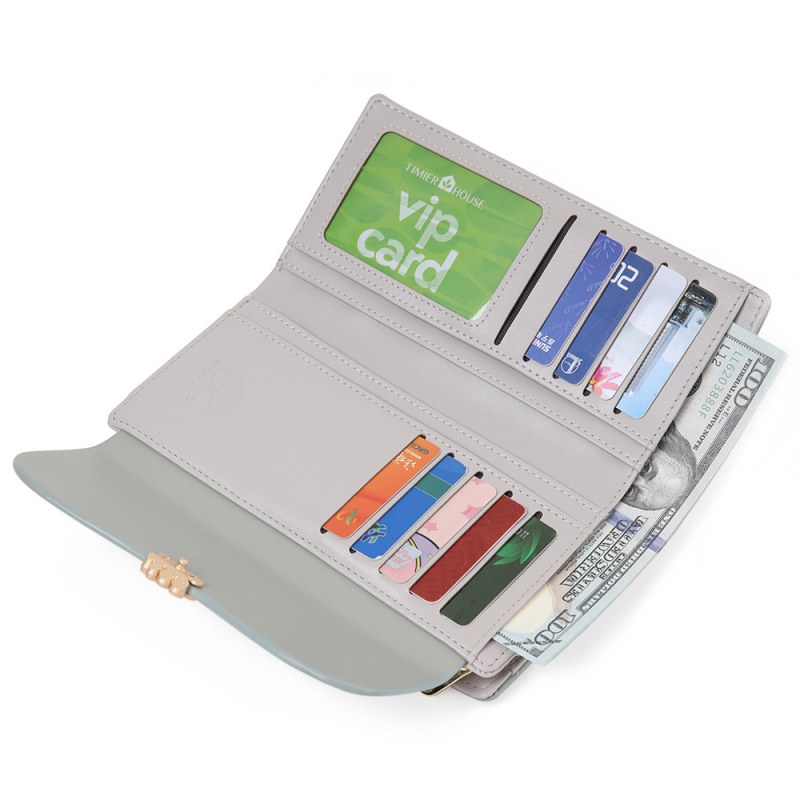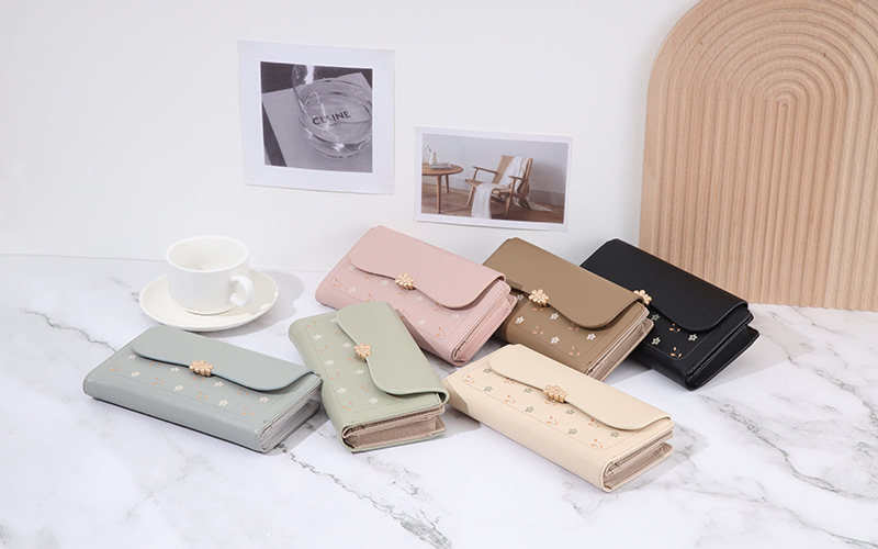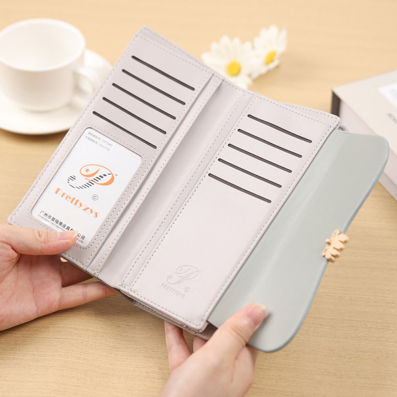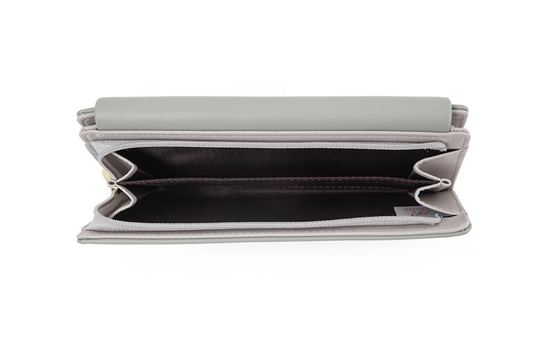 • 新しいレディース長財布韓国語バージョン PU ソリッドカラージッパー三つ折りバッグ折りたたみ女性のバックル女性のクラッチバッグ