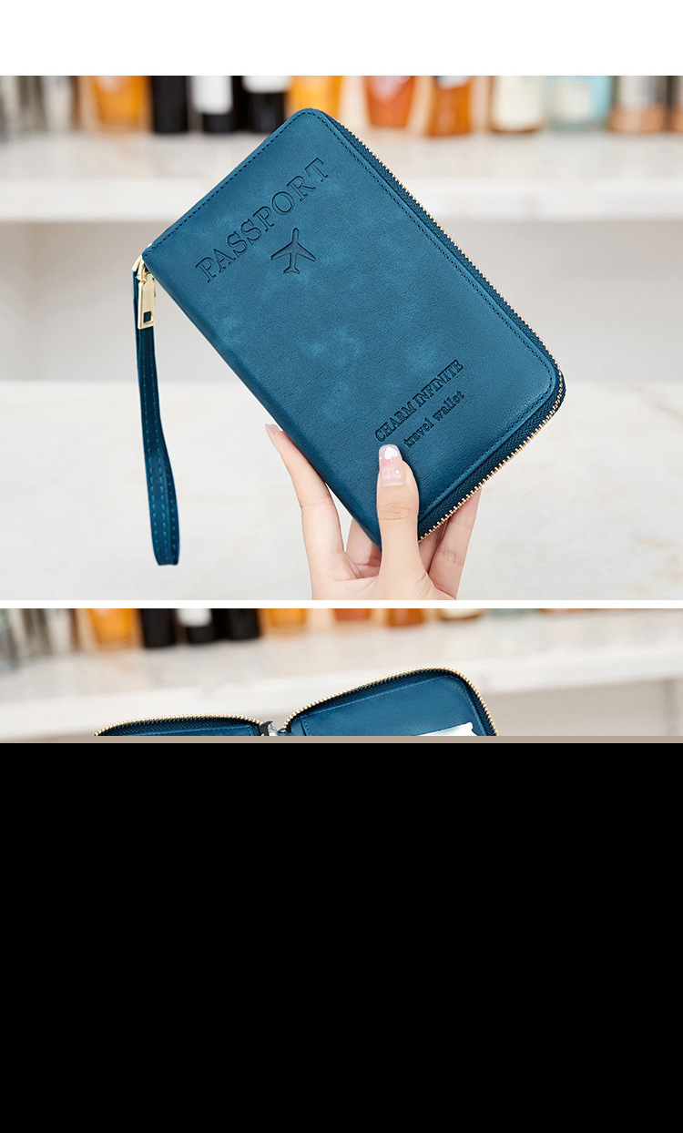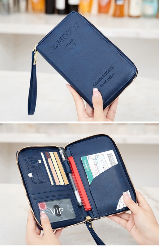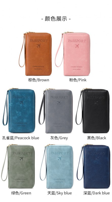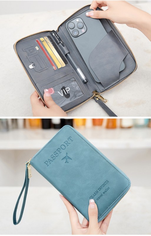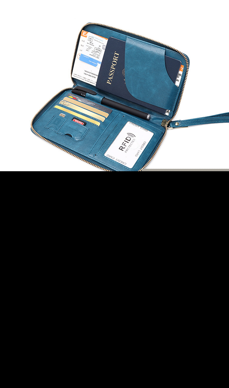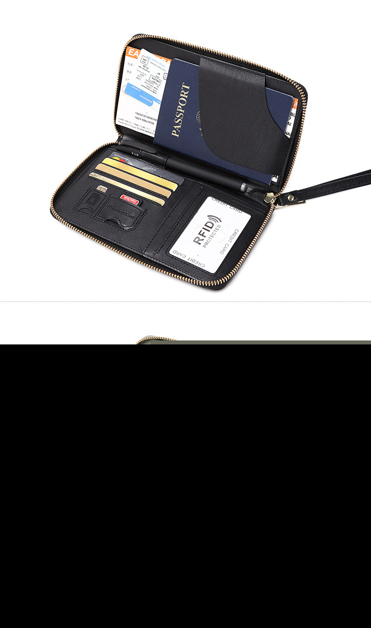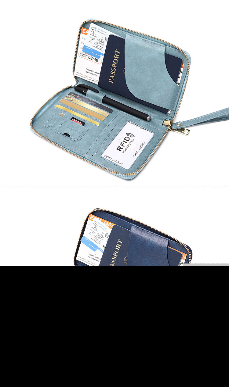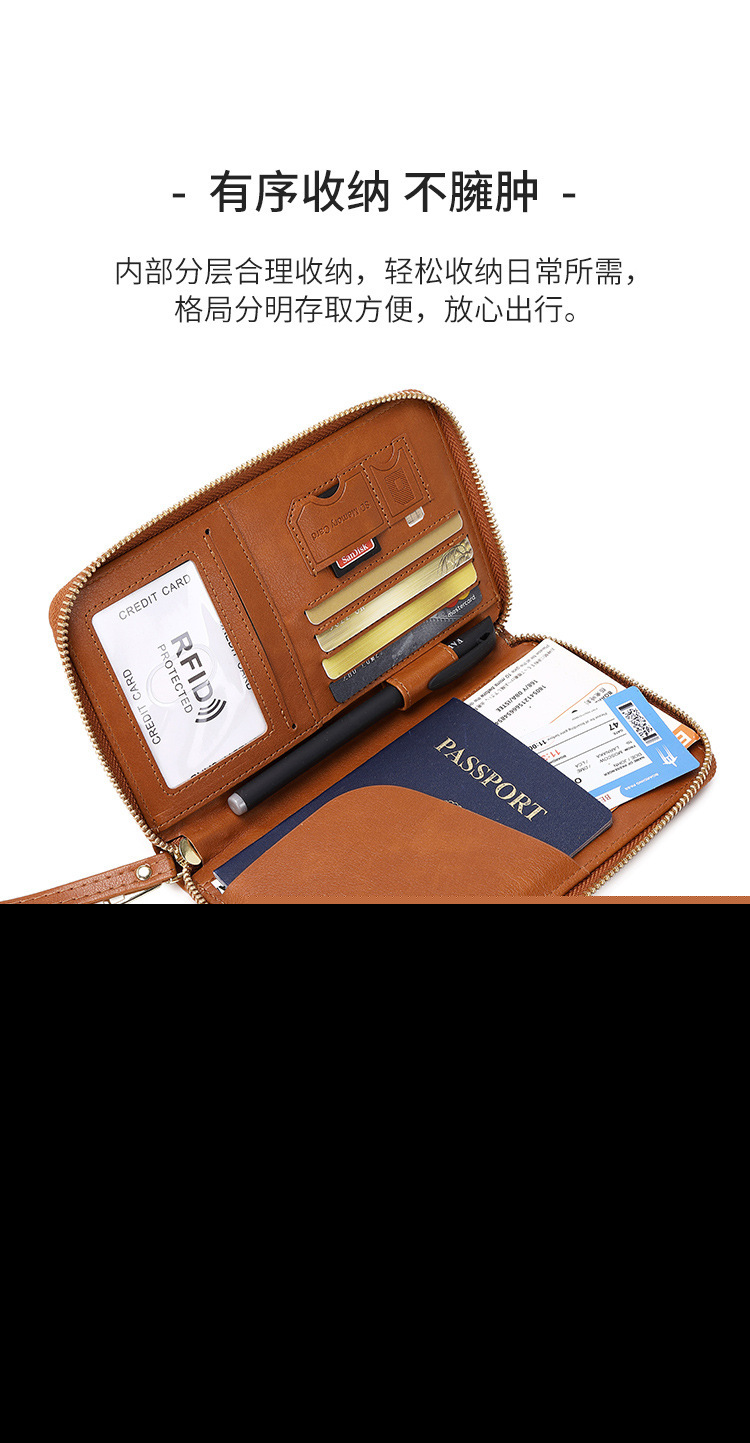 • 新しいRFIDパスポートホルダー、チケット収納、ドキュメントバッグ、ジッパー長財布、多機能旅行パスポートバッグ