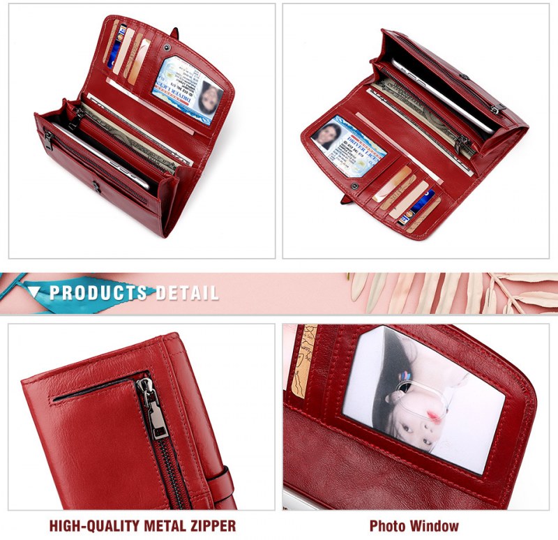 • 新しいヨーロッパとアメリカの女性の革財布 RFID ロングジッパーレトロ財布大容量の女性のクラッチ
