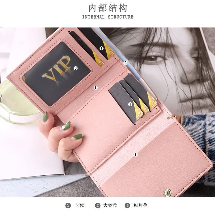 • ins ショートウォレット女性のための 2023 新しいヨーロッパとアメリカのファッションシンプルなカラー三つ折り個性かわいい小さな新鮮な財布