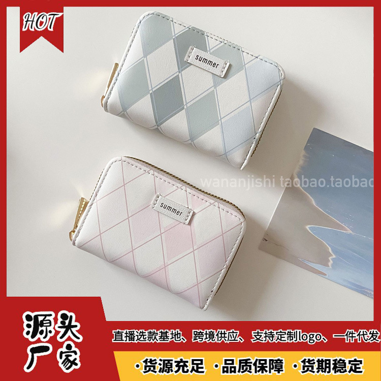 • Haiyan ブルーチェック人気の小さなバッグ/カードホルダー財布オールインワンバッグレディースショートウォレットニッチデザイン