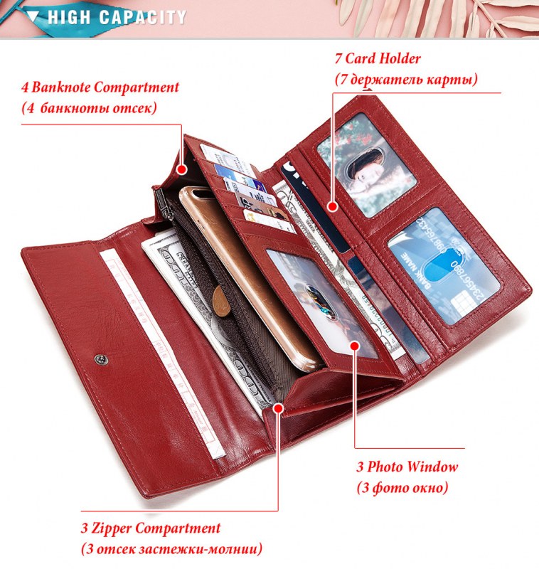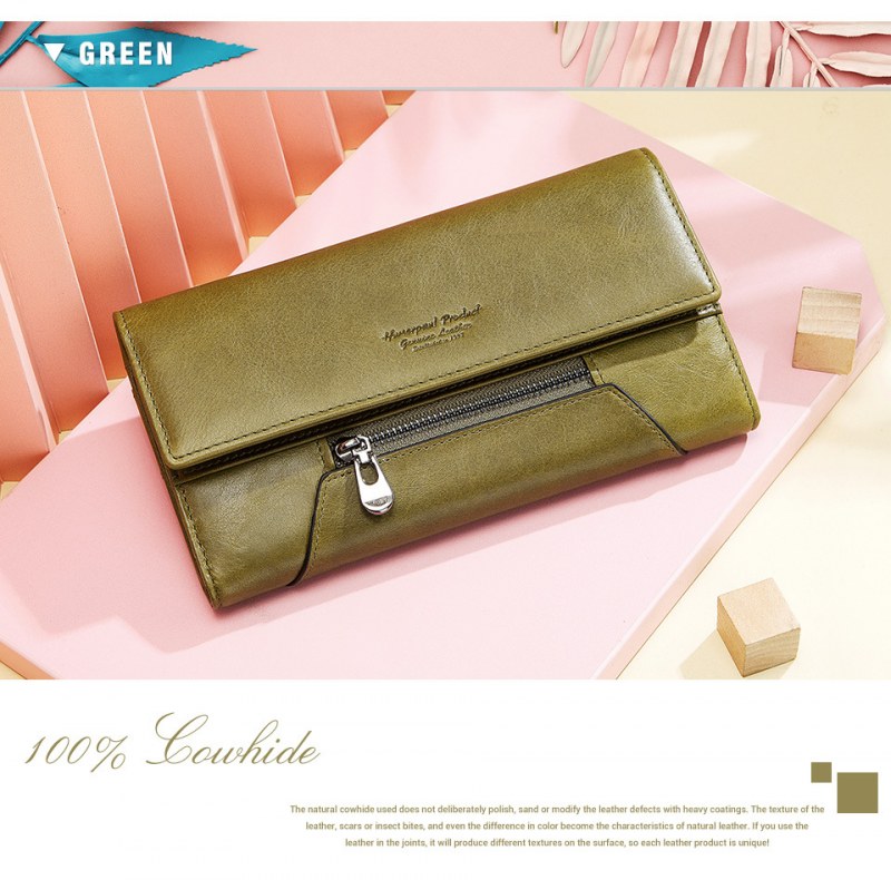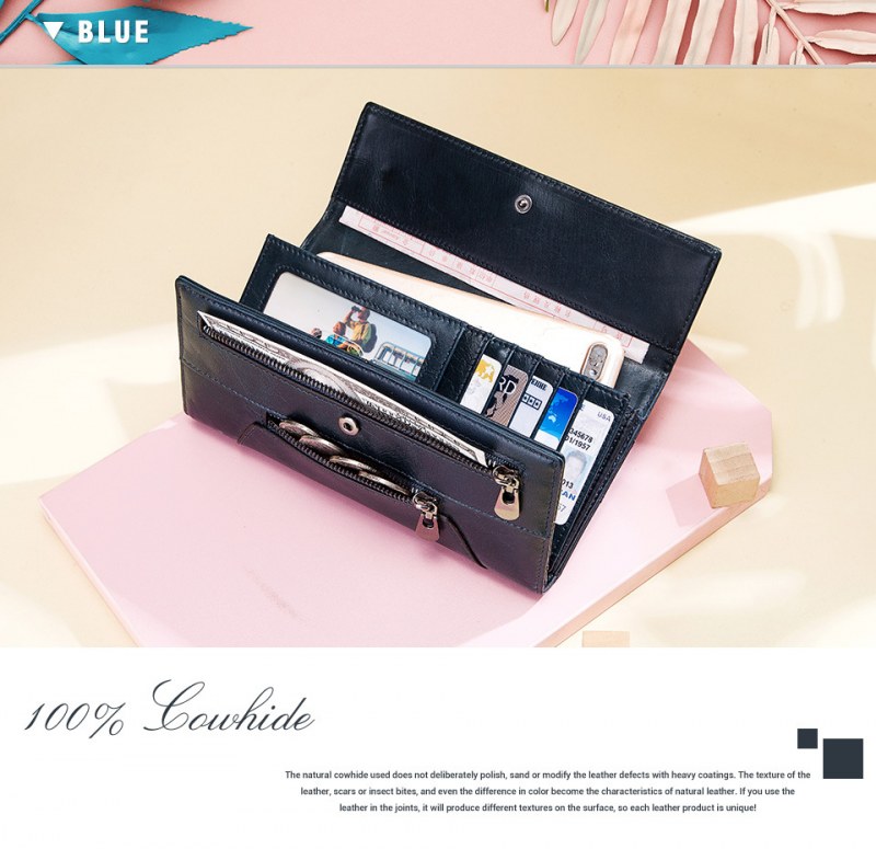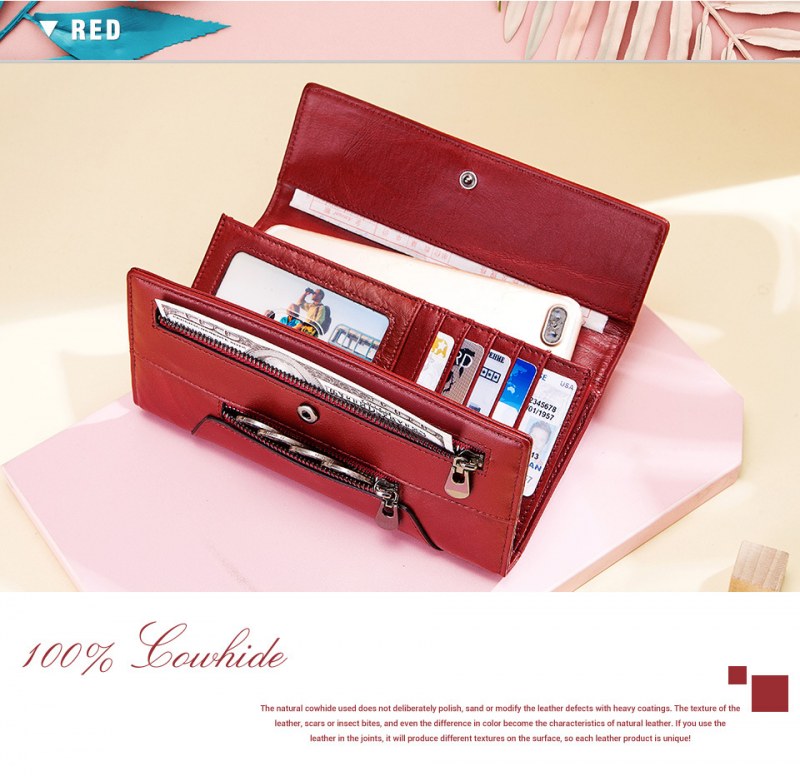 • 本革レディースウォレットロングファーストレイヤー牛革RFIDマルチカードスロットクラッチバッグレディース携帯電話バッグ