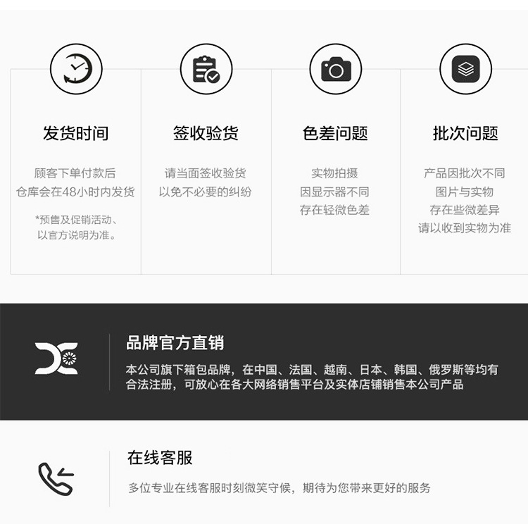 弊社が取り扱っている商品は、自社の海外工場から直送しています。ご入金が確認でき次第に商品を発送いたします。ご注文殺到時や、ご注文数量、種類が多い場合は、発送が遅れる可能性がございます、ご了承ください。ご注文商品の中に在庫がない商品につき、その商品のみキャンセルさせていただき、在庫のある商品のみをまとめて発送させていただきます。また、ご注文後の商品追加や、内容変更、同梱などはお受付しておりません。