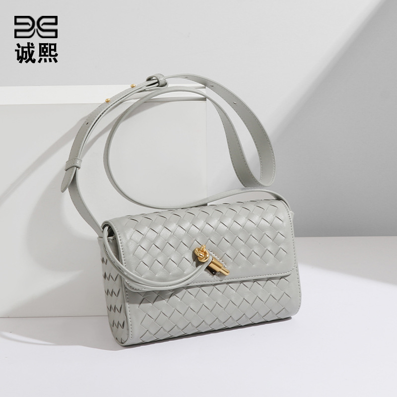 • 女性のための新しいスタイルのバッグ、手織り、シンプル、ファッショナブル、ヨーロッパとアメリカのハイエンドロックバックル、シングルショルダークロスボディ小さなスクエアバッグ