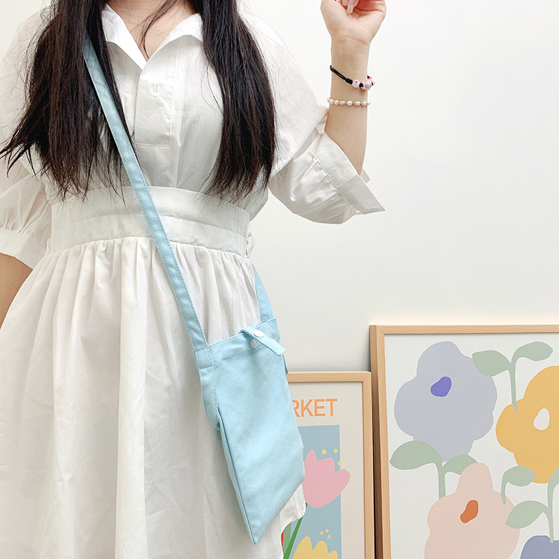 • シンプルなソリッドカラーのニッチクロスボディキャンバス小さなバッグポータブル携帯電話バッグ女性の携帯電話用クロスボディ小さな正方形のバッグ