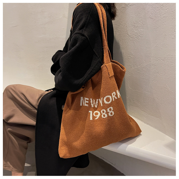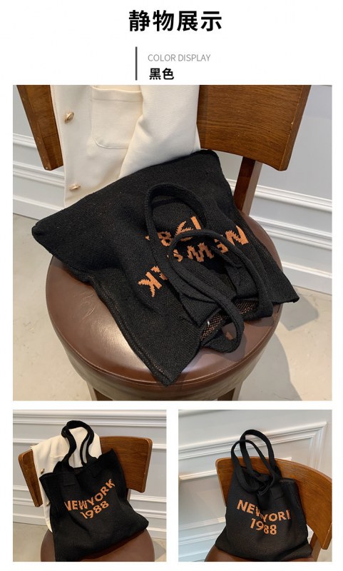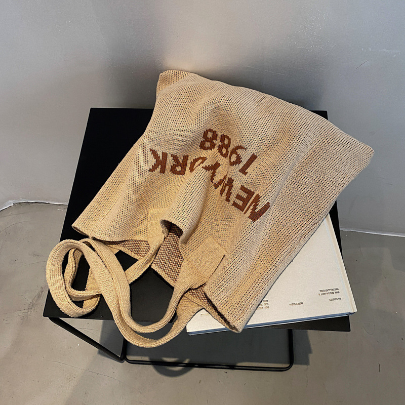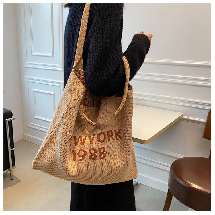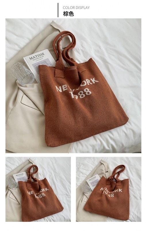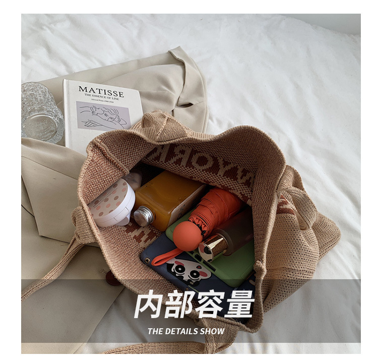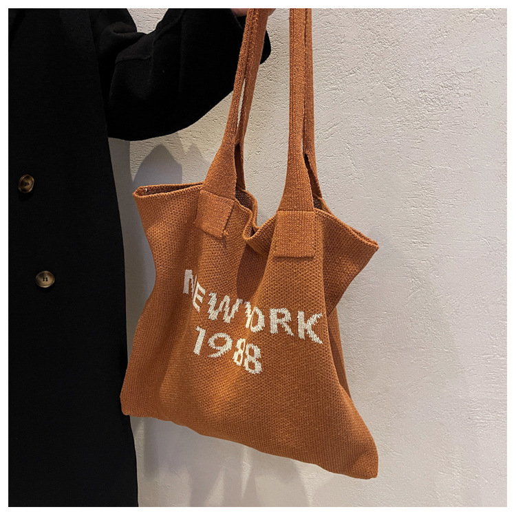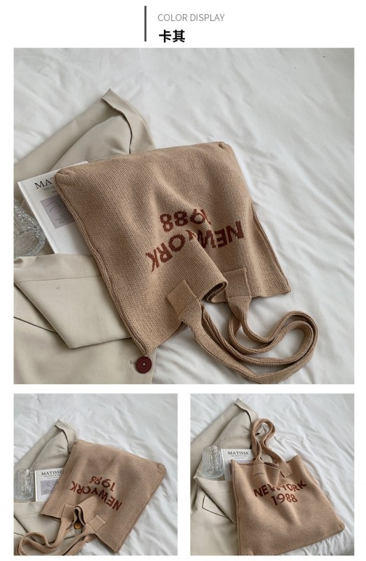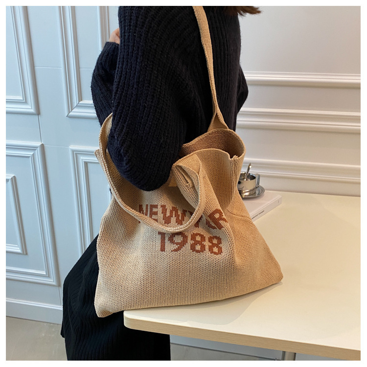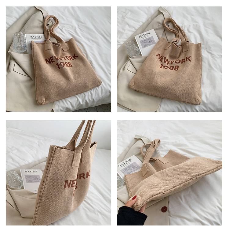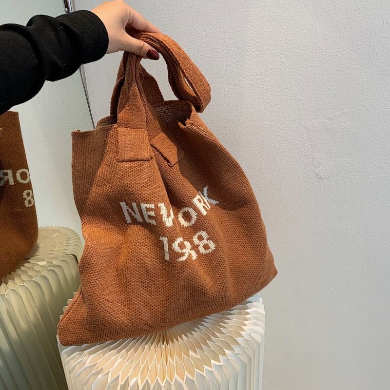 • ニット文字レトロウールバッグ多用途大容量トートバッグショッピングバッグショルダーバッグ女性