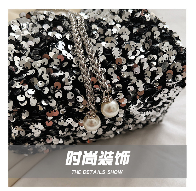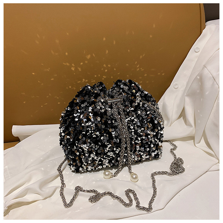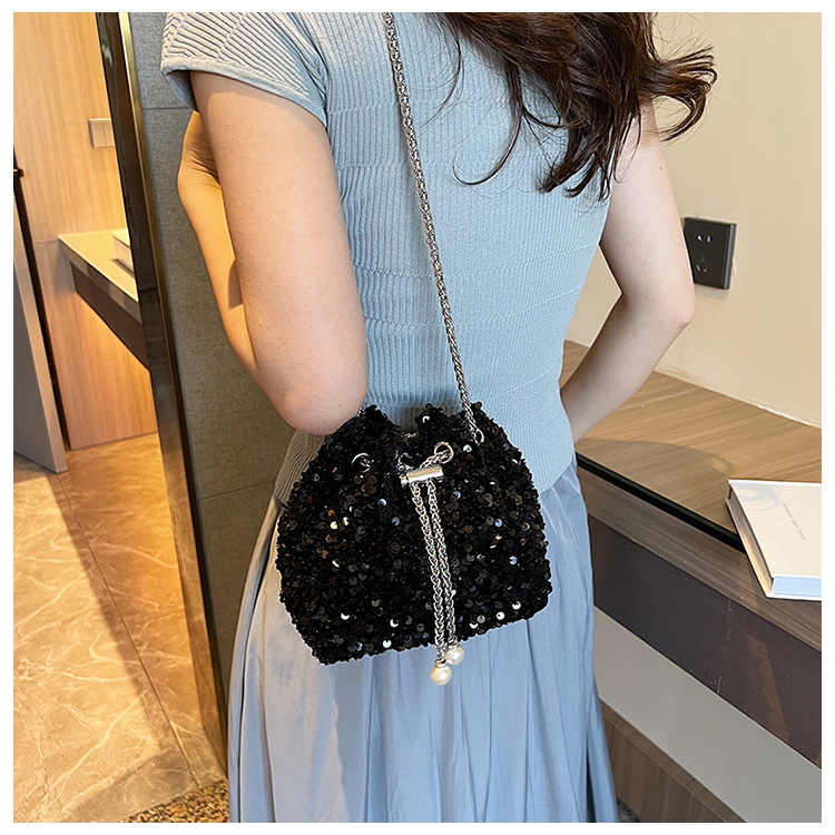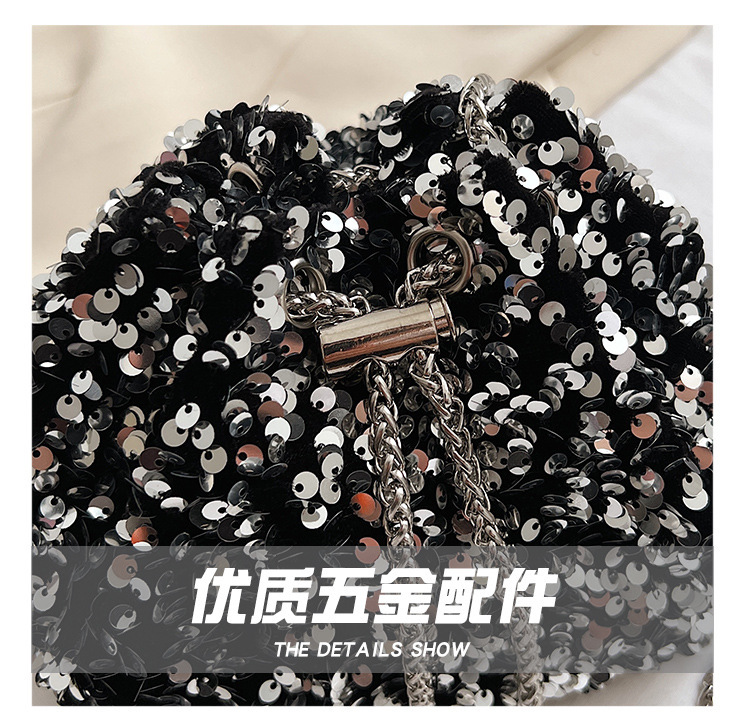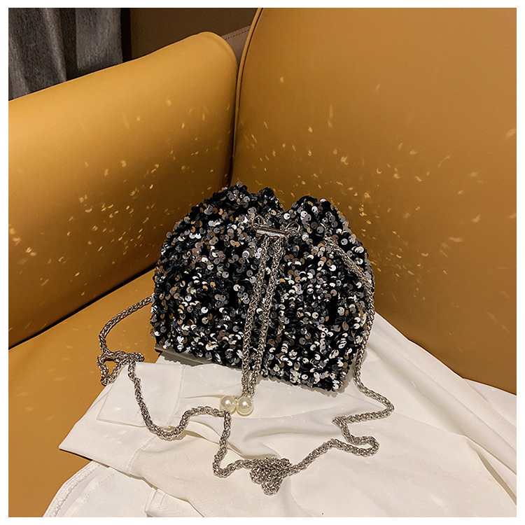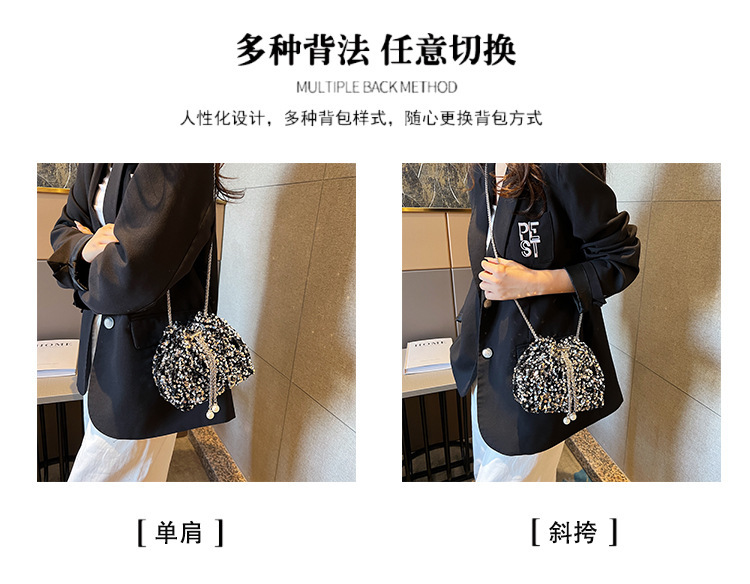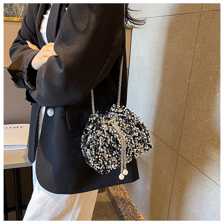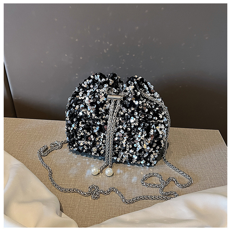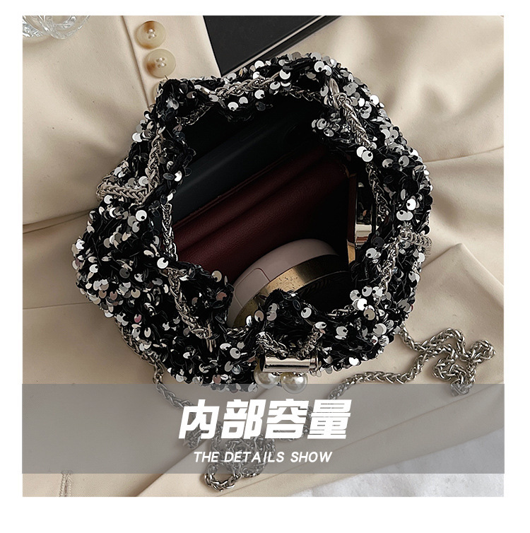 • 女性のためのファッショナブルな個性のスパンコールバッグ 2023 新しい韓国スタイルのバケットバッグ、外国スタイルのショルダーバッグ、トレンディなクロスボディイブニングバッグ