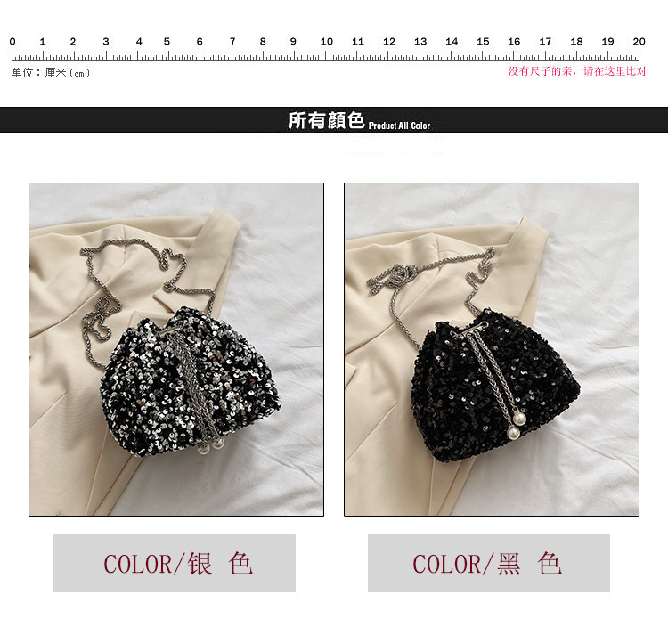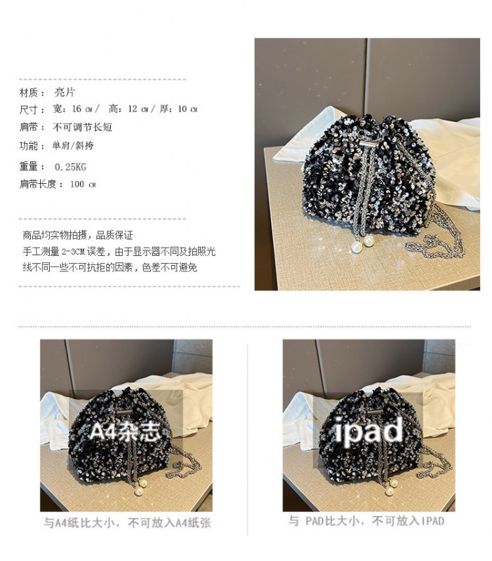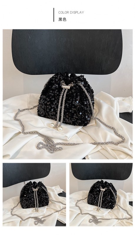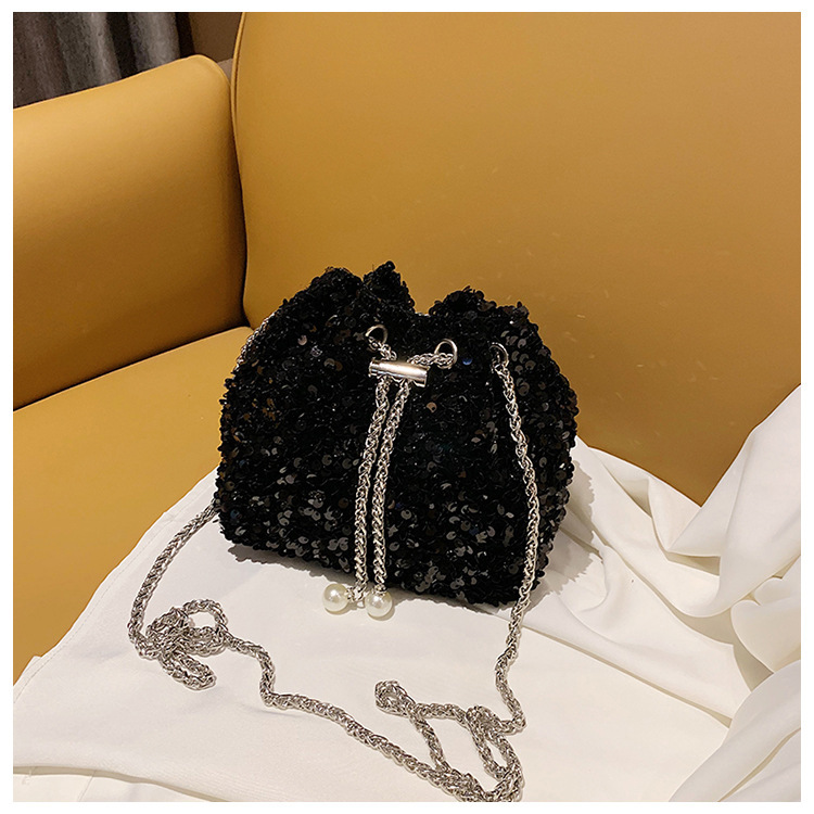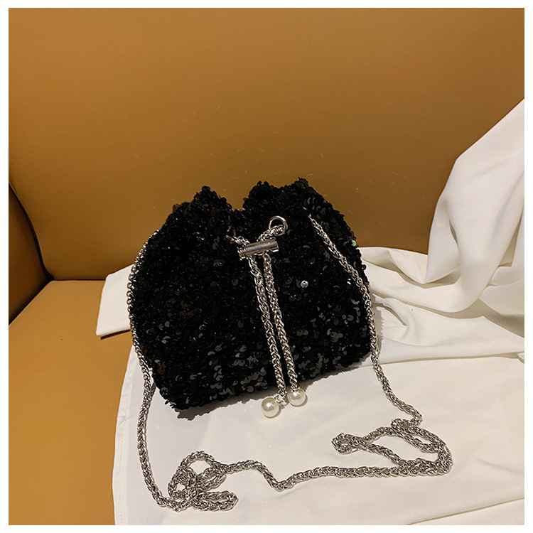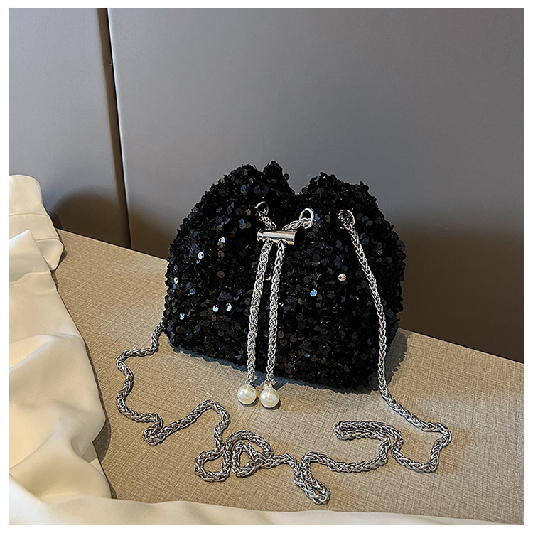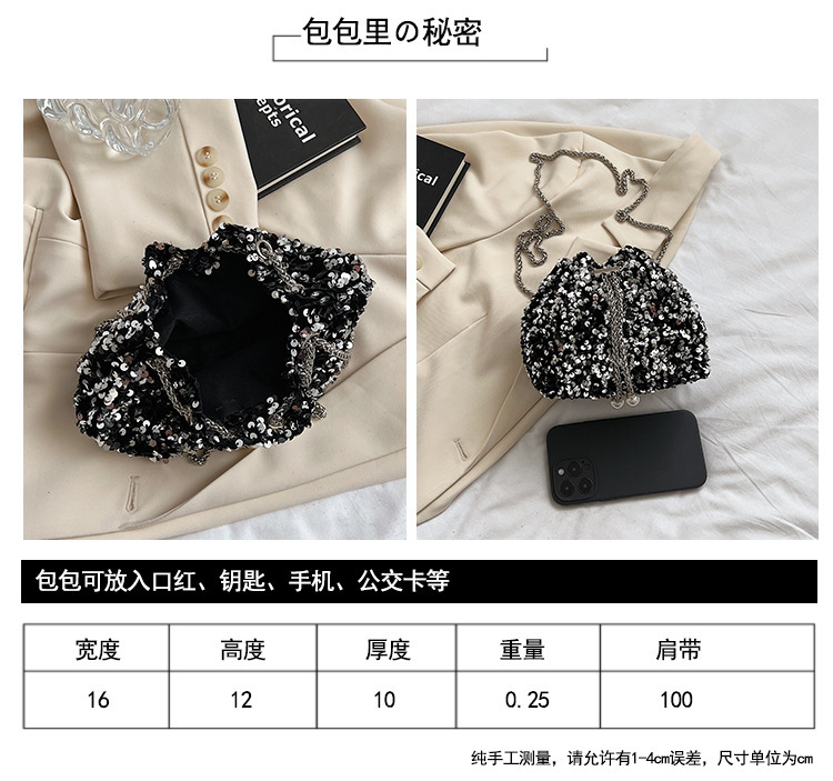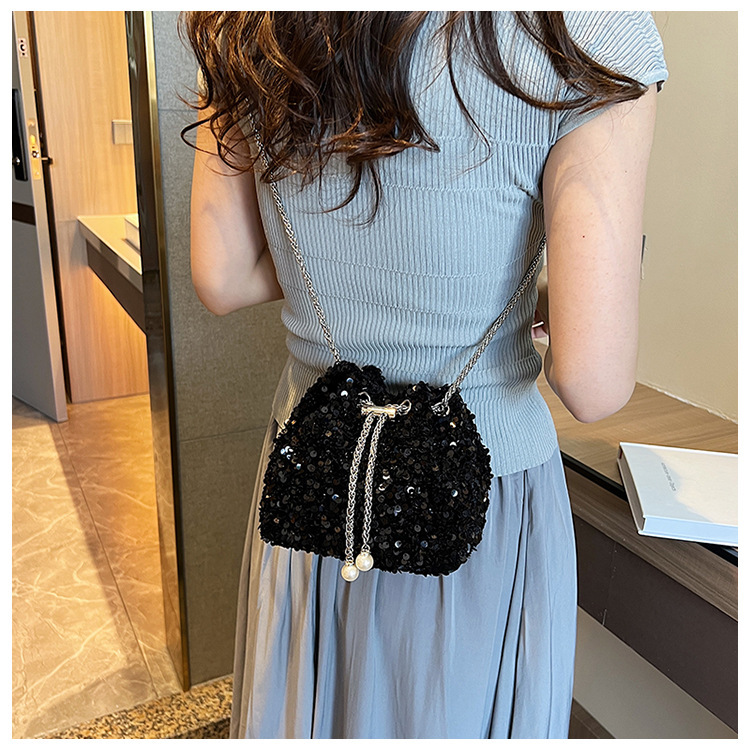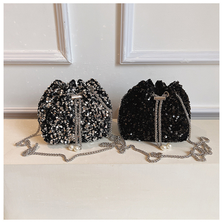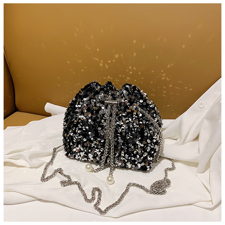 • 女性のためのファッショナブルな個性のスパンコールバッグ 2023 新しい韓国スタイルのバケットバッグ、外国スタイルのショルダーバッグ、トレンディなクロスボディイブニングバッグ