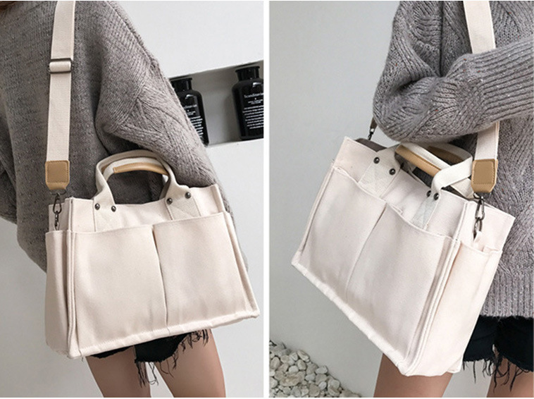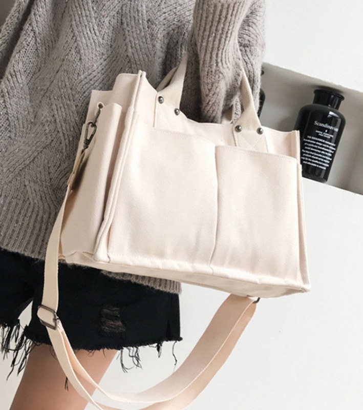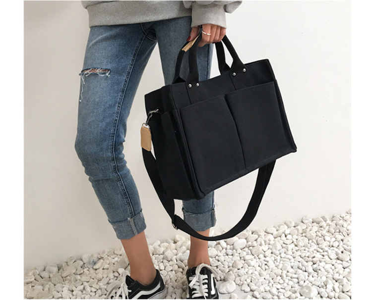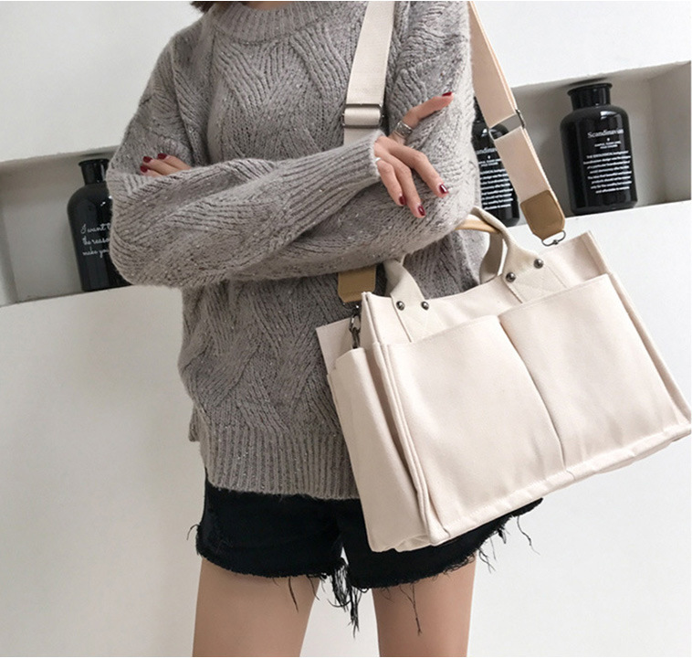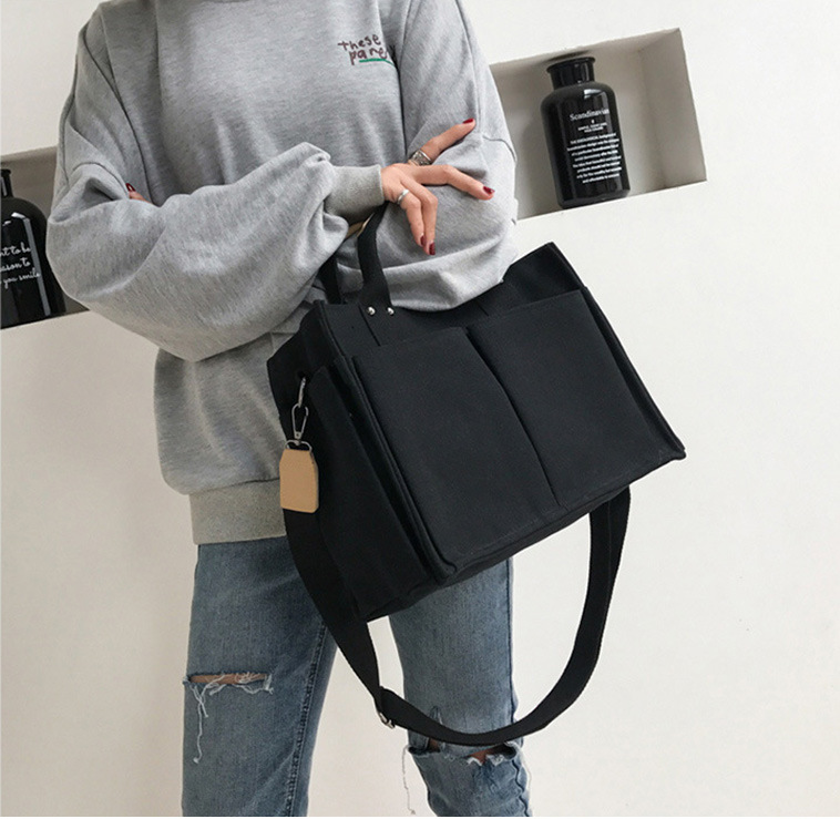 • 女性のためのバッグ 2024 新しい韓国の大容量マルチポケットキャンバスバッグ学生ショルダークロスボディポータブルトートバッグトレンディな