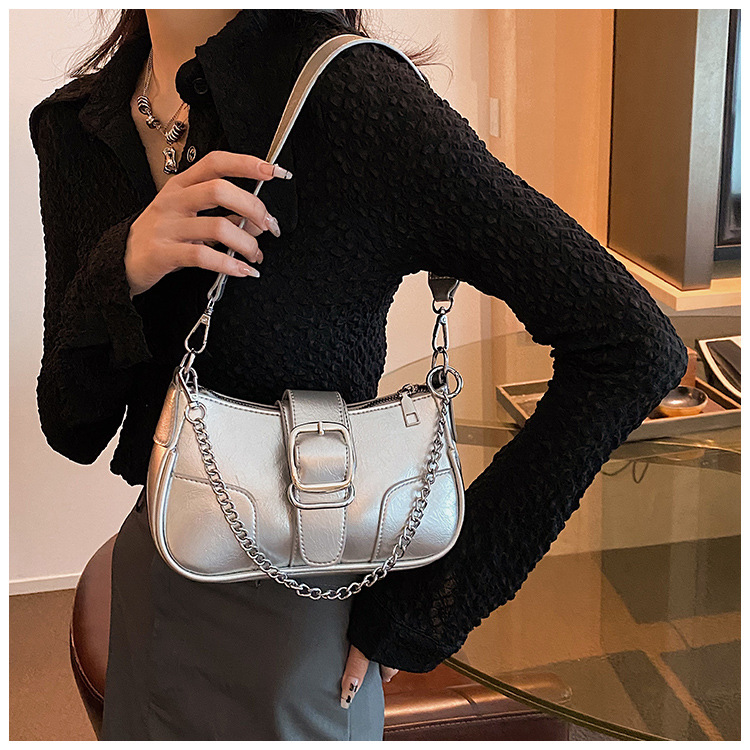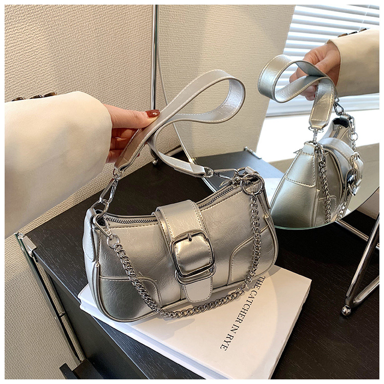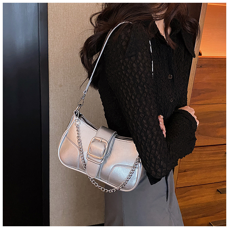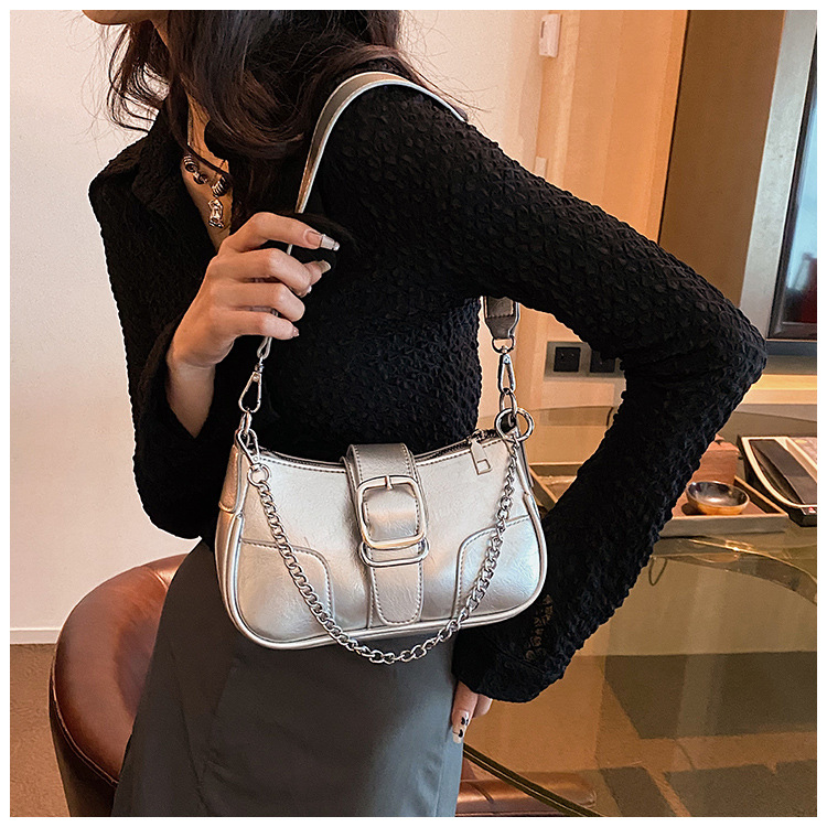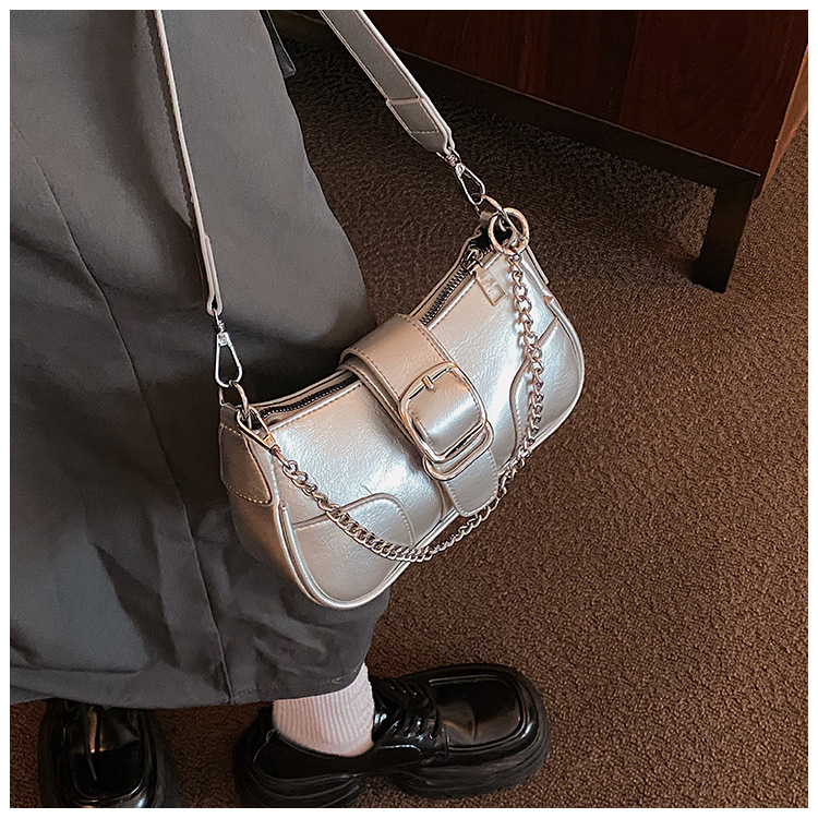 • チェーンバッグ女性のための 2023 新しいトレンディなファッション高品質ショルダーバッグニッチバゲットクロスボディバッグ