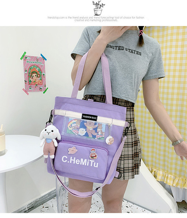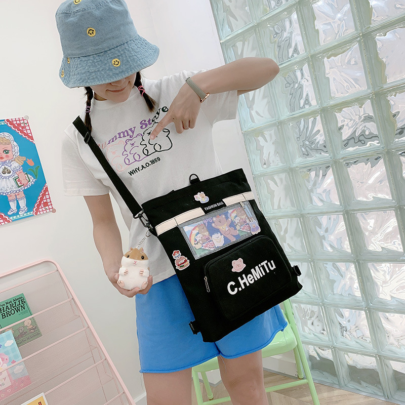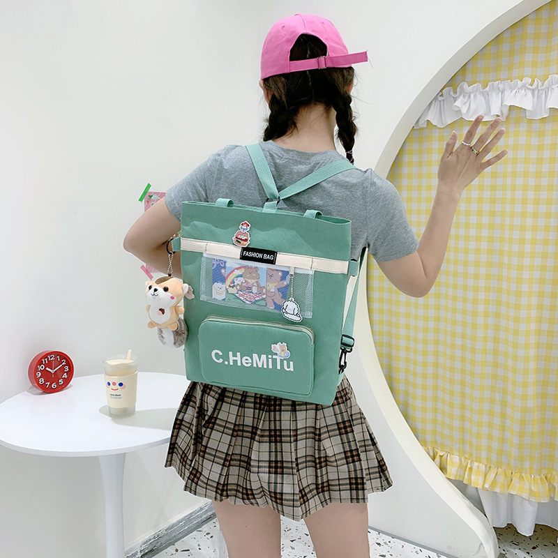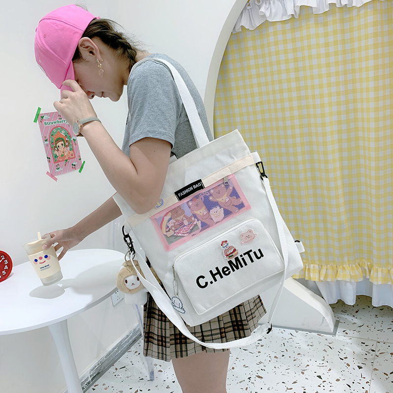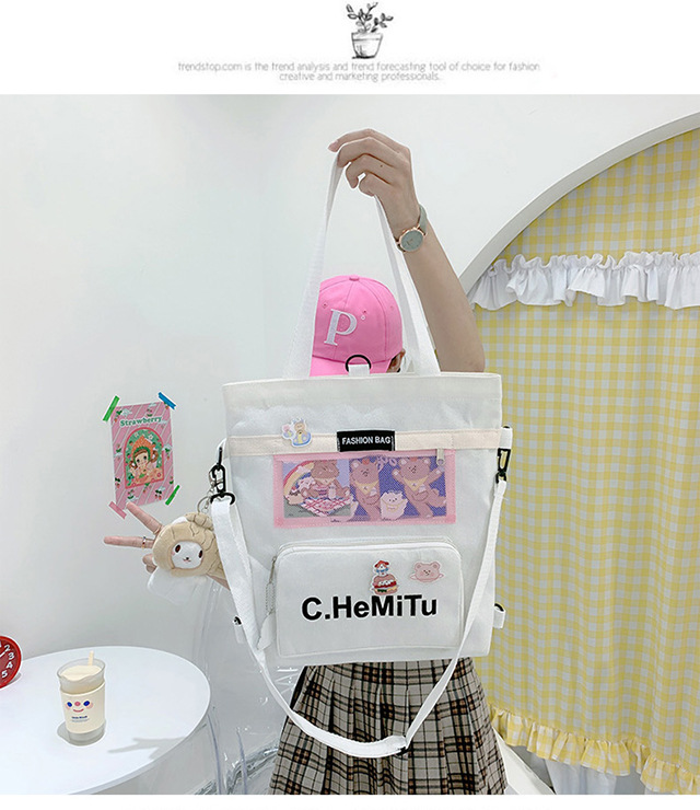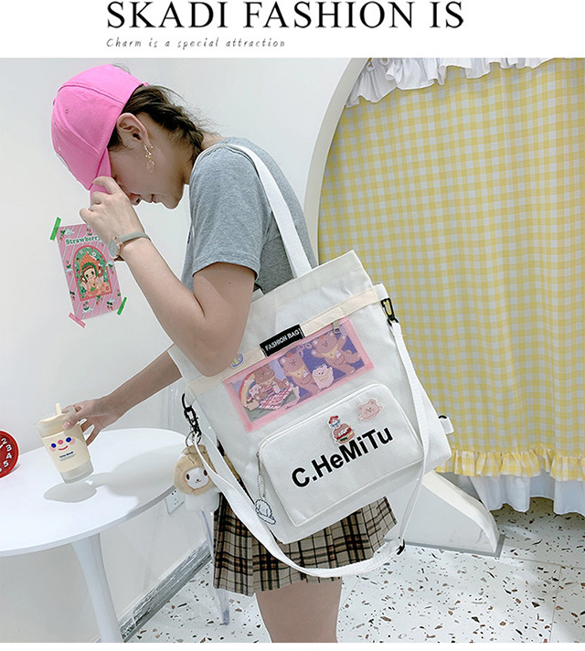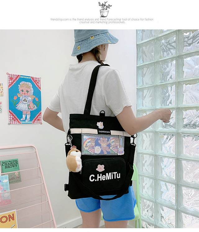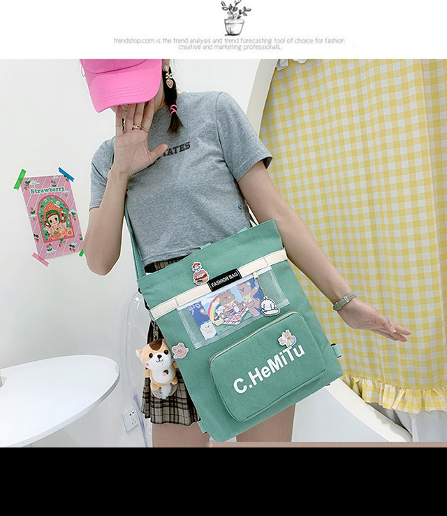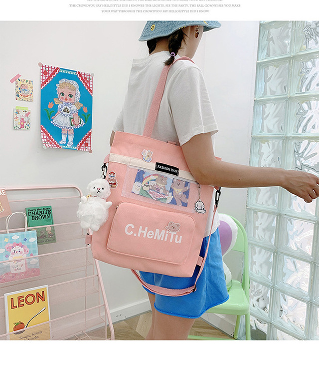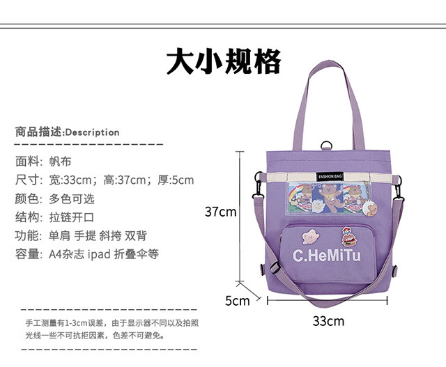• キャンバスバッグ レディース クロスボディバッグ 大容量 ショルダーバッグ 多機能 学生チュートリアルバッグ シンプル 韓国風 バックパック 学生バッグ