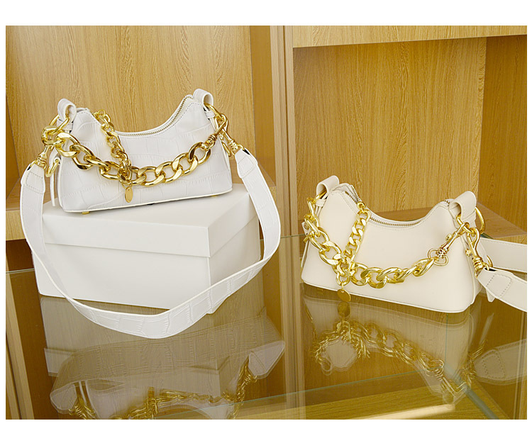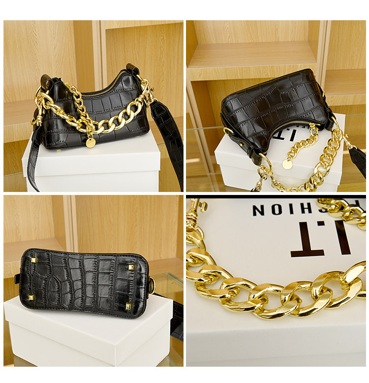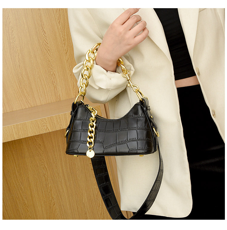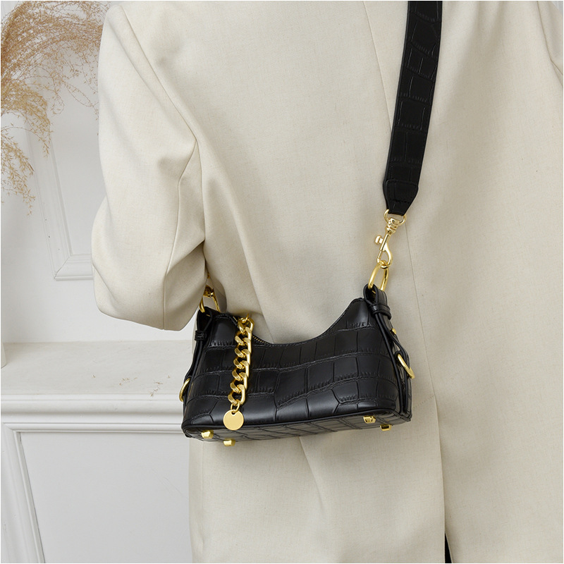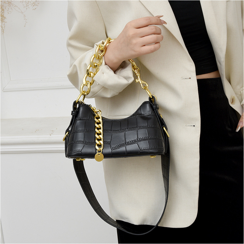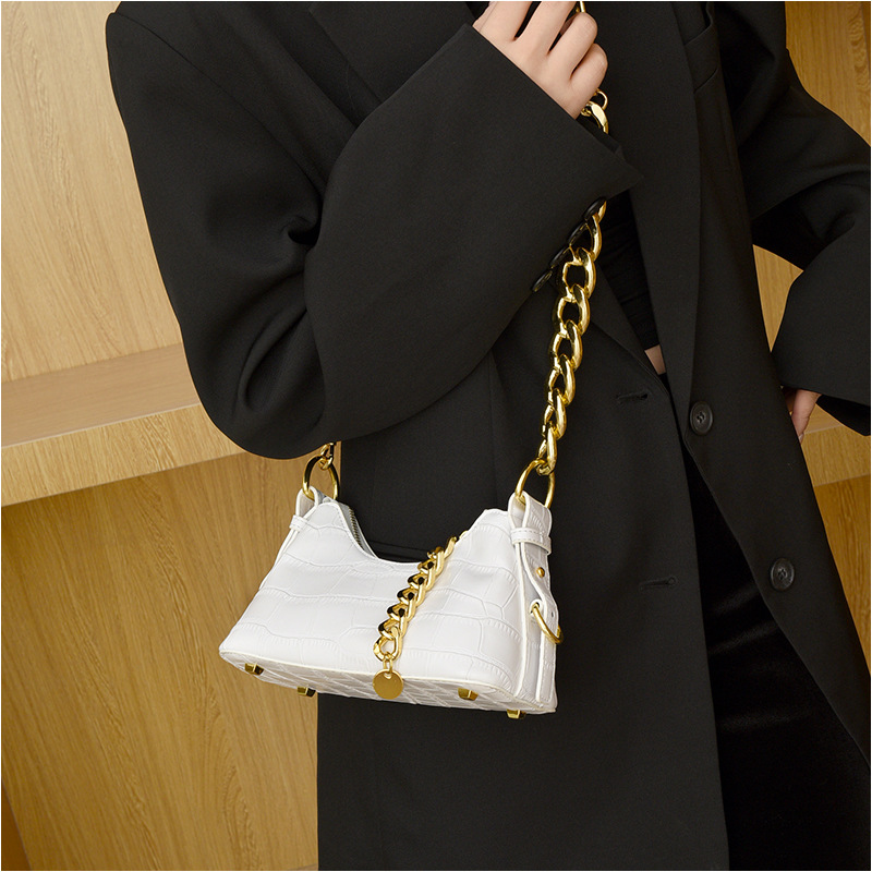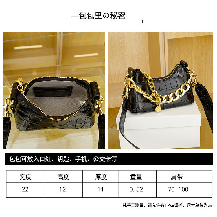 • ファッショナブルな韓国スタイルのレディースバッグ、高級レザークロコダイルパターン、シープスキンパターンチェーンバゲットバッグ、女性用ワンショルダークロスボディダンプリングバッグ