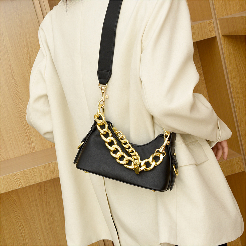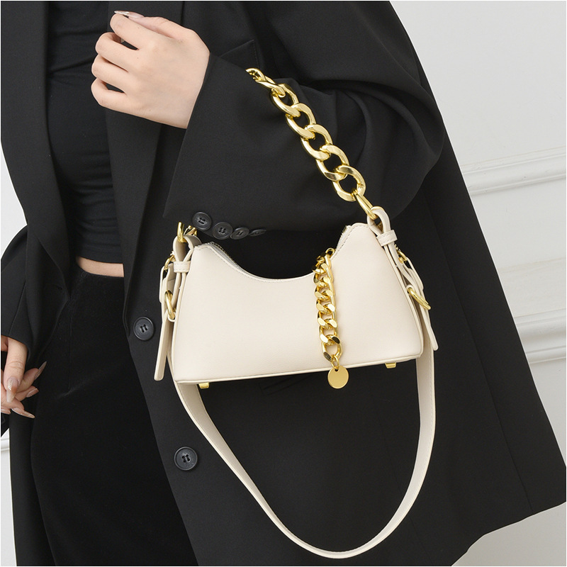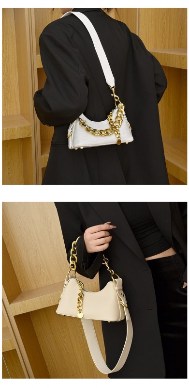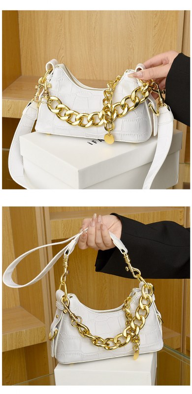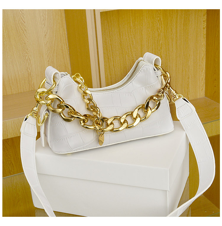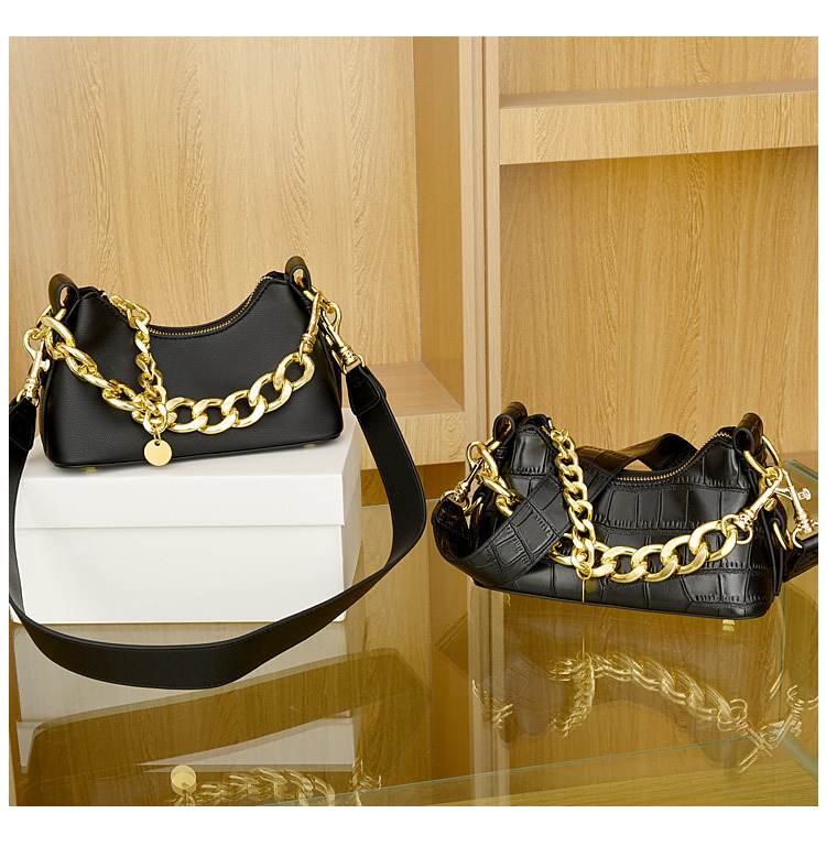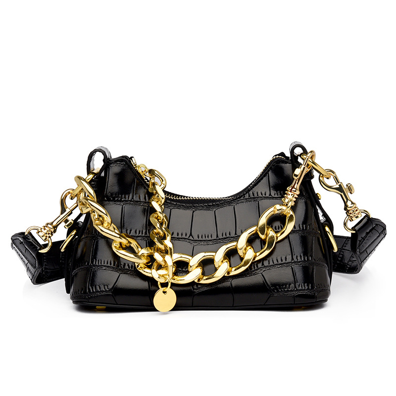 • ファッショナブルな韓国スタイルのレディースバッグ、高級レザークロコダイルパターン、シープスキンパターンチェーンバゲットバッグ、女性用ワンショルダークロスボディダンプリングバッグ