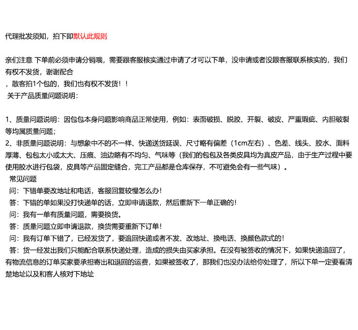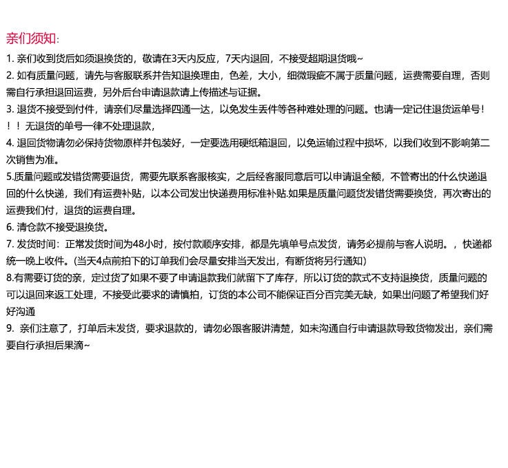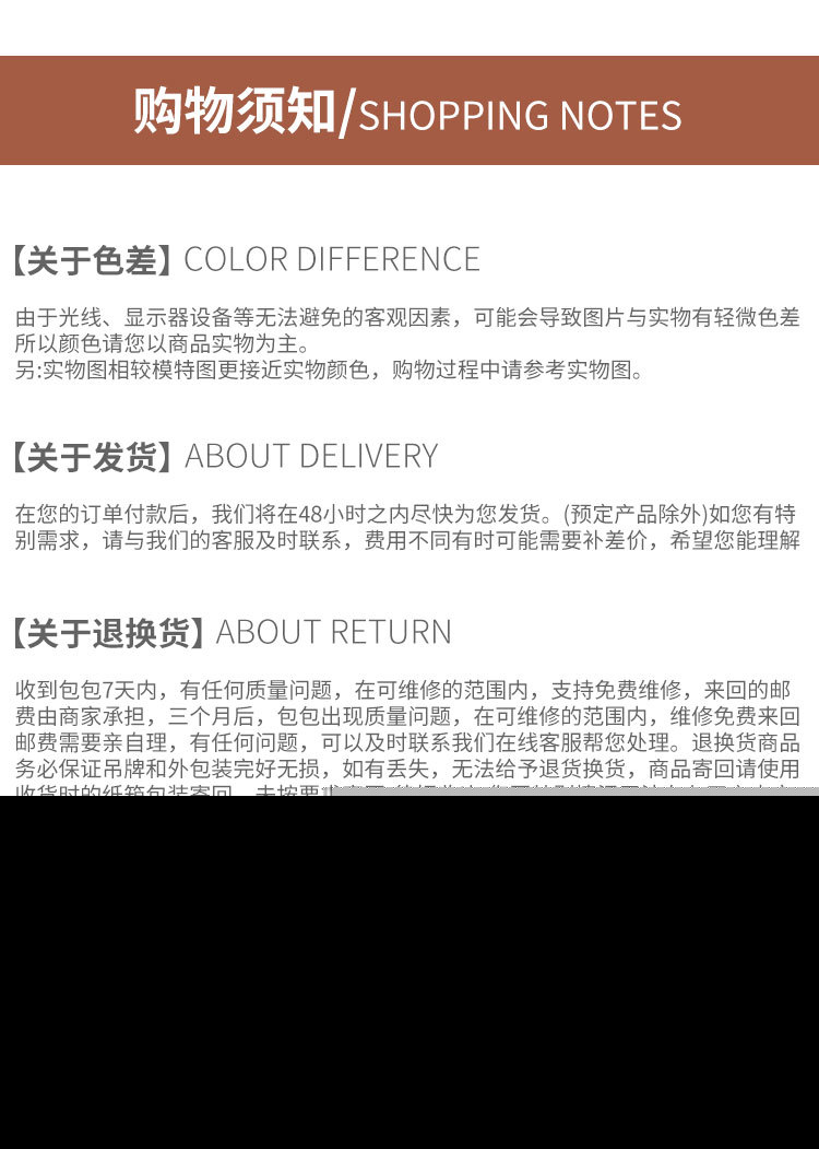 弊社が取り扱っている商品は、自社の海外工場から直送しています。ご入金が確認でき次第に商品を発送いたします。ご注文殺到時や、ご注文数量、種類が多い場合は、発送が遅れる可能性がございます、ご了承ください。ご注文商品の中に在庫がない商品につき、その商品のみキャンセルさせていただき、在庫のある商品のみをまとめて発送させていただきます。また、ご注文後の商品追加や、内容変更、同梱などはお受付しておりません。