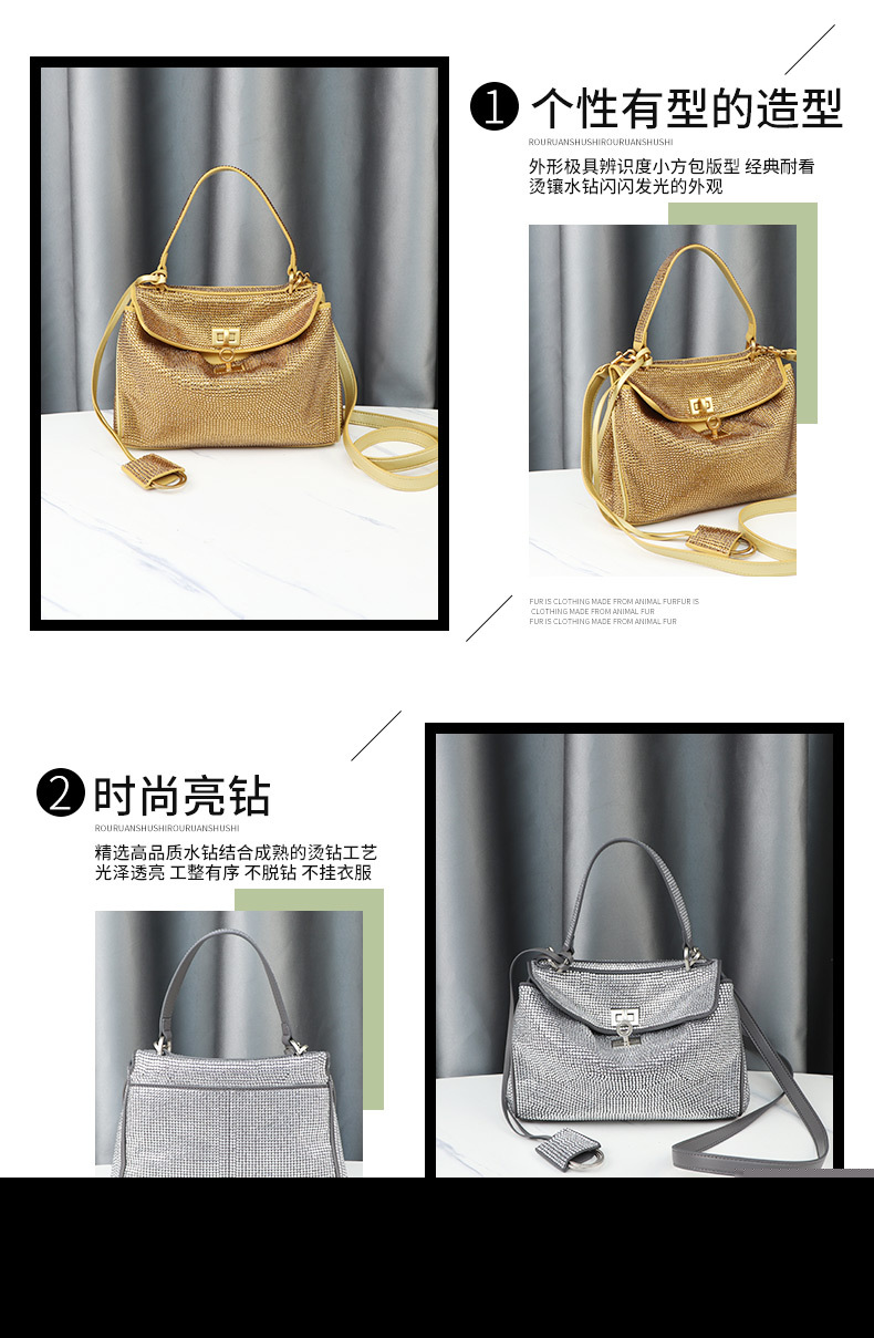 • 2024秋冬新作ダイヤモンドトートバッグ、軽くて豪華な光沢のあるラインストーンミニロックケリーバッグハンドバッグ