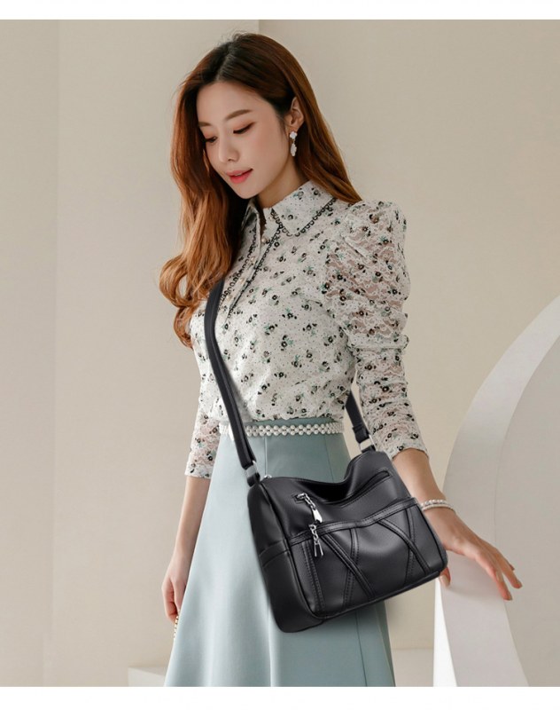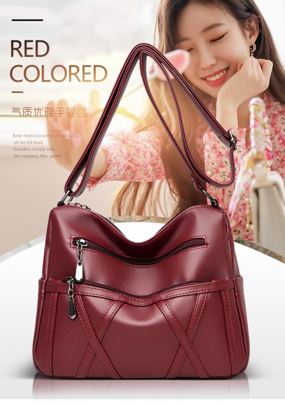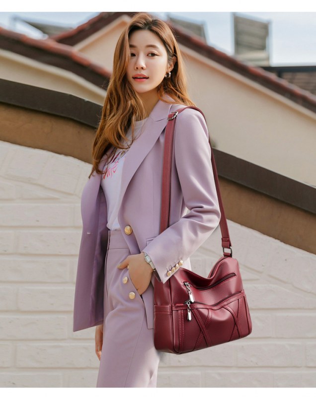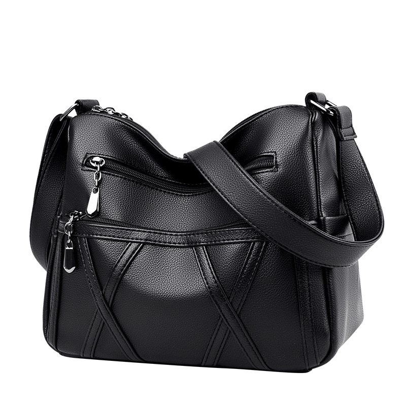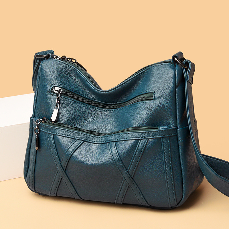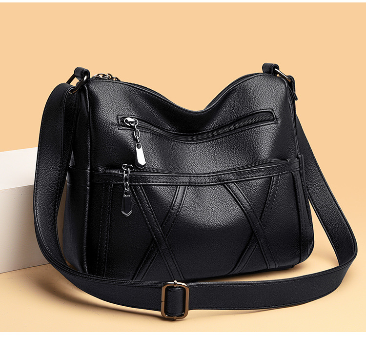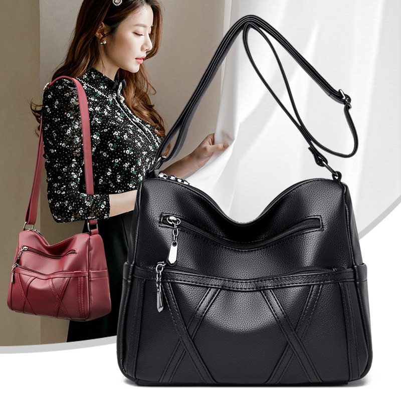 • 本革レディースバッグ2022新作ソフトレザー多層多用途ショルダークロスボディバッグ大容量中高年マザーバッグ