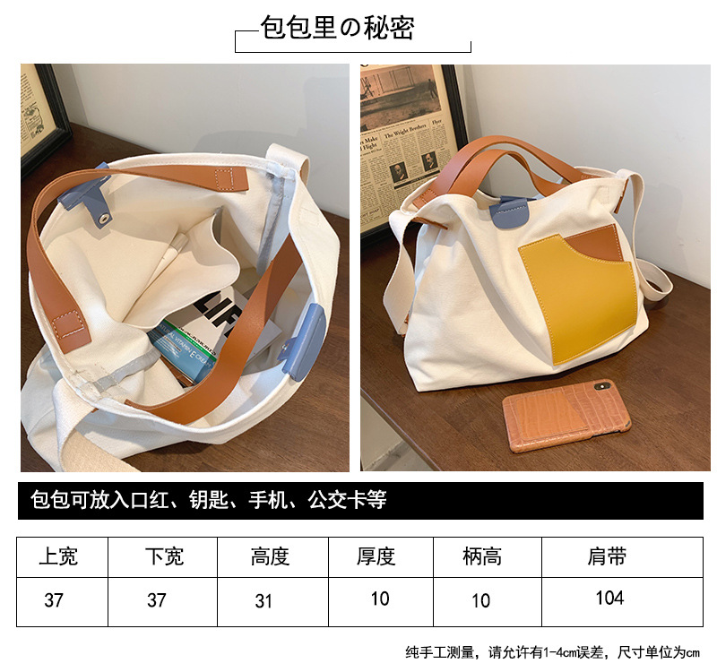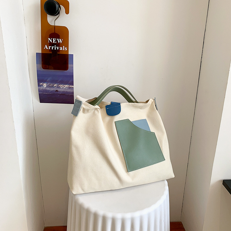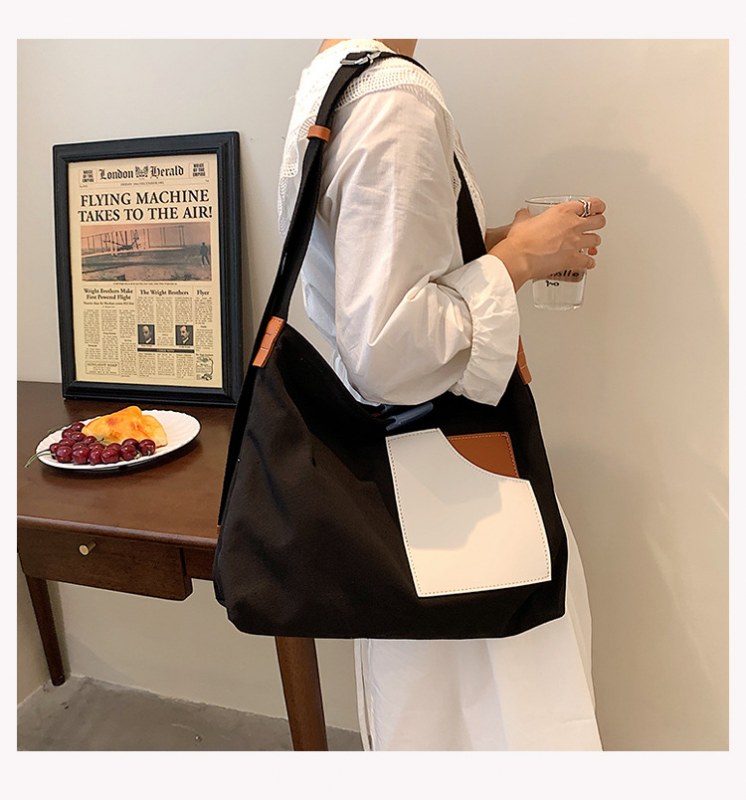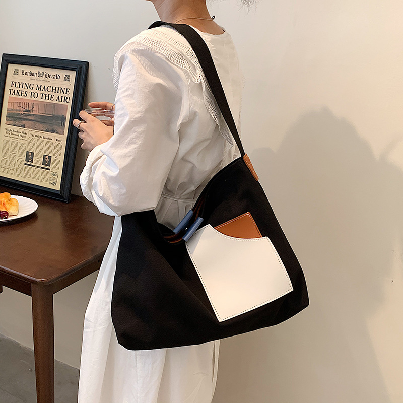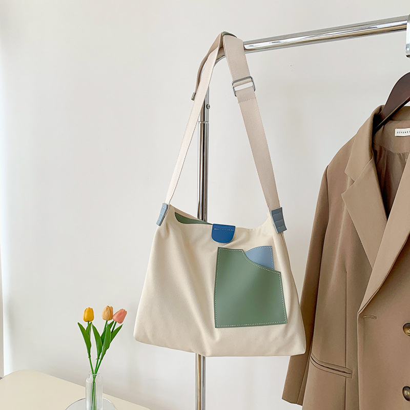 • インニッチデザインスプライシングキャンバスバッグ韓国スタイルの女性のショルダーバッグ通勤トートバッグ多用途カジュアルクロスボディバッグ
