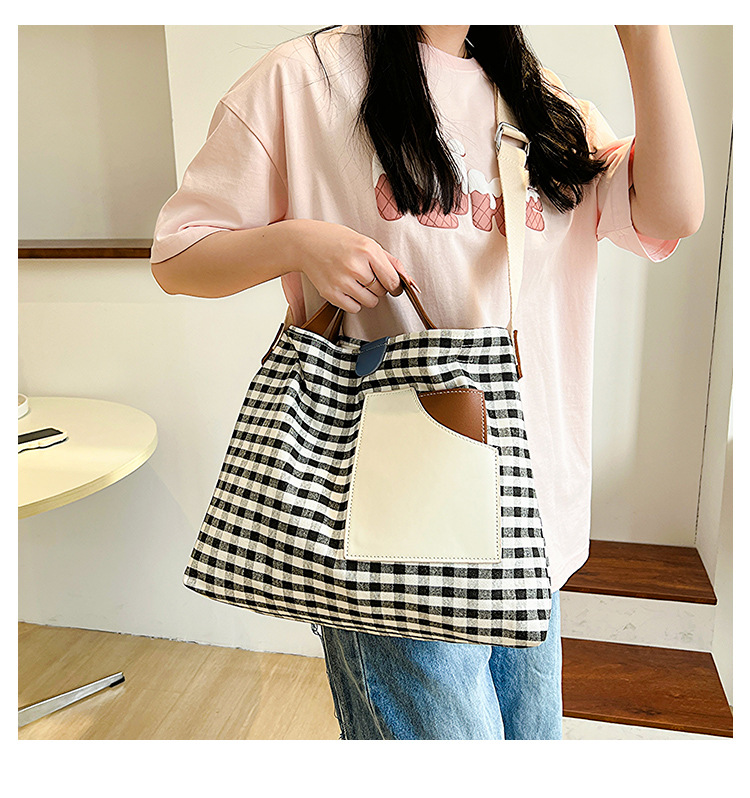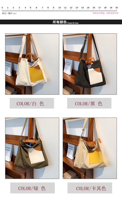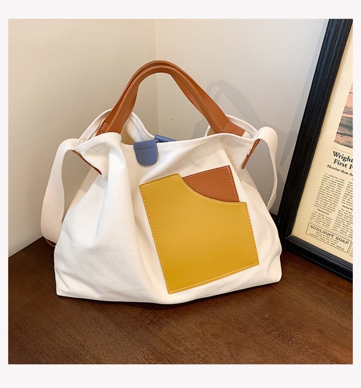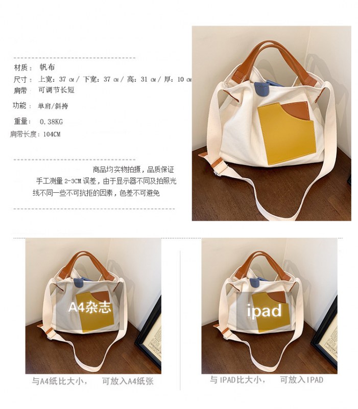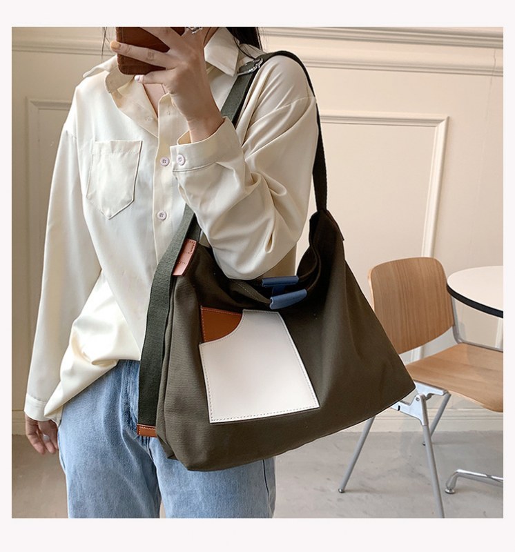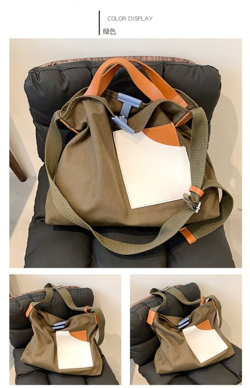• インニッチデザインスプライシングキャンバスバッグ韓国スタイルの女性のショルダーバッグ通勤トートバッグ多用途カジュアルクロスボディバッグ