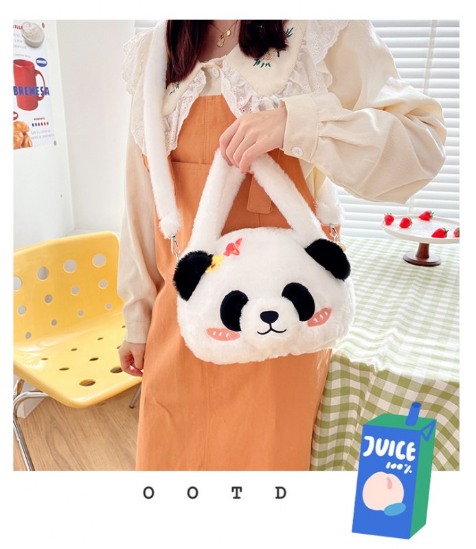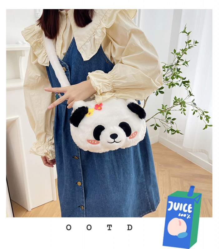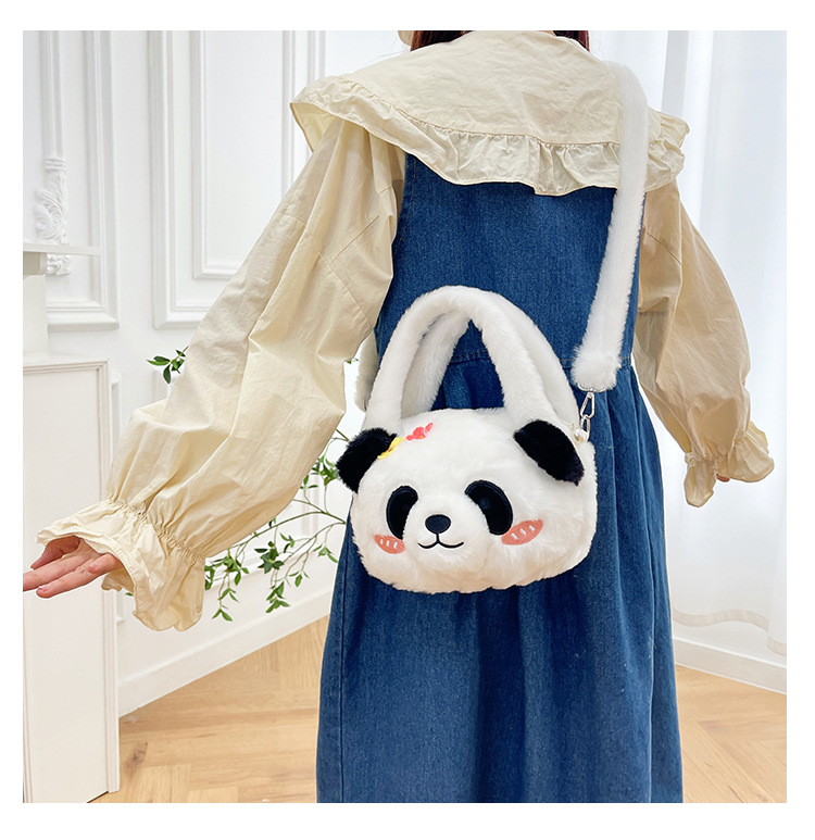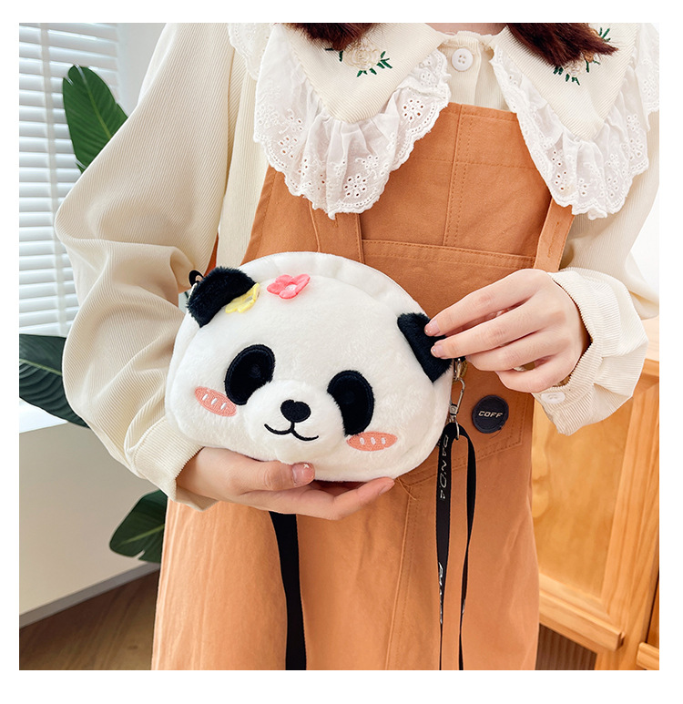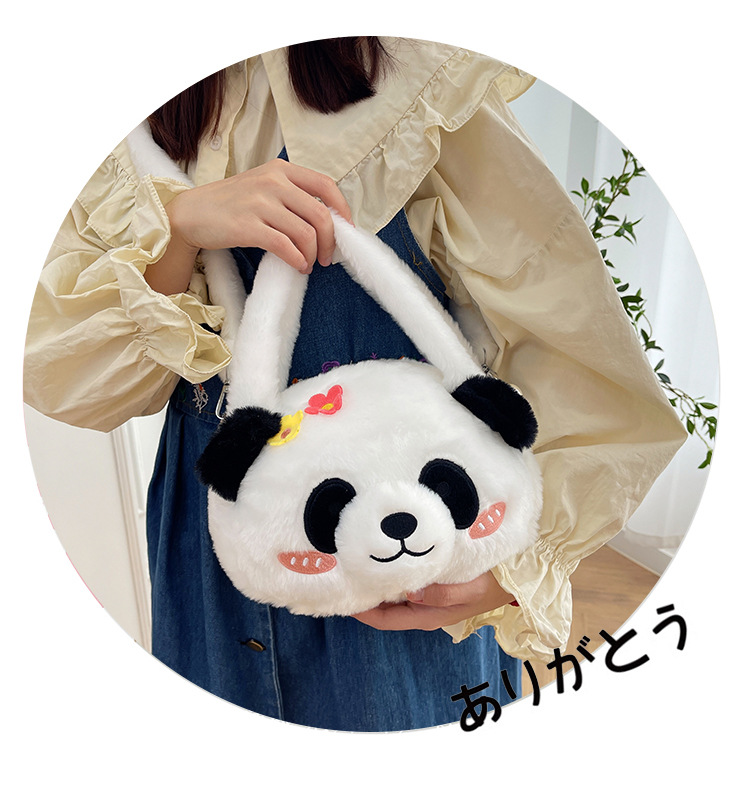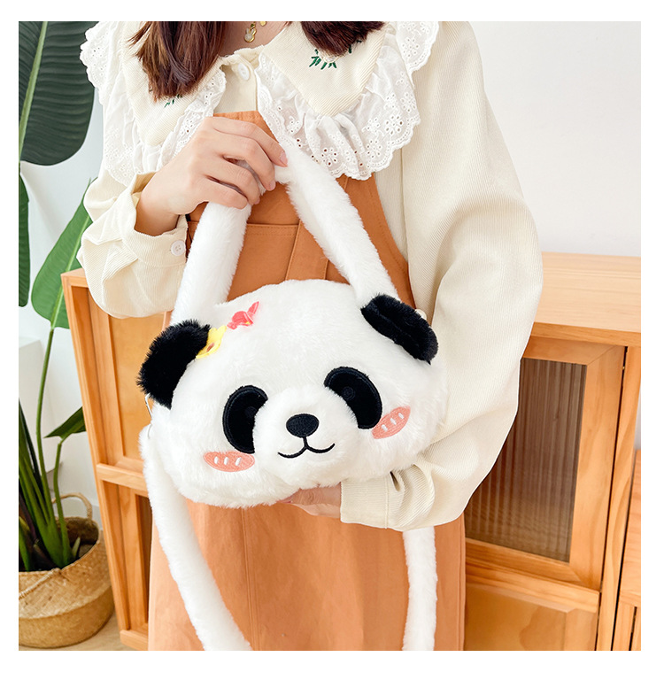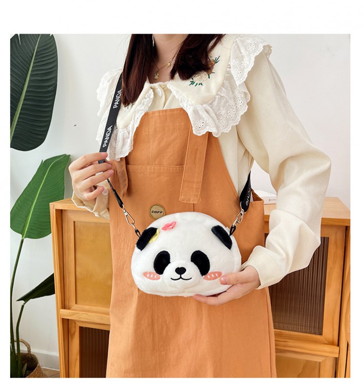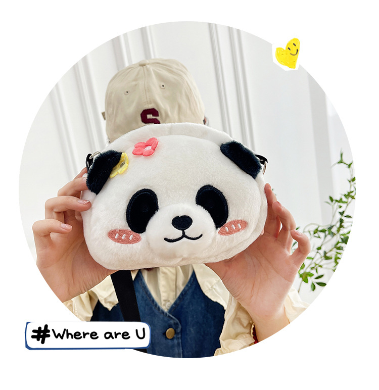 • かわいいパンダヘッドぬいぐるみバッグ女性 2024 新しい女の子人形人形カジュアルバッグ漫画ショルダークロスボディバッグ