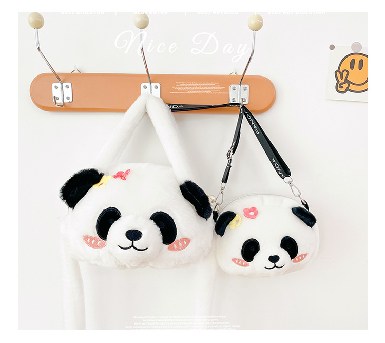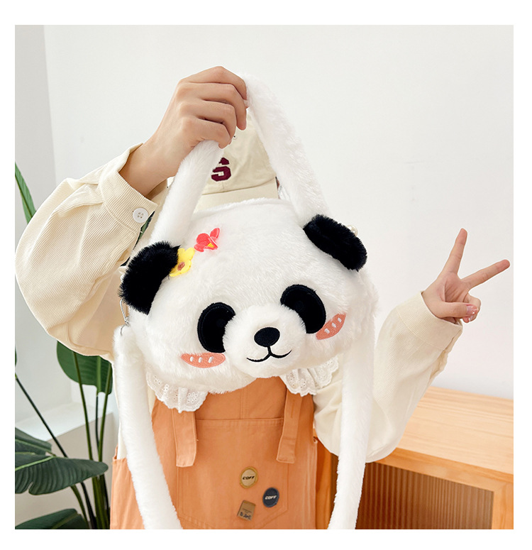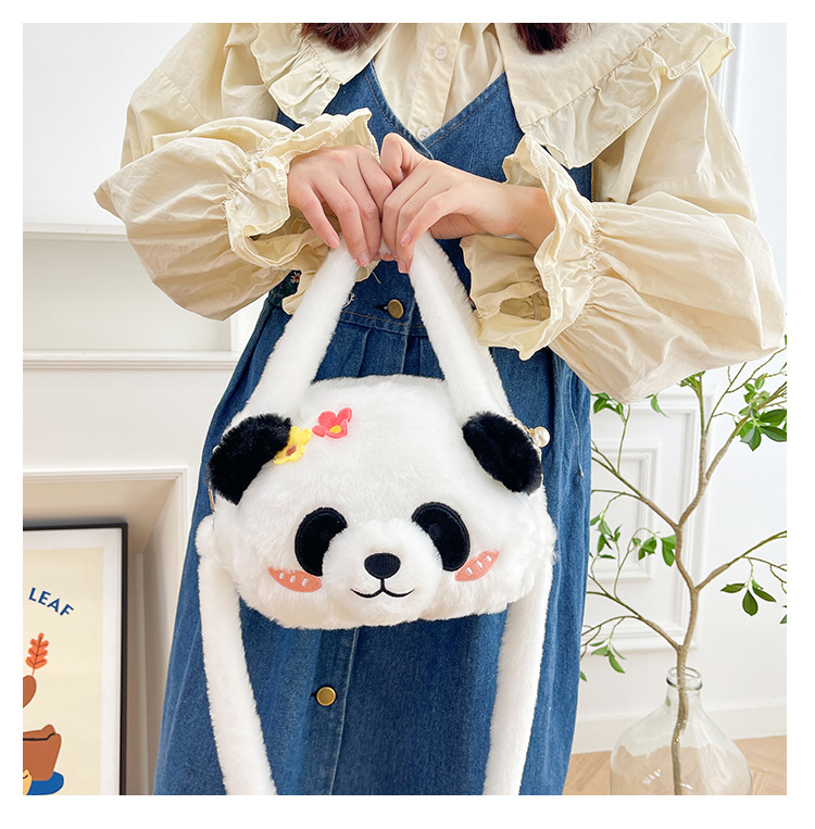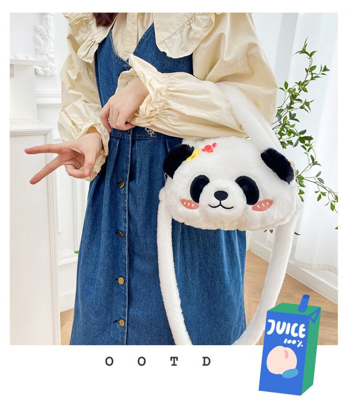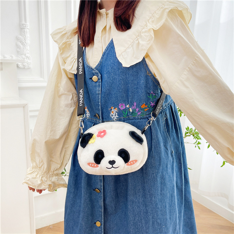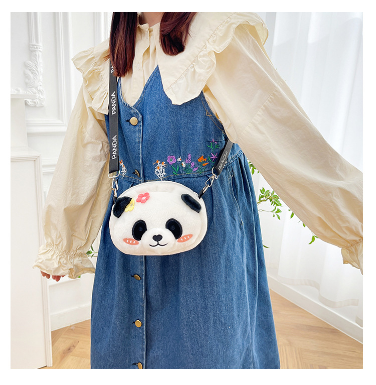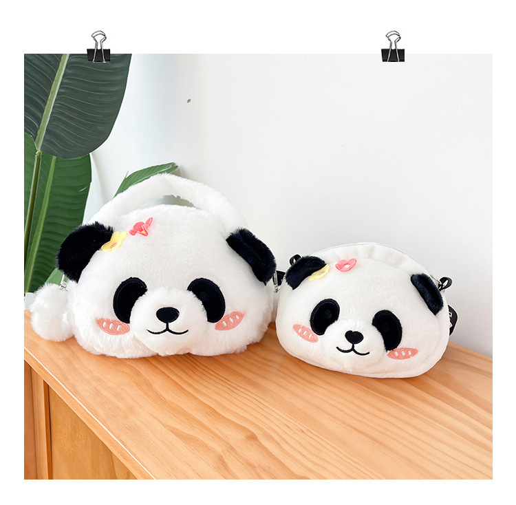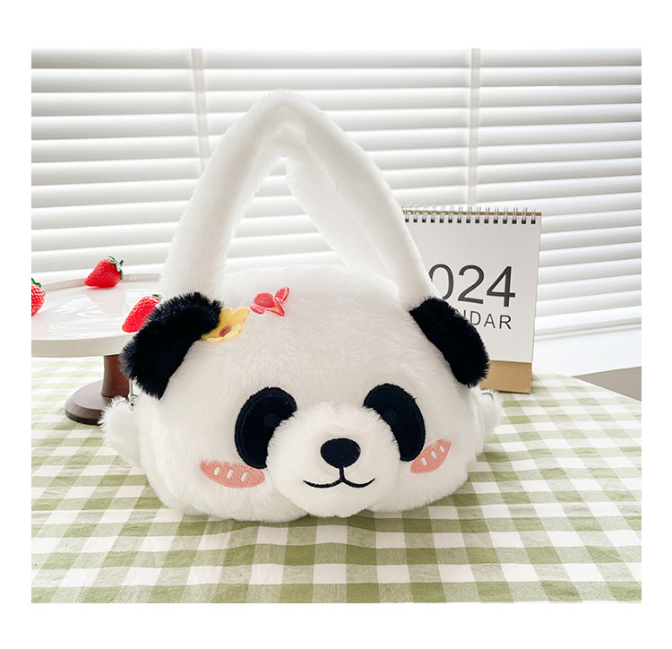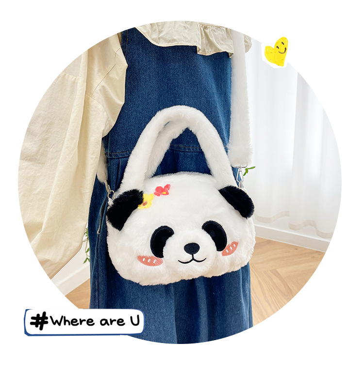 • かわいいパンダヘッドぬいぐるみバッグ女性 2024 新しい女の子人形人形カジュアルバッグ漫画ショルダークロスボディバッグ
