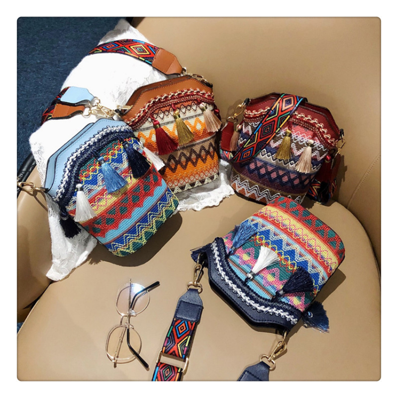 • 新しいエスニックスタイルのレディースバッグ、ファッショナブルな織りショルダーバッグ、トレンディなバケットクロスボディバッグ、レディースニッチバッグ