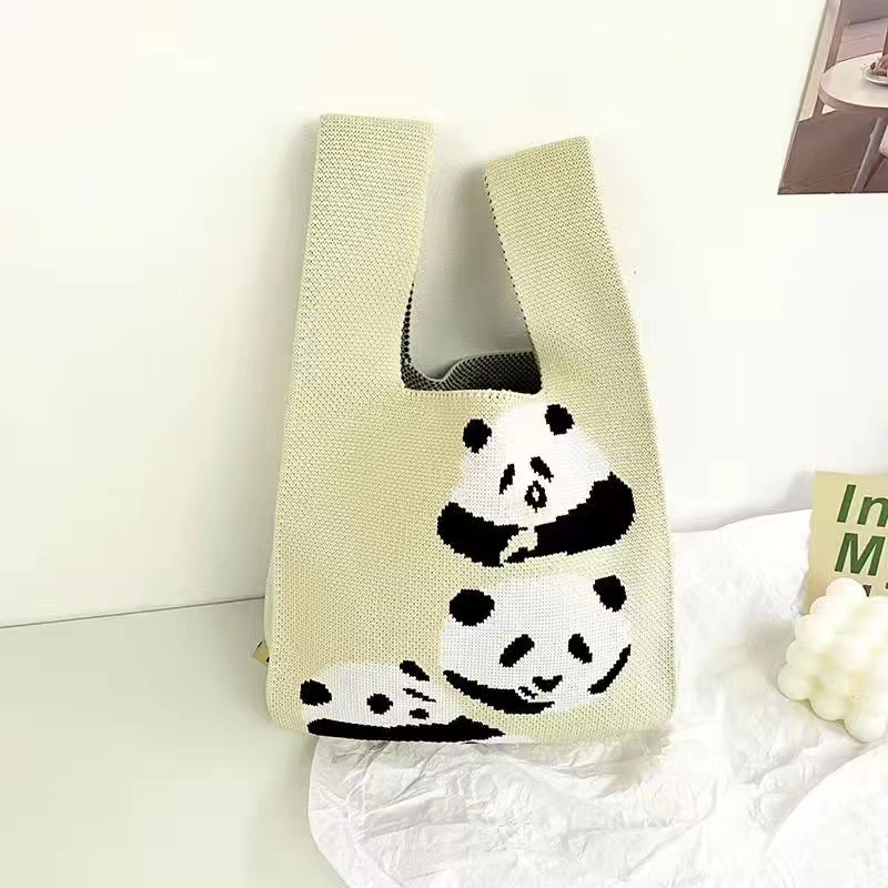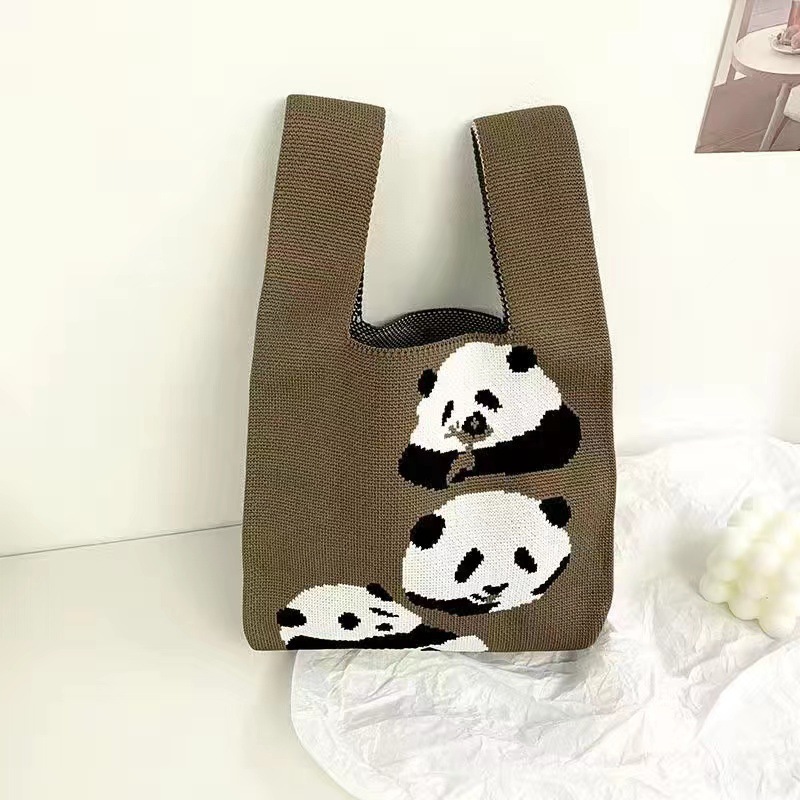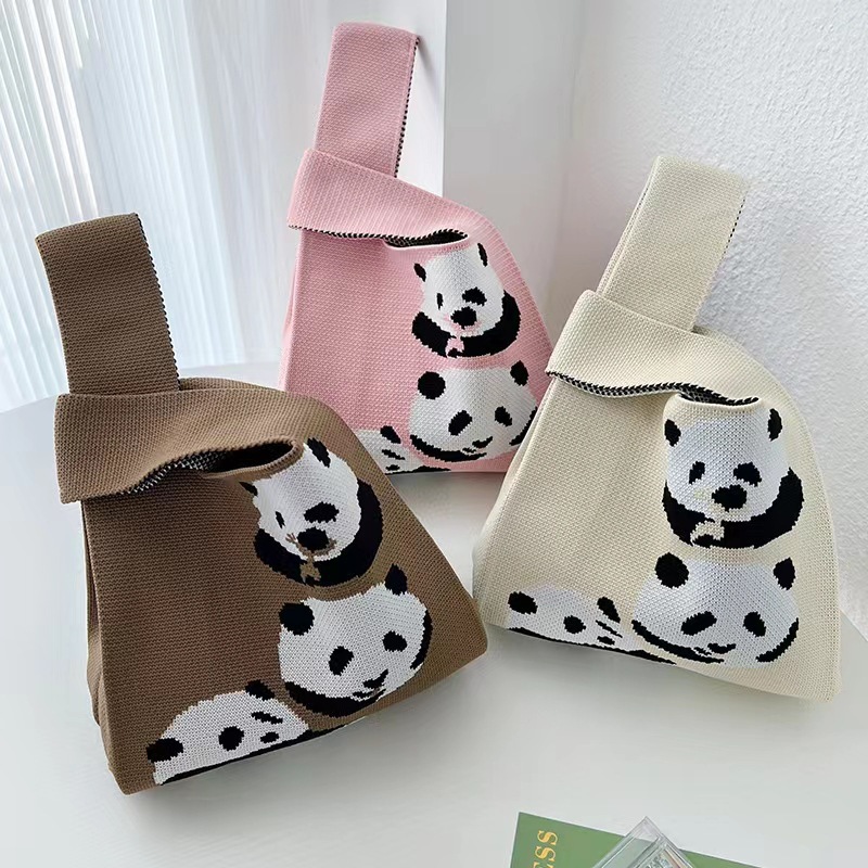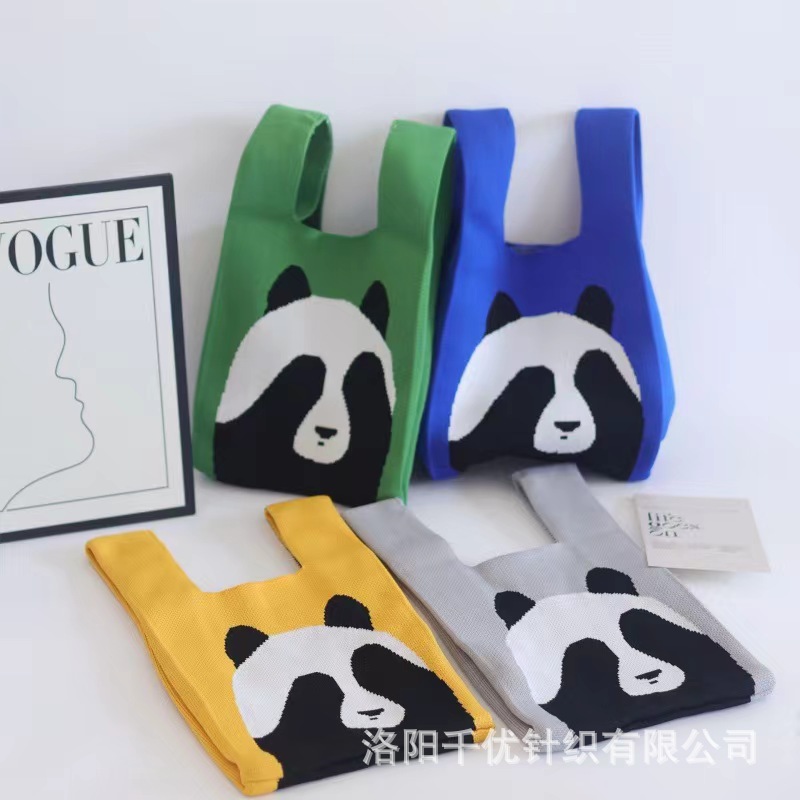 • 2024 夏インターネット有名人パンダトートバッグシリーズ女性のバッグハンドバッグバッグ学生ファッション韓国ニットバッグ